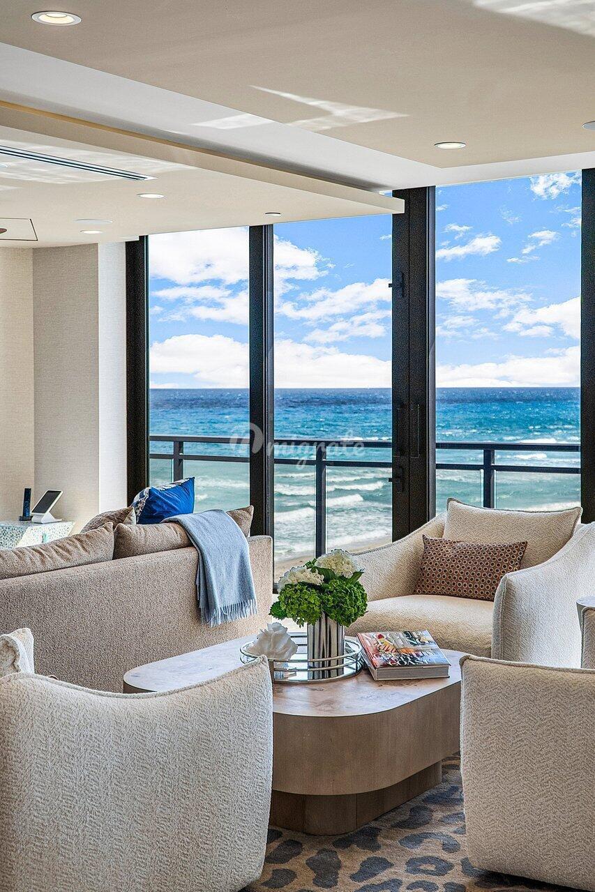 В тот момент, когда вы войдете в эту изысканную резиденцию с прямым видом на океан, вы испытаете нечто настолько прекрасное, что вам не захочется покидать ее. Недавно отремонтированная резиденция на 5 этаже расположена в юго-восточном углу и располагает стеклянным балконом, который огибает весь периметр, обеспечивая беспрепятственный вид на океан, пляж и внутрибережье.Детали интерьера включают в себя крупноформатные фарфоровые полы и стены, импортированные из Италии, столешницы из кварцита, плавающие потолки со светодиодной подсветкой с регулируемой яркостью, мебель на заказ, стеклянные двери во всех шкафах, сантехнику Grohe, Allure и Grohtherm Smartcontrol. повсюду электрические жалюзи Lutron, динамики в каждой комнате с различной регулировкой звука, ультрасовременная система Crestron - СМ. ДОПОЛНЕНИЕ
