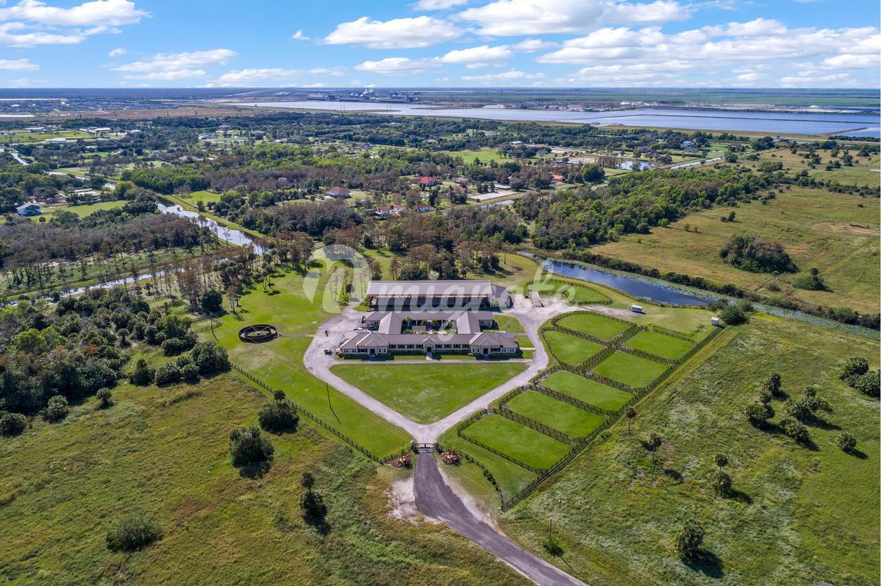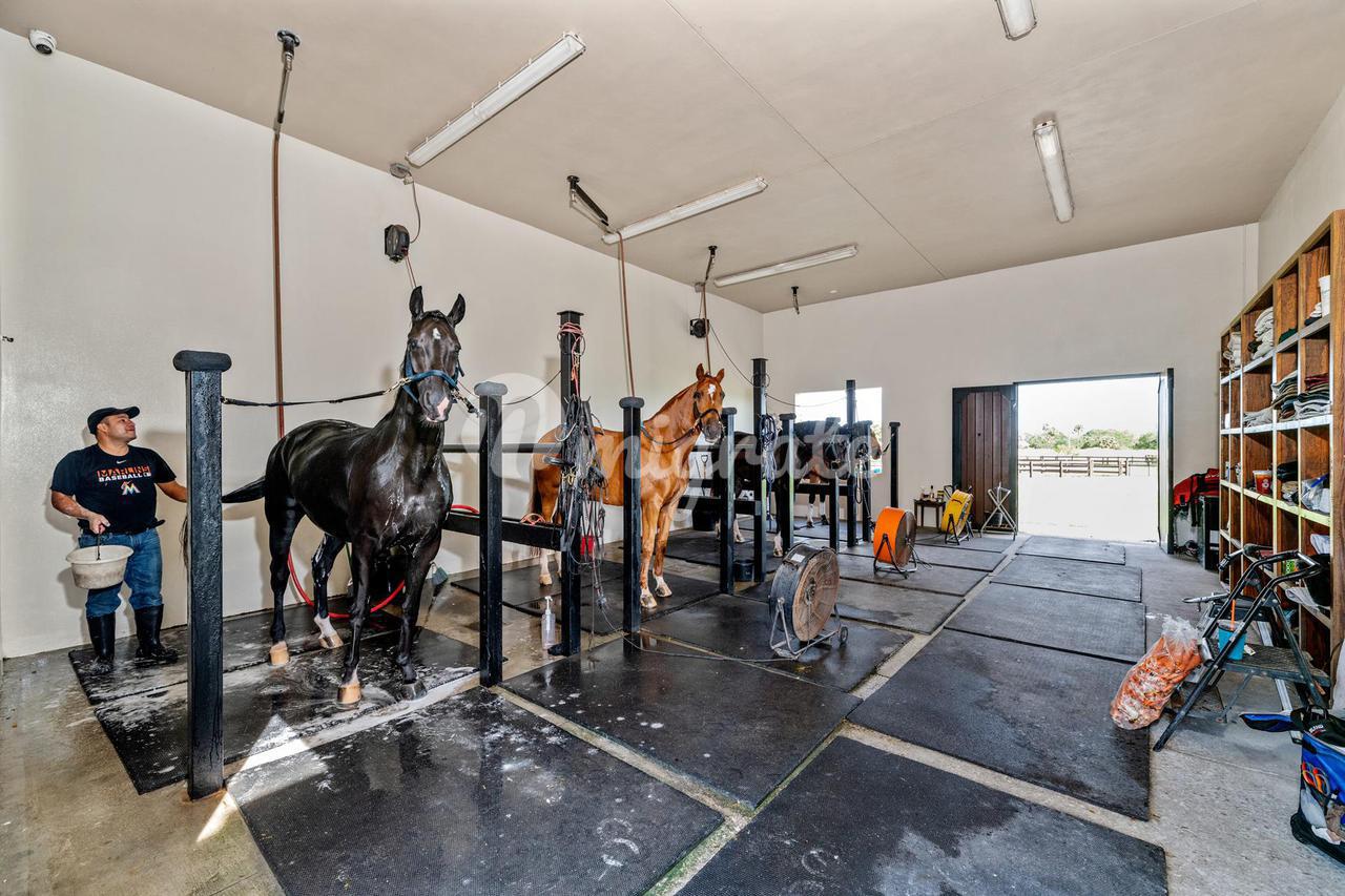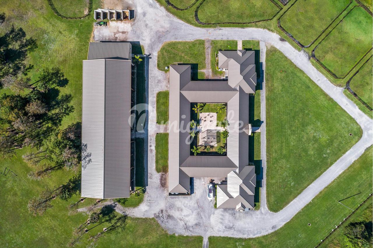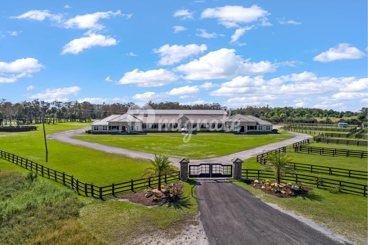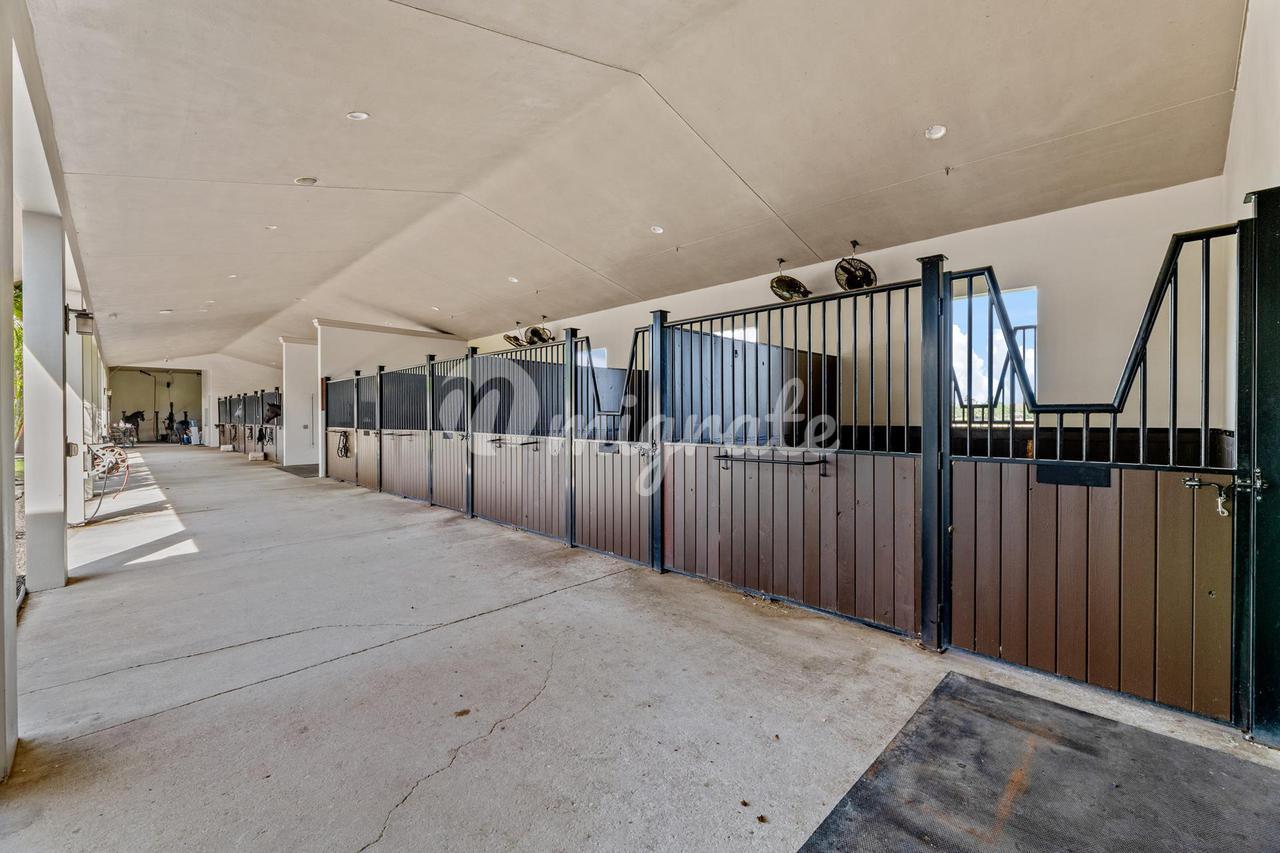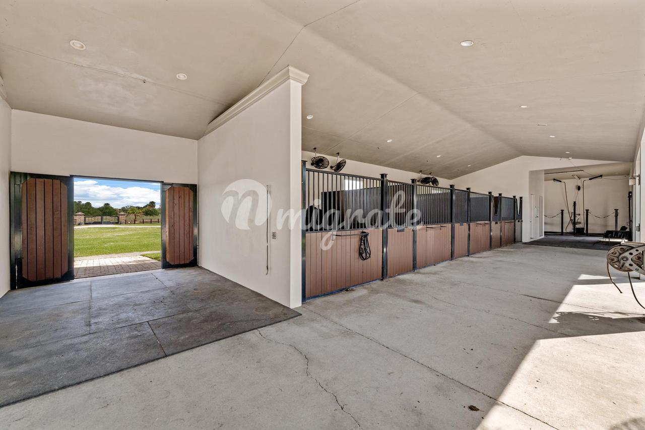 ферма площадью более 14 акров с крытой ареной, расположенная в закрытом сообществе Белых заборов. На ферме есть сарай на 24 стойла с внутренним двором в центре, большая арена для верховой езды на орошаемой траве и ходунки для 4 лошадей. На каждом конце сарая есть несколько кабинок для стирки / ухода за лошадьми, подсобное помещение / мини-кухня с кондиционером, наполовину ванная, прачечная и большая кладовая в гараже. На каждом конце сарая есть апартаменты с 3 спальнями и 2 ванными комнатами и апартаменты с 4 спальнями и 2 ванными комнатами. Были планы построить дом рядом с прудом, планы предоставляются по запросу. На крытой арене для верховой езды на песке есть зеркала и еще один пристроенный гараж для дополнительного хранения. Поросшие травой загоны окружают собственность, а многочисленные тропы проходят по всему сообществу.