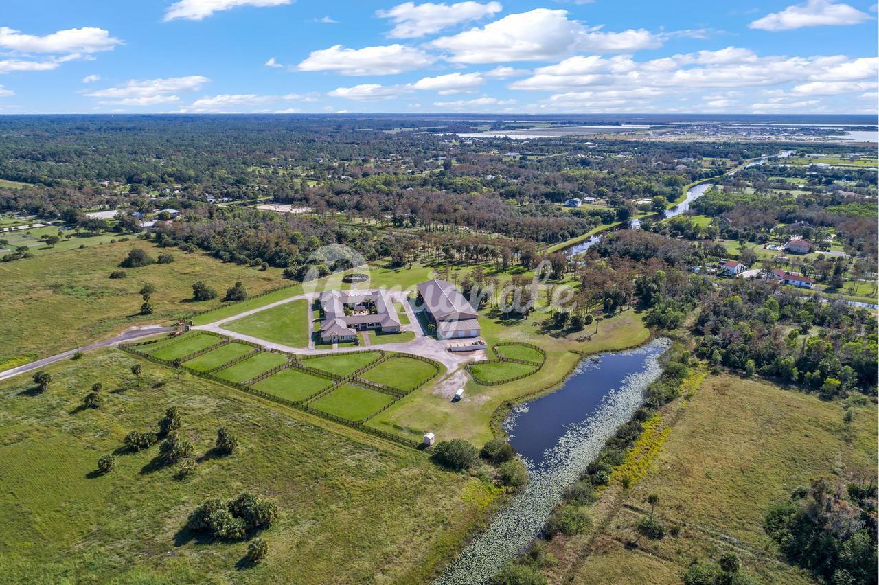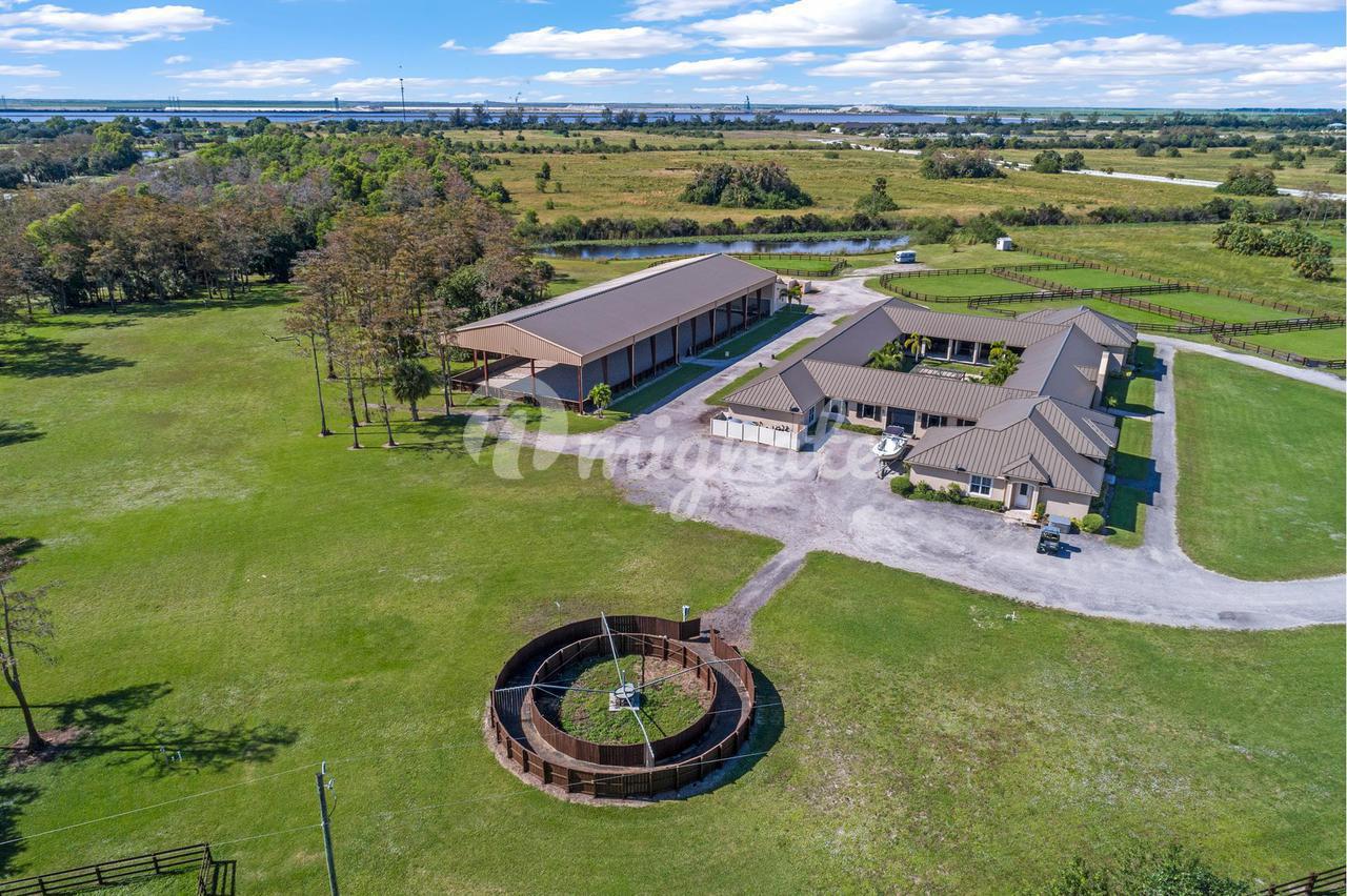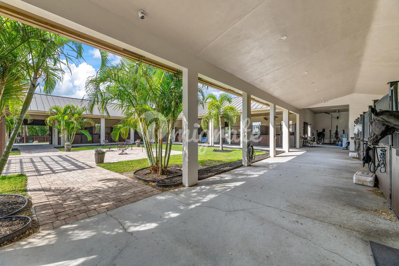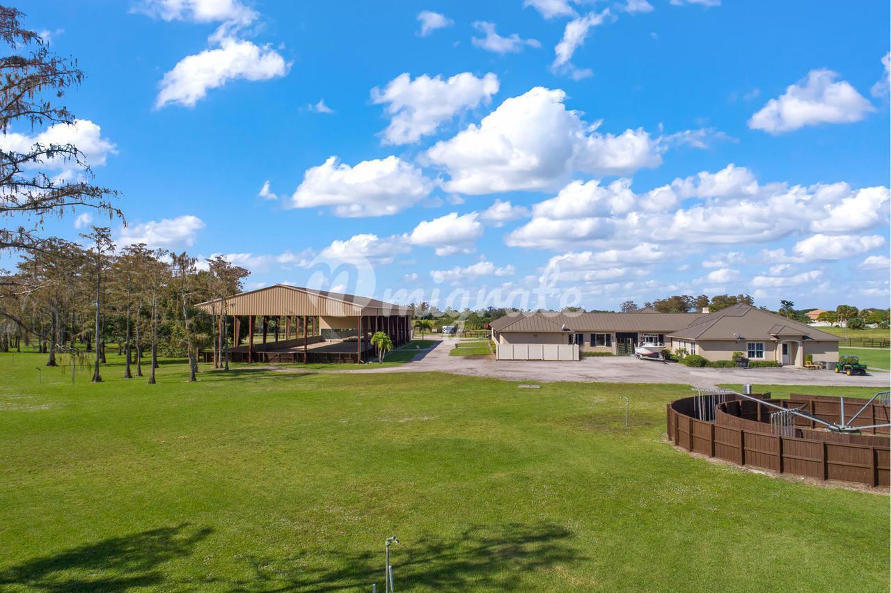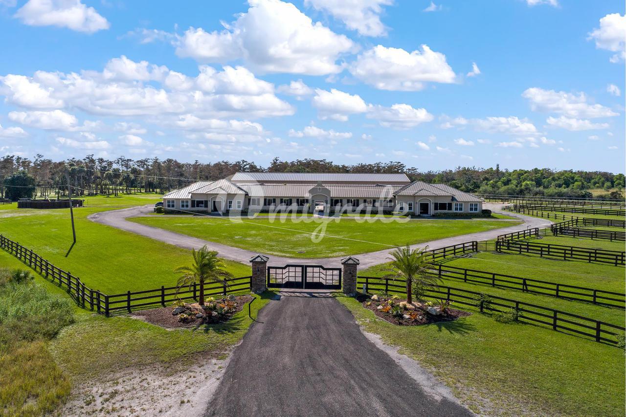 ферма площадью более 14 акров с крытой ареной, расположенная в закрытом сообществе Белых заборов. На ферме есть сарай на 24 стойла с внутренним двором в центре, большая арена для верховой езды на орошаемой траве и ходунки для 4 лошадей. На каждом конце сарая есть несколько кабинок для стирки / ухода за лошадьми, подсобное помещение / мини-кухня с кондиционером, наполовину ванная, прачечная и большая кладовая в гараже. На каждом конце сарая есть апартаменты с 3 спальнями и 2 ванными комнатами и апартаменты с 4 спальнями и 2 ванными комнатами. Были планы построить дом рядом с прудом, планы предоставляются по запросу. На крытой арене для верховой езды на песке есть зеркала и еще один пристроенный гараж для дополнительного хранения. Поросшие травой загоны окружают собственность, а многочисленные тропы проходят по всему сообществу.