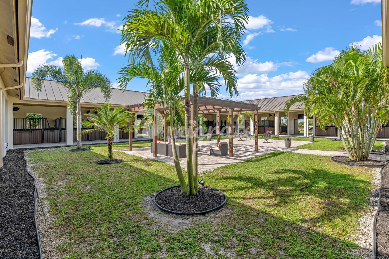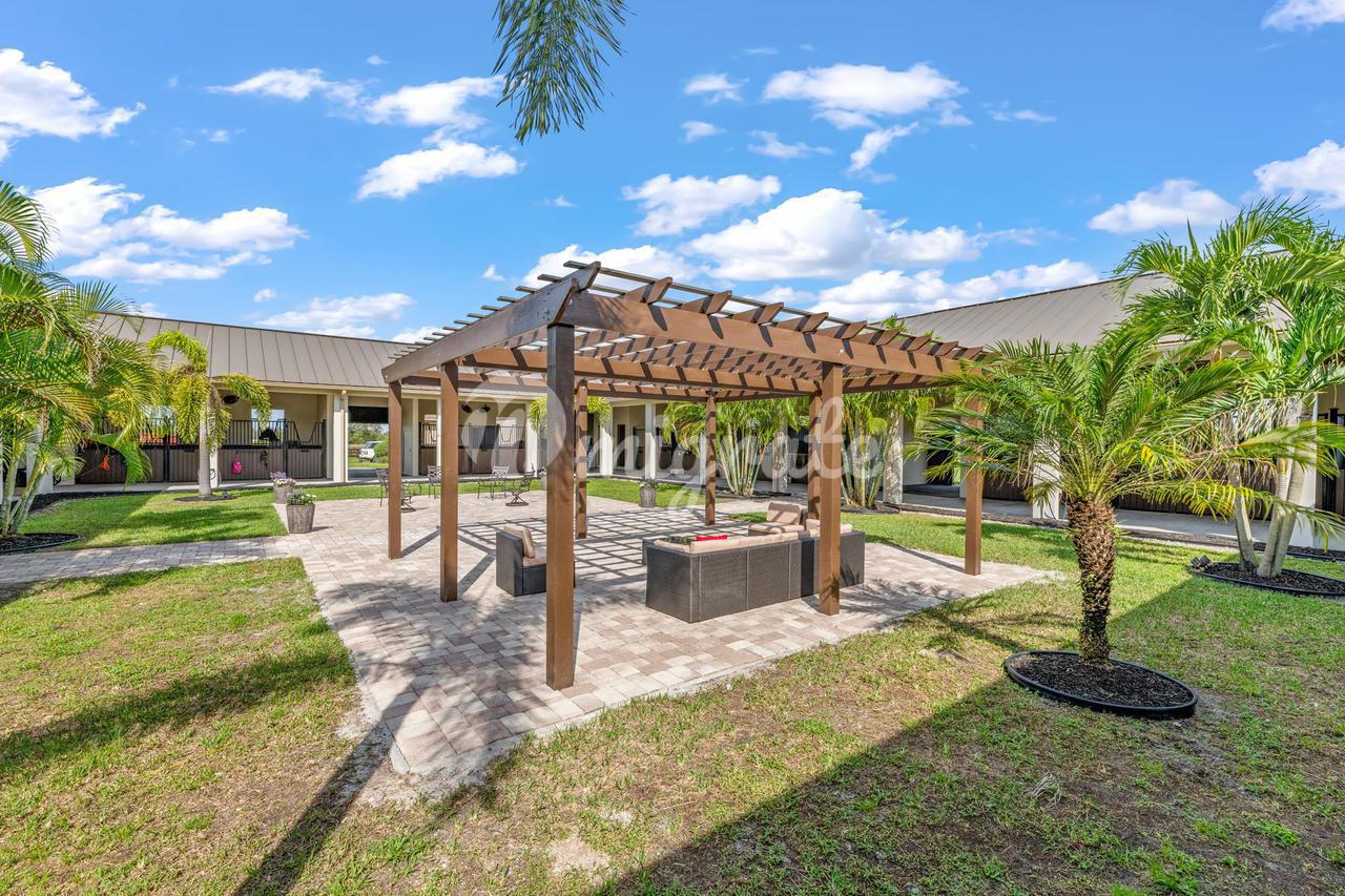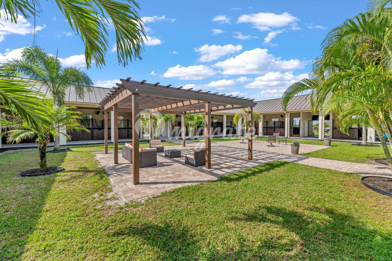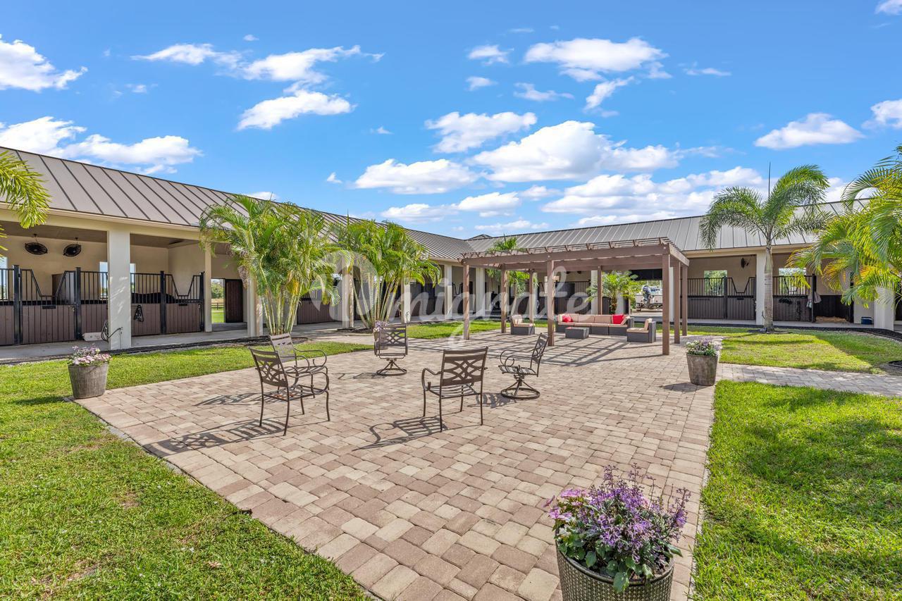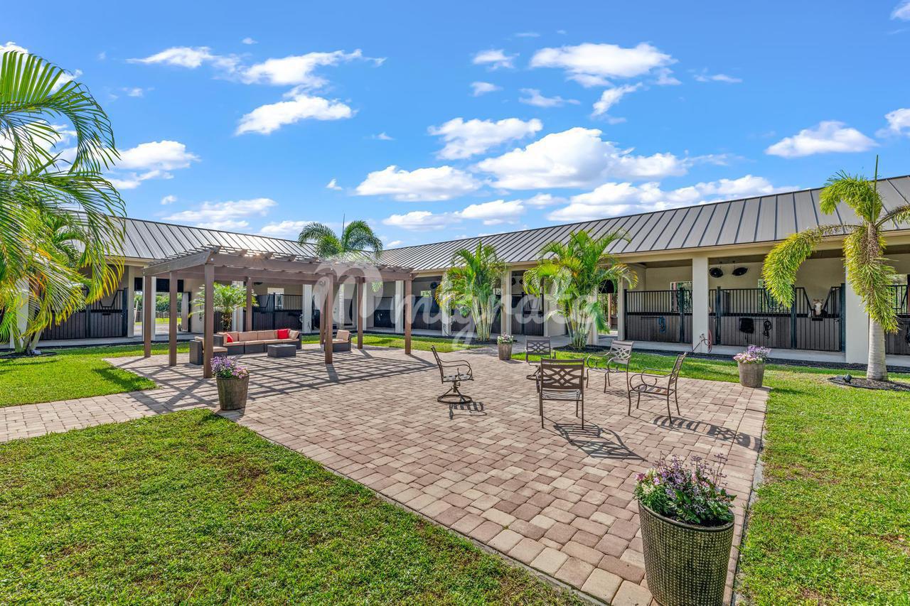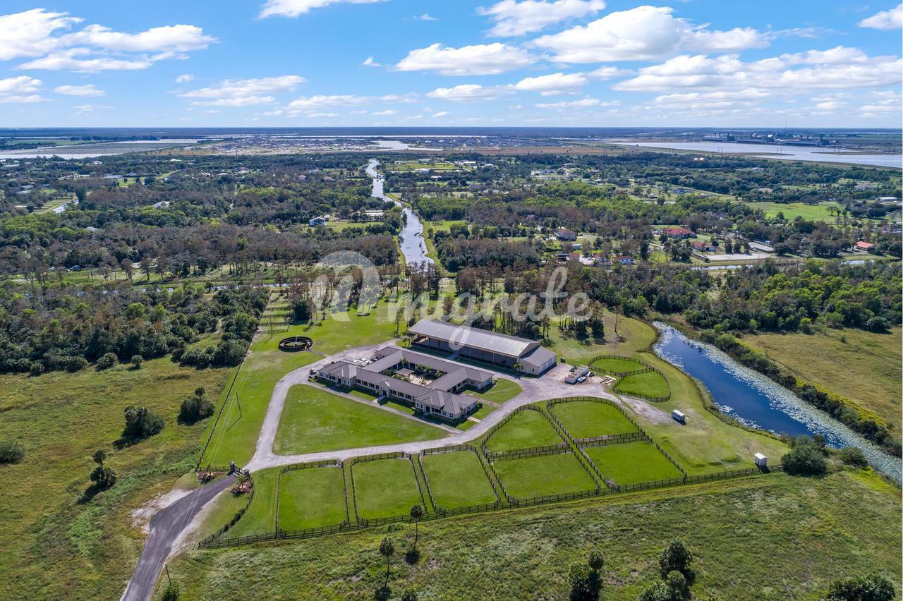 ферма площадью более 14 акров с крытой ареной, расположенная в закрытом сообществе Белых заборов. На ферме есть сарай на 24 стойла с внутренним двором в центре, большая арена для верховой езды на орошаемой траве и ходунки для 4 лошадей. На каждом конце сарая есть несколько кабинок для стирки / ухода за лошадьми, подсобное помещение / мини-кухня с кондиционером, наполовину ванная, прачечная и большая кладовая в гараже. На каждом конце сарая есть апартаменты с 3 спальнями и 2 ванными комнатами и апартаменты с 4 спальнями и 2 ванными комнатами. Были планы построить дом рядом с прудом, планы предоставляются по запросу. На крытой арене для верховой езды на песке есть зеркала и еще один пристроенный гараж для дополнительного хранения. Поросшие травой загоны окружают собственность, а многочисленные тропы проходят по всему сообществу.