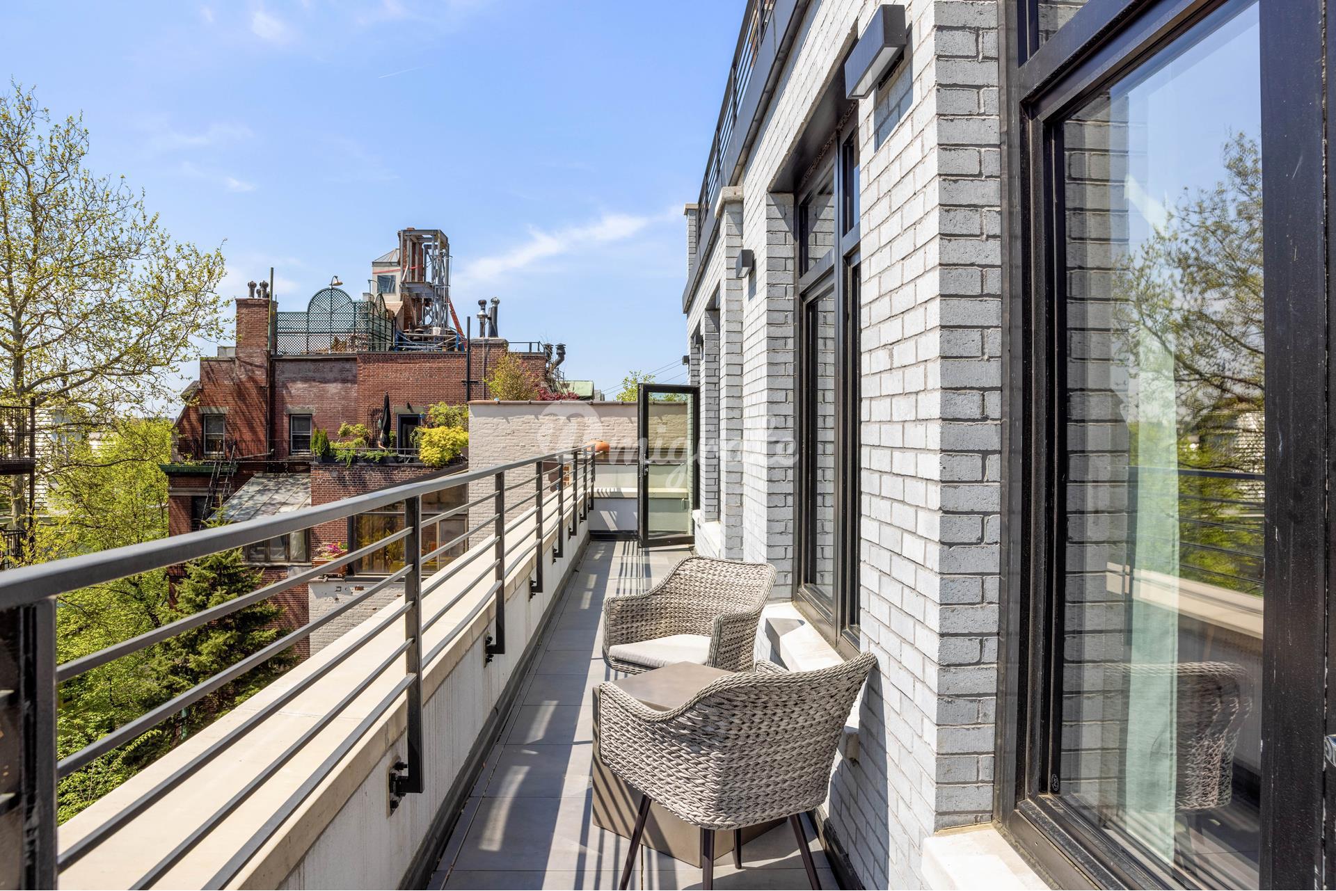 Здание также предоставляет широкий спектр удобств на территории, включая фитнес-центр, сложную систему видеодомофона с виртуальным швейцаром, возможностью разблокировки мобильного устройства и распознавания лиц, охраняемую комнату для посылок, частную жилую гостиную с кухней, которая выходит в зеленый сад, а также великолепную четырехкомнатную квартиру. -угловая крыша-веранда, охватывающая всю площадь здания, с захватывающим видом на реку Гудзон. Складское помещение передается при продаже.