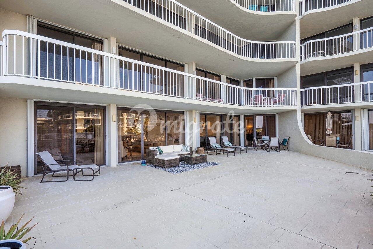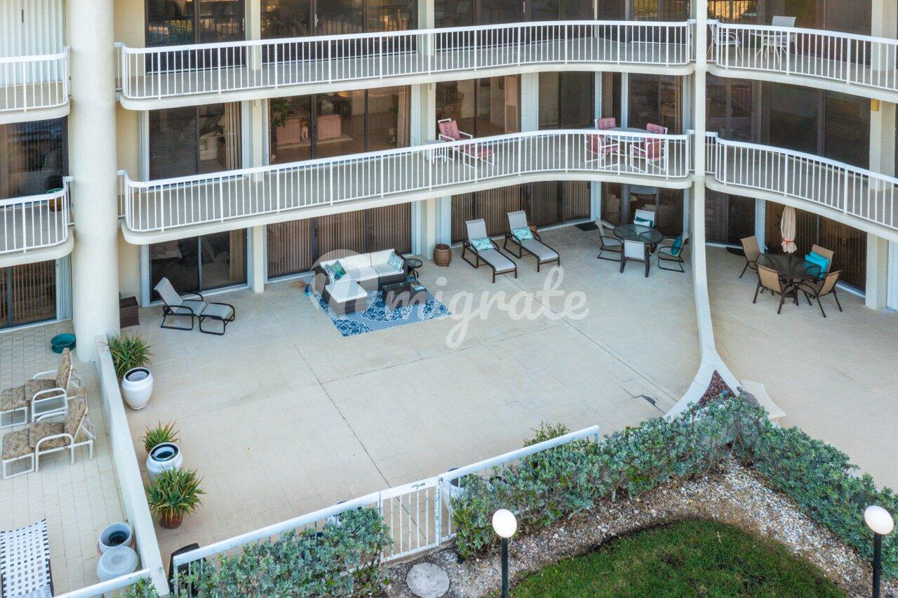 Прекрасно ухоженные 2 спальни / 2 ванные комнаты плюс дополнительная комната- логово / офис / гостевая. Живет как пляжный домик на берегу океана, большой внутренний дворик / веранда с северо-восточной экспозицией. Доступ к пляжу и бассейну из внутреннего дворика.Фарфоровые полы и новый ковер в спальнях.Обновленная кухня и ванные комнаты. Бассейн, Фитнес, Здание клуба, Сторожка у ворот, управляющий на территории, Частный доступ к пляжу, зал для завтраков, столовая, большая гостиная, большая прачечная.парковка в гараже.
