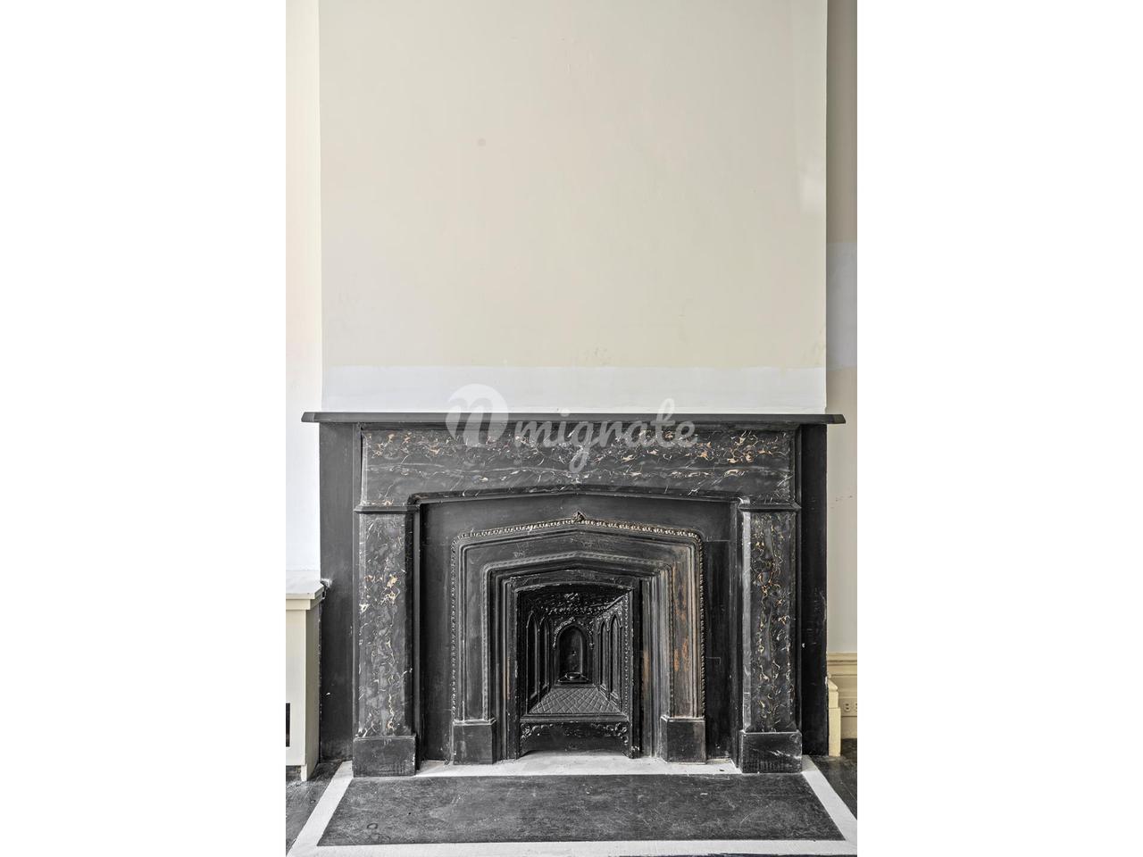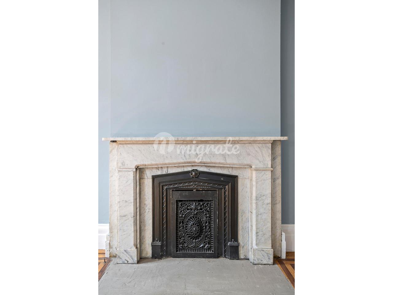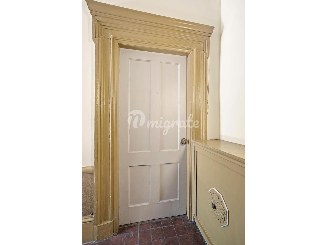 На первом этаже расположены две величественные гостиные с ванными комнатами. Оба с красивыми мраморными каминами и потрясающими зеркалами от пола до потолка. Очаровательный солярий, расположенный рядом с гостиной с видом на сад. Кухня с окнами и очень большая ванная комната. Оригинальные панели и лепнина дополняют интерьер гостиных. Высота потолков чуть меньше 11 футов.