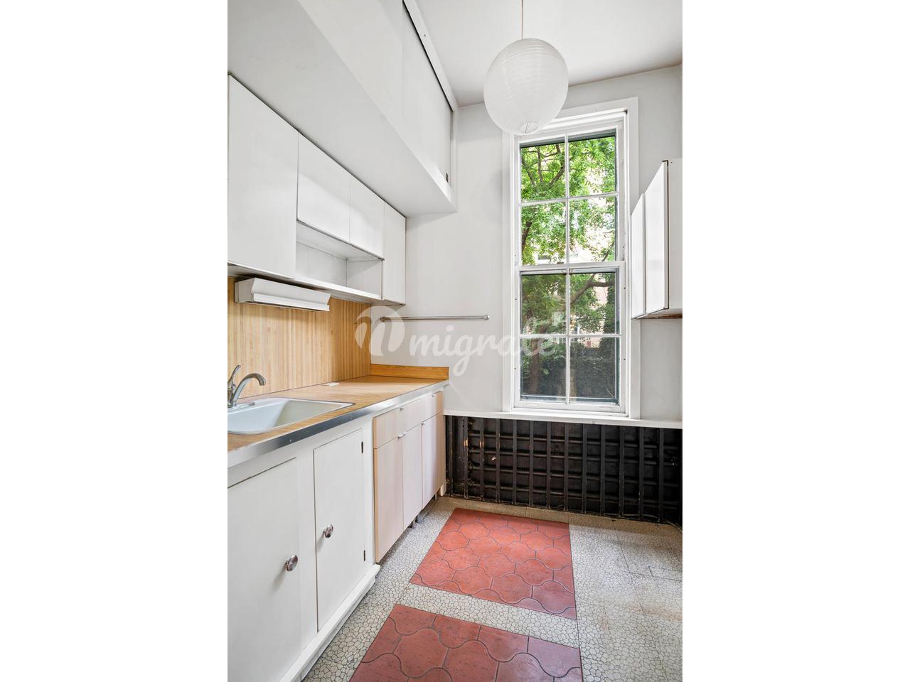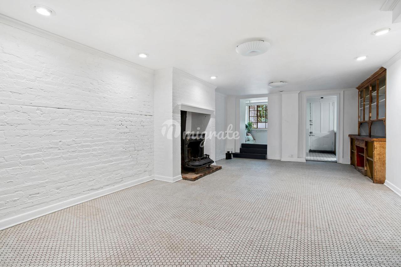Уровень сада: Большая гостиная / столовая с красивой довоенной чугунной духовкой / кухонной плитой. Кухня с видом на сад и полностью оборудованная ванная комната. В передней части уровня сада есть небольшой внутренний дворик с выходом на улицу ниже крыльца.