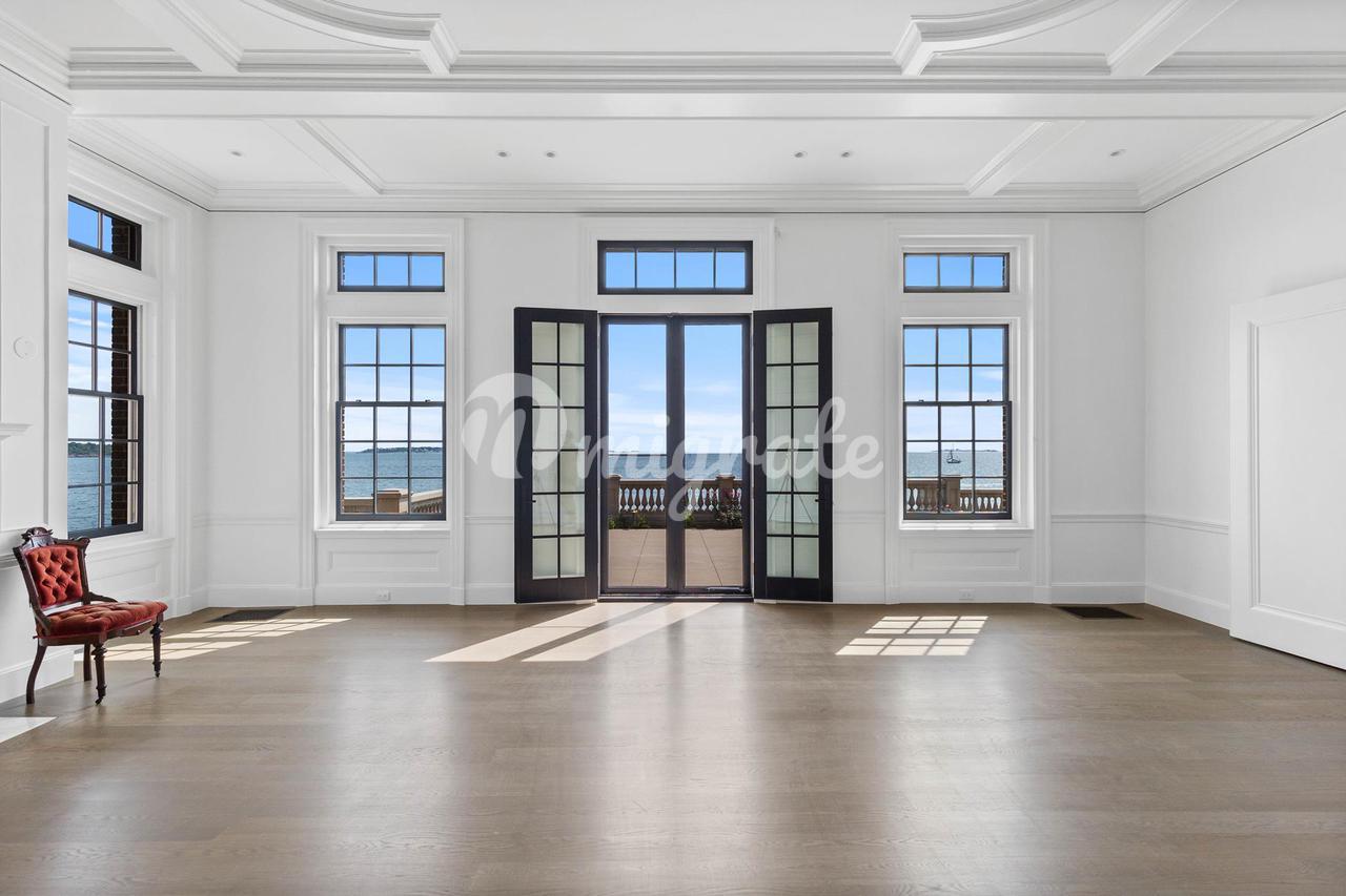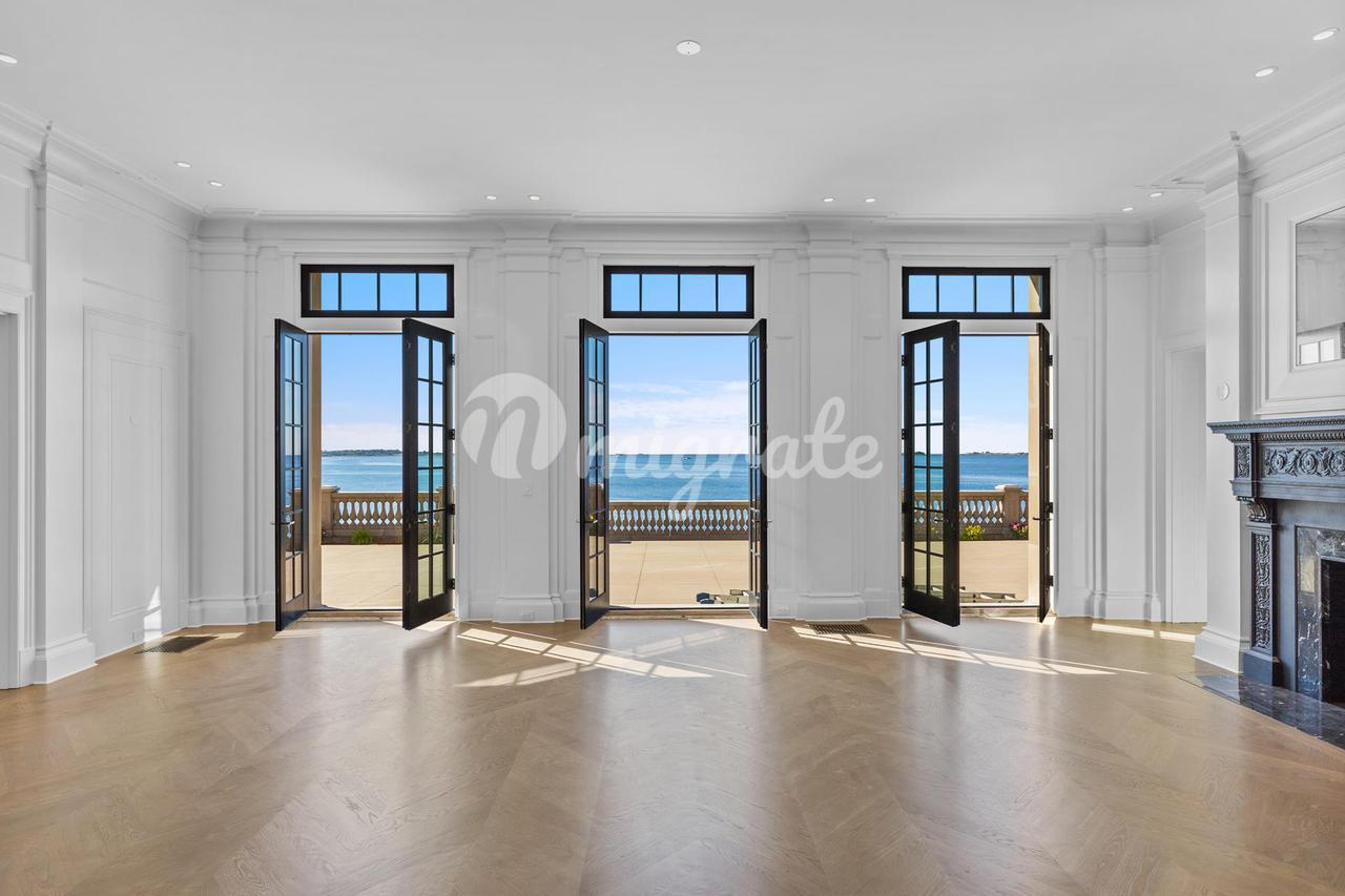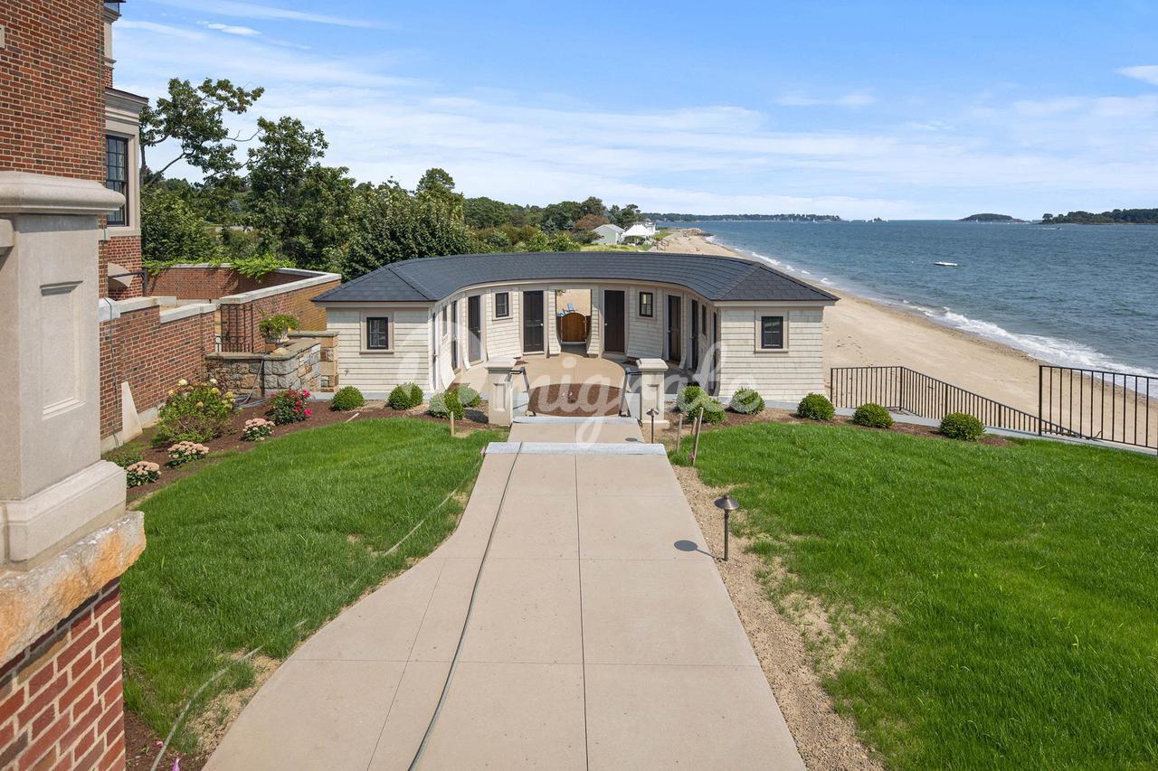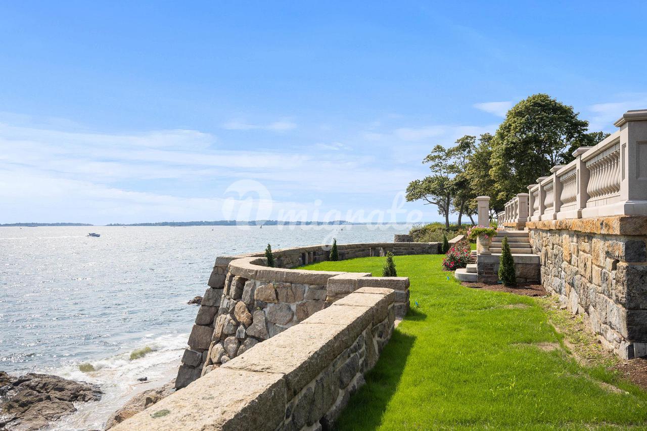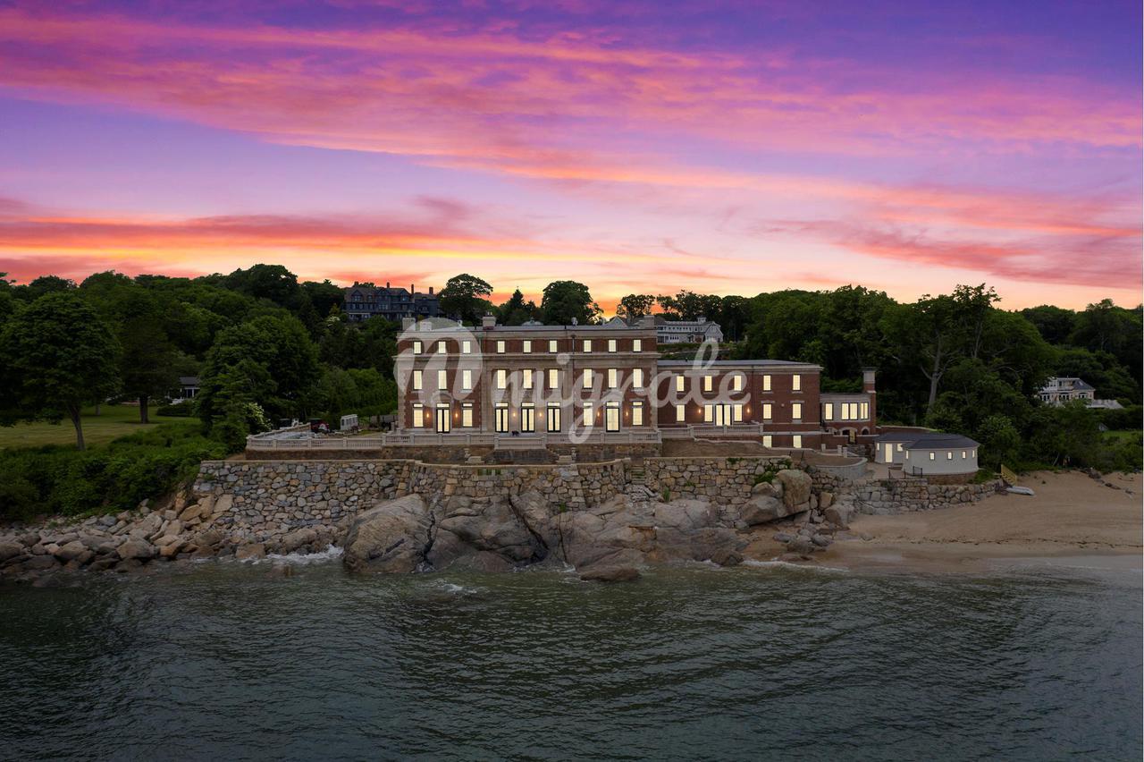 Построенный в стиле георгианского возрождения, дом может похвастаться 28 000 +/- квадратных футов прекрасно обставленной жилой площади, с 11 спальнями и 12 ванными комнатами и расположен на более чем трех тщательно благоустроенных, похожих на парк акрах. Верный своему архитектурному стилю, Rock Edge (названный так из-за того, что он расположен над скалистым берегом) имеет классические пропорции и масштаб, с красивым кирпичным фасадом с украшениями из известняка и шиферной крышей. С Пейн-авеню подъезд грозный: проезжая мимо каретного двора/коттеджа смотрителя у ворот, можно попасть в величественное поместье. Действительно чувствуешь себя перенесённым в другую эпоху. Тем не менее, войдя в дом, становится ясно, что все современные удобства были продуманы и тщательно интегрированы, чтобы сохранить архитектурные детали и элегантные черты, делая этот дом полностью пригодным для жизни и способствующим современному образу жизни. (** См. прилагаемые документы для полного описания и истории дома **)