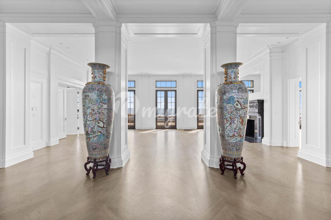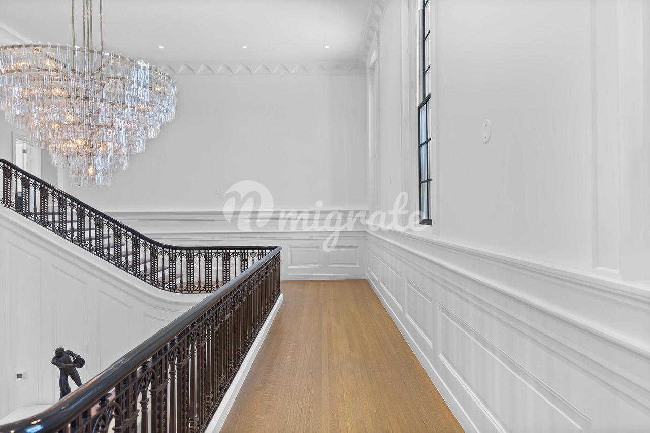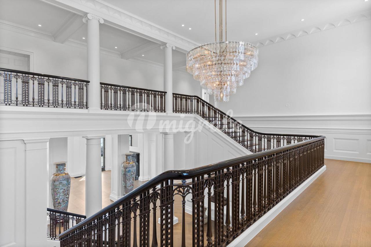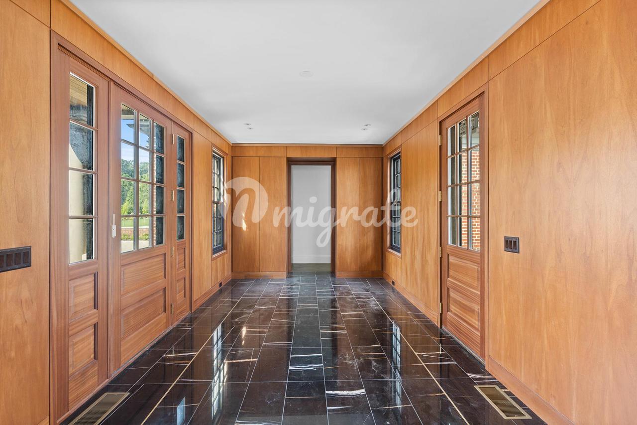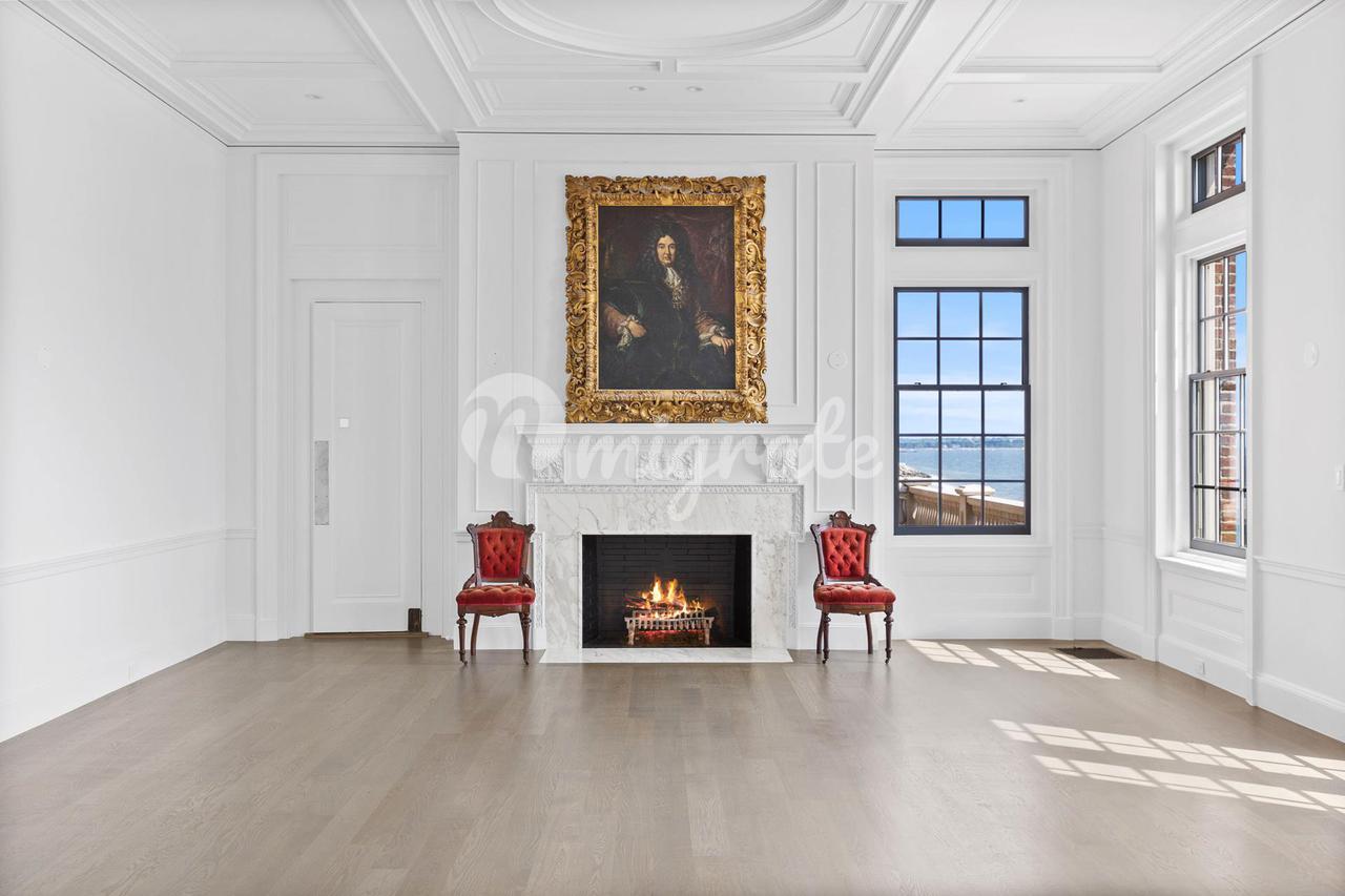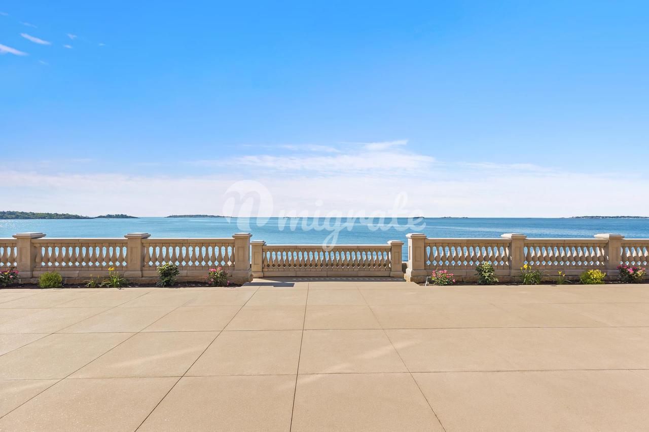 Построенный в стиле георгианского возрождения, дом может похвастаться 28 000 +/- квадратных футов прекрасно обставленной жилой площади, с 11 спальнями и 12 ванными комнатами и расположен на более чем трех тщательно благоустроенных, похожих на парк акрах. Верный своему архитектурному стилю, Rock Edge (названный так из-за того, что он расположен над скалистым берегом) имеет классические пропорции и масштаб, с красивым кирпичным фасадом с украшениями из известняка и шиферной крышей. С Пейн-авеню подъезд грозный: проезжая мимо каретного двора/коттеджа смотрителя у ворот, можно попасть в величественное поместье. Действительно чувствуешь себя перенесённым в другую эпоху. Тем не менее, войдя в дом, становится ясно, что все современные удобства были продуманы и тщательно интегрированы, чтобы сохранить архитектурные детали и элегантные черты, делая этот дом полностью пригодным для жизни и способствующим современному образу жизни. (** См. прилагаемые документы для полного описания и истории дома **)