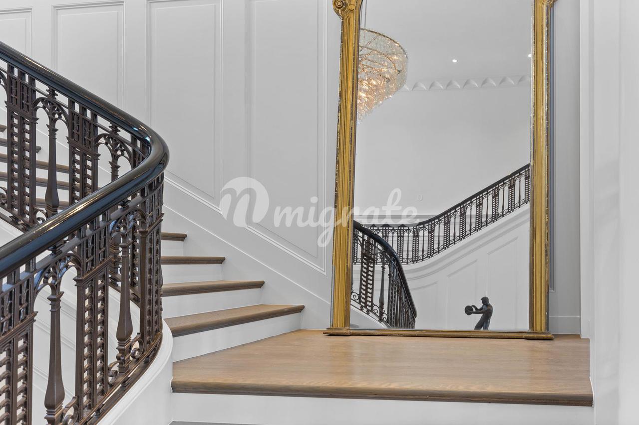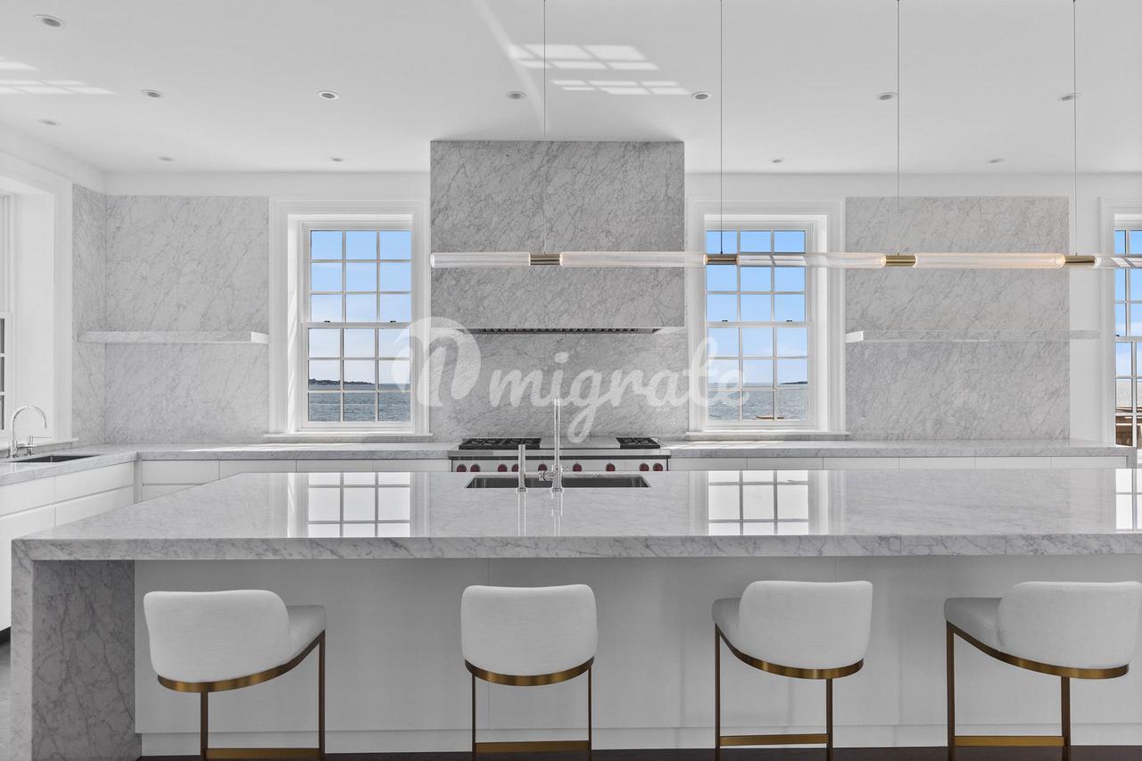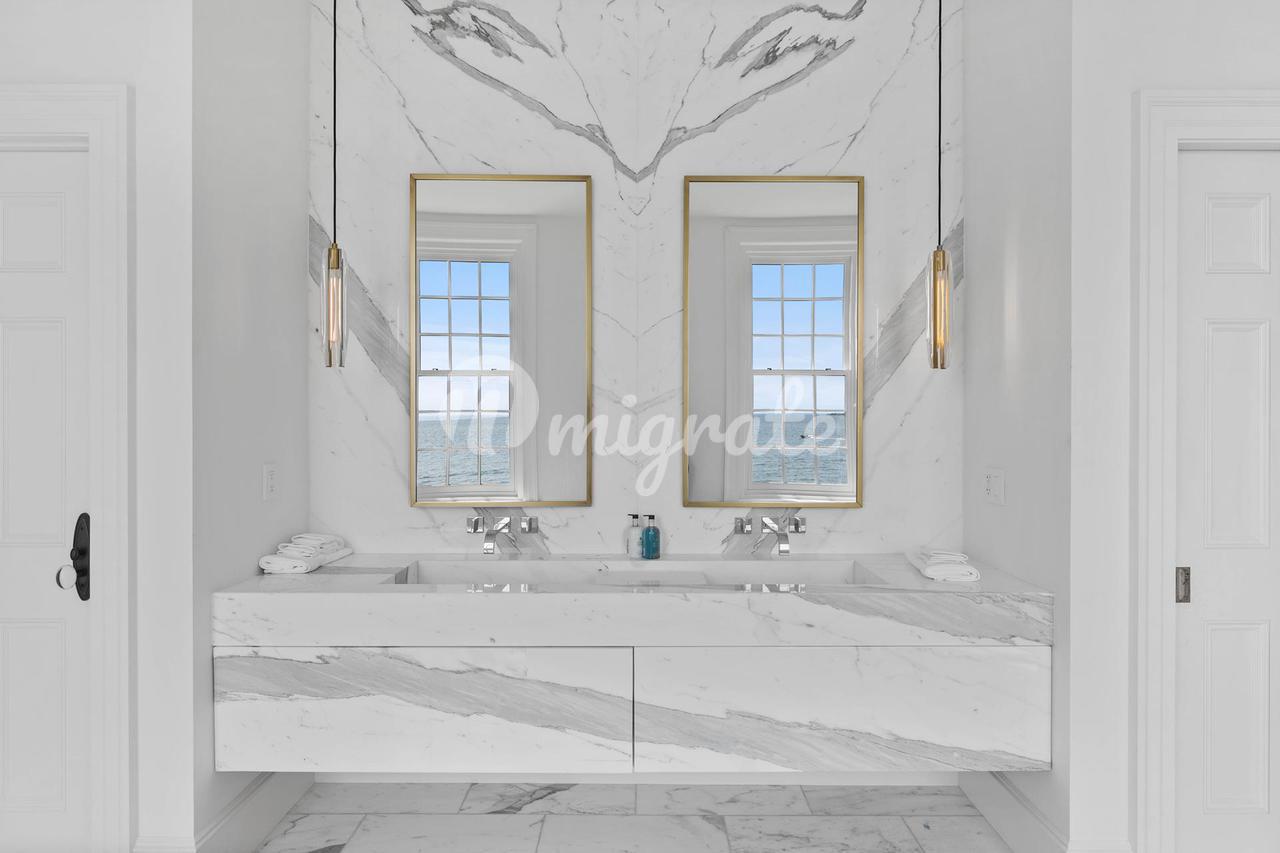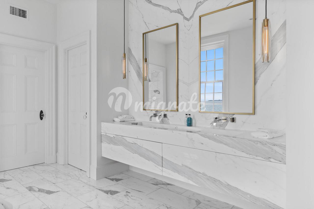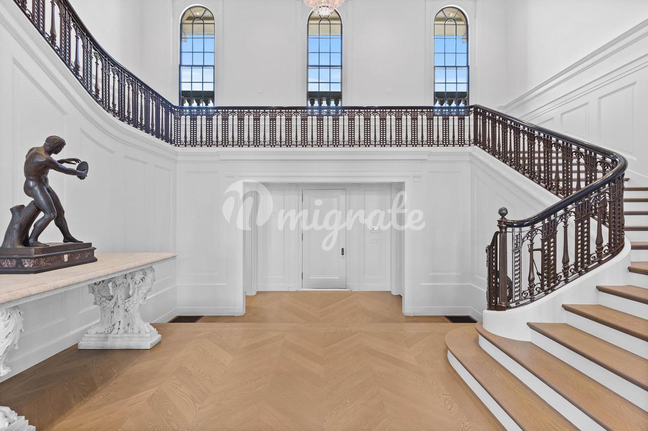 Построенный в стиле георгианского возрождения, дом может похвастаться 28 000 +/- квадратных футов прекрасно обставленной жилой площади, с 11 спальнями и 12 ванными комнатами и расположен на более чем трех тщательно благоустроенных, похожих на парк акрах. Верный своему архитектурному стилю, Rock Edge (названный так из-за того, что он расположен над скалистым берегом) имеет классические пропорции и масштаб, с красивым кирпичным фасадом с украшениями из известняка и шиферной крышей. С Пейн-авеню подъезд грозный: проезжая мимо каретного двора/коттеджа смотрителя у ворот, можно попасть в величественное поместье. Действительно чувствуешь себя перенесённым в другую эпоху. Тем не менее, войдя в дом, становится ясно, что все современные удобства были продуманы и тщательно интегрированы, чтобы сохранить архитектурные детали и элегантные черты, делая этот дом полностью пригодным для жизни и способствующим современному образу жизни. (** См. прилагаемые документы для полного описания и истории дома **)
