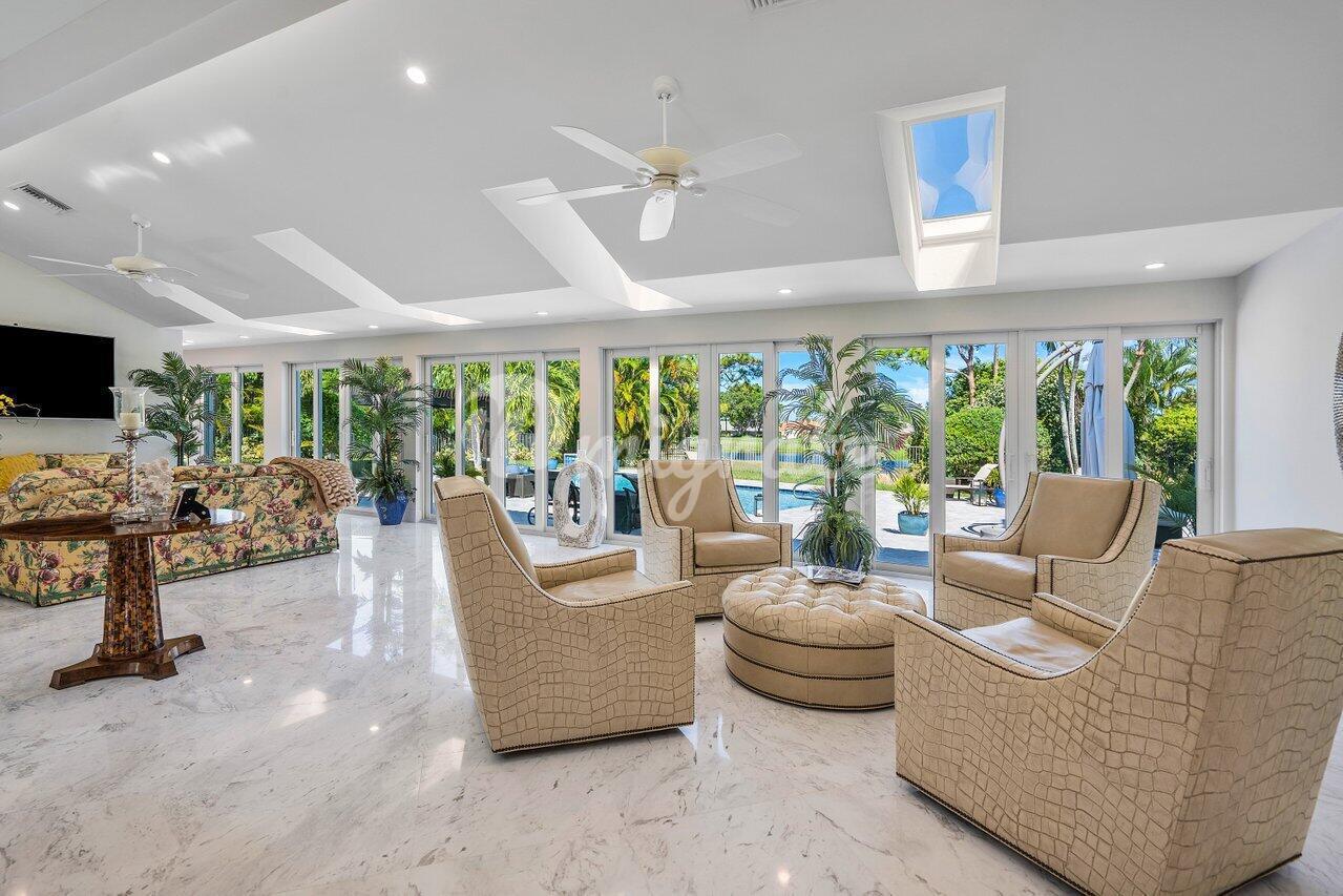 Расположенная в районе недвижимости Seagate Country Club, эта недавно отремонтированная резиденция с 5 спальнями и 4,5 ванными комнатами на берегу озера была отремонтирована сверху донизу, вплоть до шпилек. Он предлагает светлую открытую планировку с площадью около 5000 квадратных метров под открытым небом. Дизайн этого изысканного дома идеально подходит для развлечений. Он отличается современной изысканностью с исключительным вниманием к качеству и деталям, предлагая ощущение уединения и спокойствия. Это всего в нескольких милях от пляжей Делрей, оживленной Атлантик-авеню с веселыми магазинами, ресторанами и нетронутыми пляжами с белым песком. Хотя многим жителям загородного клуба Seagate нравится вести активный образ жизни в загородном клубе, членство в клубе не является обязательным. Для тех жителей, которые решили присоединиться к клубу, ежегодное членство включает