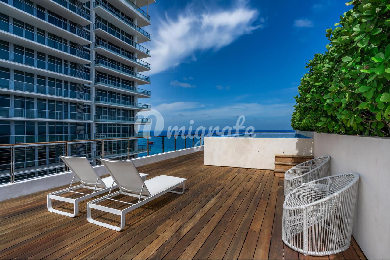 Шаг внутрь со мной! Добро пожаловать в пентхаус Beach House 8. Исключительная двухэтажная резиденция с потрясающим видом на океан и городской пейзаж. В этом экстраординарном отеле, спроектированном известной фирмой Arquitectonica, есть 5 кроватей и 5 ванн общей площадью 10 000 SF. Морская атмосфера выражается панорамами от пола до потолка на 360° и современной элегантной отделкой. Наслаждайтесь уединением в роскошной главной спальне на отдельном полном этаже, в сопровождении кабинета и большой ванной с видом на обширную личную террасу. За пределами основной террасы поднимитесь на невероятную террасу с бассейном на крыше, которая идеально подходит для развлечений и принятия солнечных ванн. BH 8 предлагает такие удобства, как: 75-футовый бассейн, круглосуточный консьерж, фитнес-студия, йога, кабинки для переодевания, прямой выход на пляж всего для 8 частных резиденций.