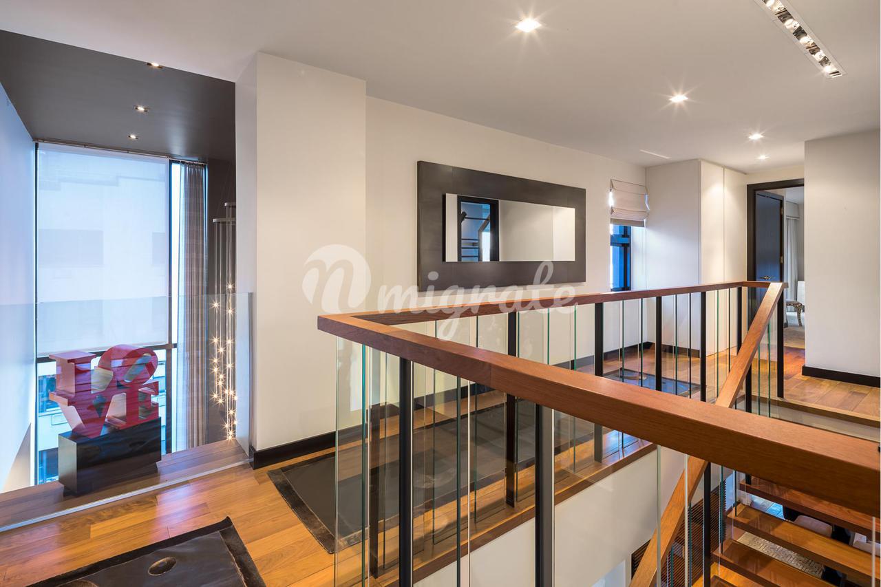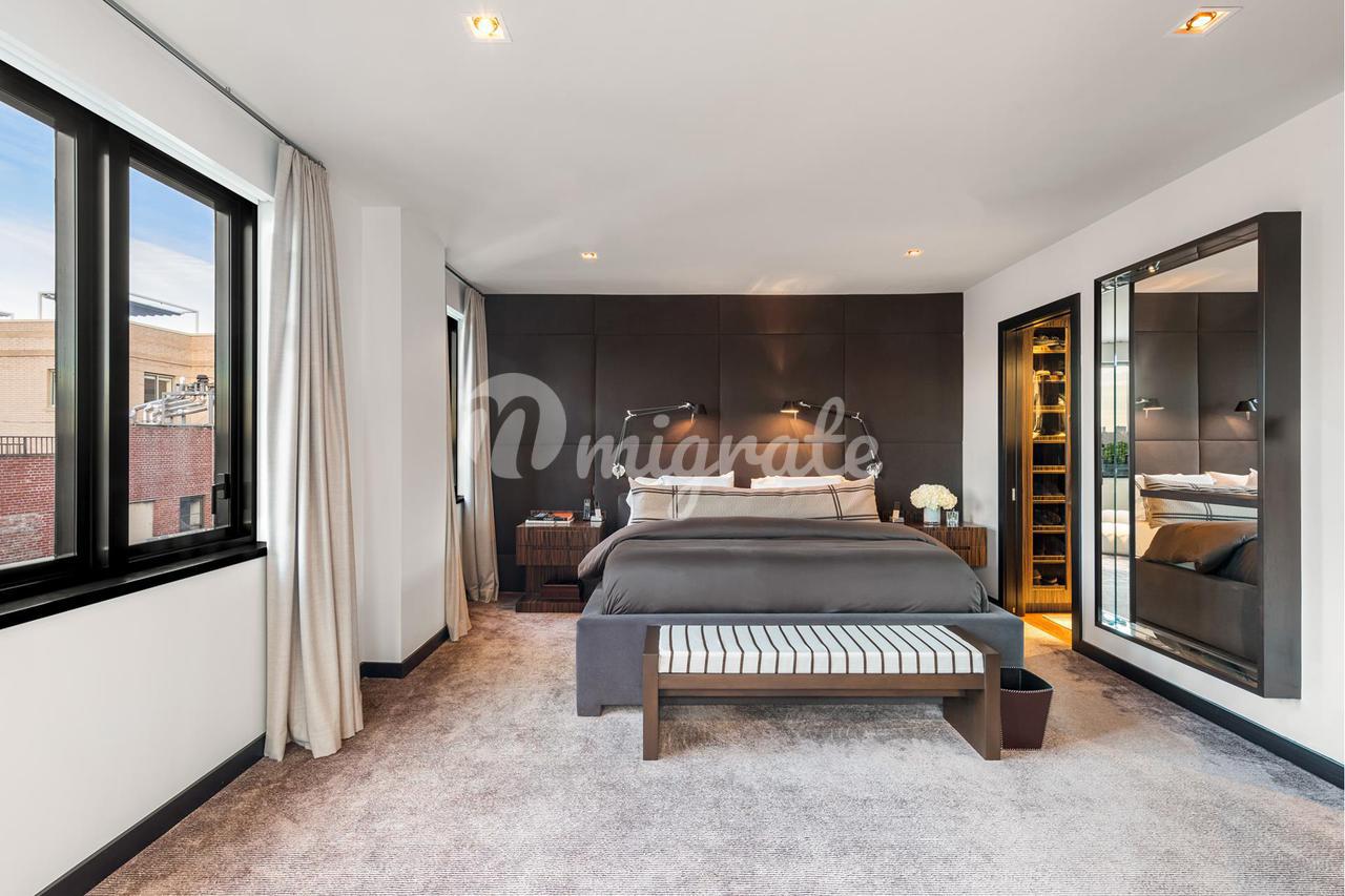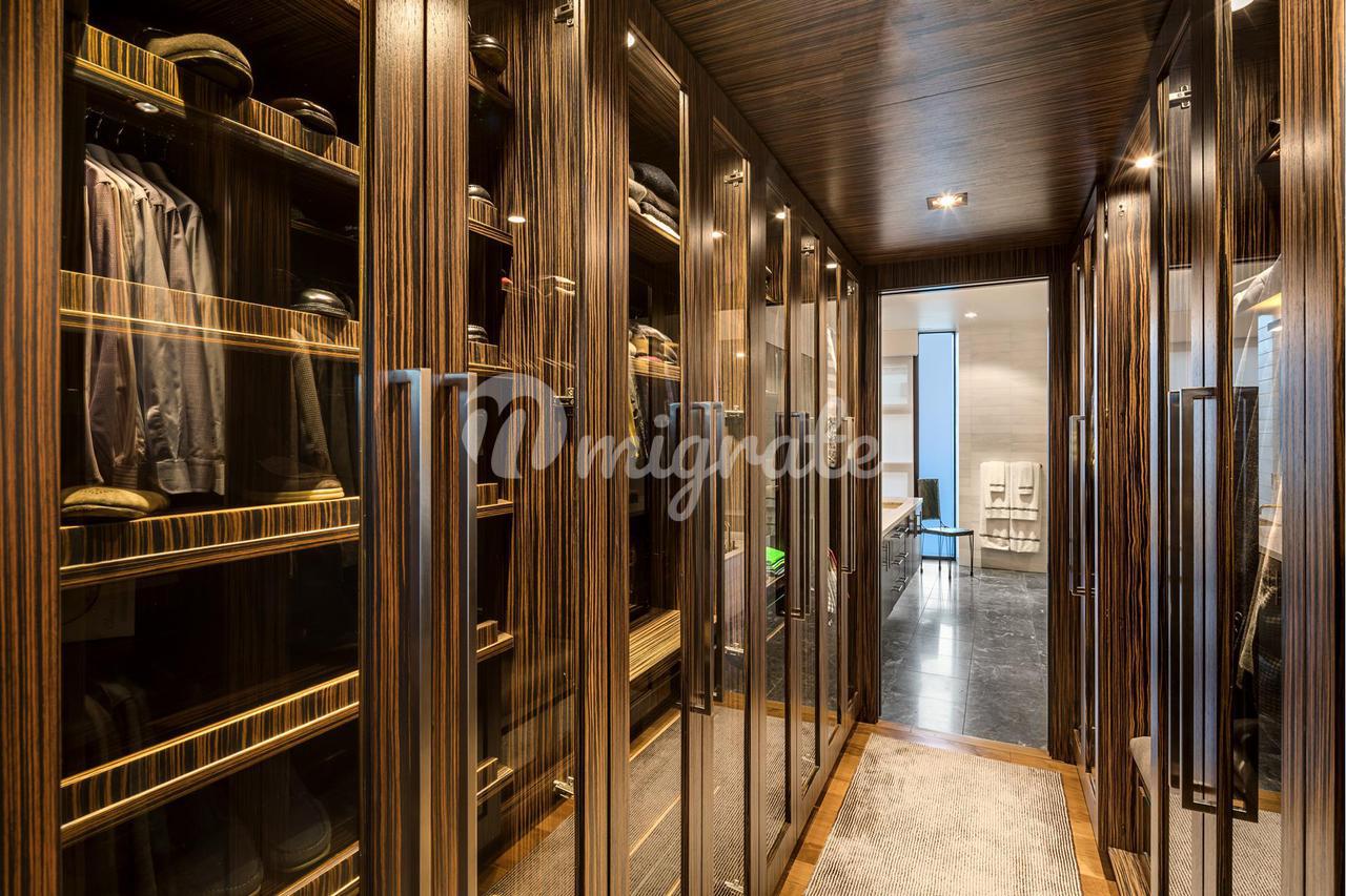 Большая главная спальня соединяется с террасой на этом этаже с видом на север и запад. Здесь есть потайная дверь для прямого доступа к общей террасе на крыше, бассейну и джакузи. В люксе есть красивая гардеробная со сделанными на заказ стеклянными дверями. В основной ванной комнате есть туалетный столик с двойной раковиной и скрытым телевизором в зеркале, глубокая ванна и большой стеклянный стоячий паровой душ, инфракрасная сауна, а также отдельный туалет и теплый пол. Каждая вторая и третья спальни имеют собственные ванные комнаты и гардеробные.