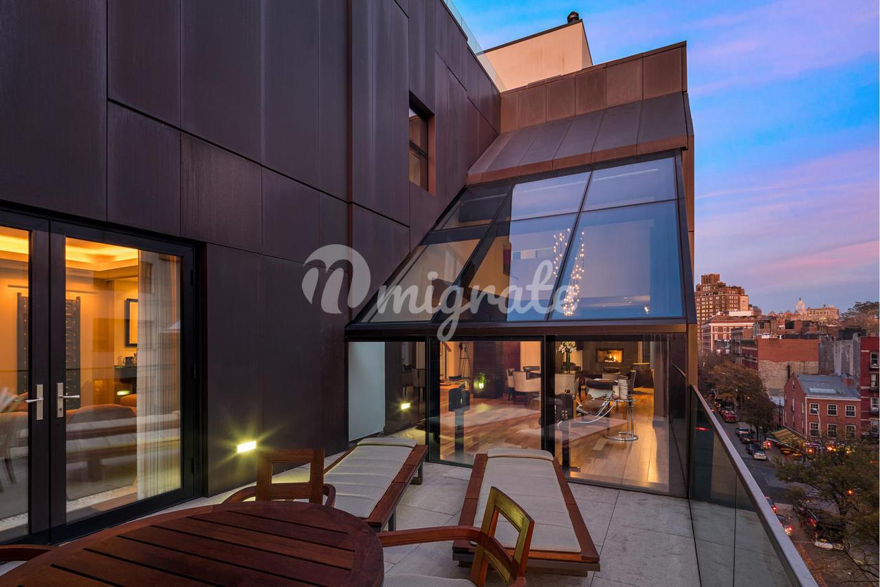 Потрясающий двухуровневый пентхаус West Village с четырьмя спальнями, тремя частными террасами и видом на реку Гудзон. Расположенный в одном из самых лучших мощеных кварталов Вест-Виллидж, в спроектированном FLANK кондоминиуме с 12 квартирами и полным спектром услуг, 385 West 12th Street, который включает в себя террасу на крыше с плавательным бассейном и джакузи.