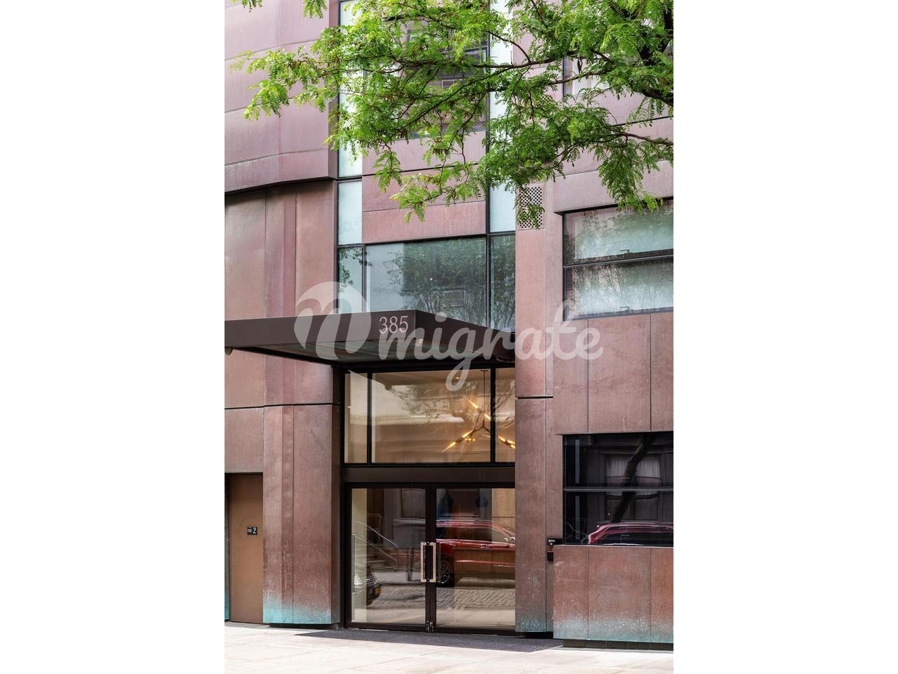385 West 12th Street — это бутик-кондоминиум с полным спектром услуг, состоящий всего из 12 квартир в одном из самых престижных кварталов Вест-Виллидж. Построенное в 2008 году по проекту FLANK Architects, здание известно своим ярким фасадом из меди и стекла и качественным современным дизайном. В здании есть круглосуточный консьерж и домработница/прачка.