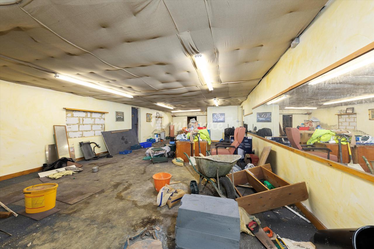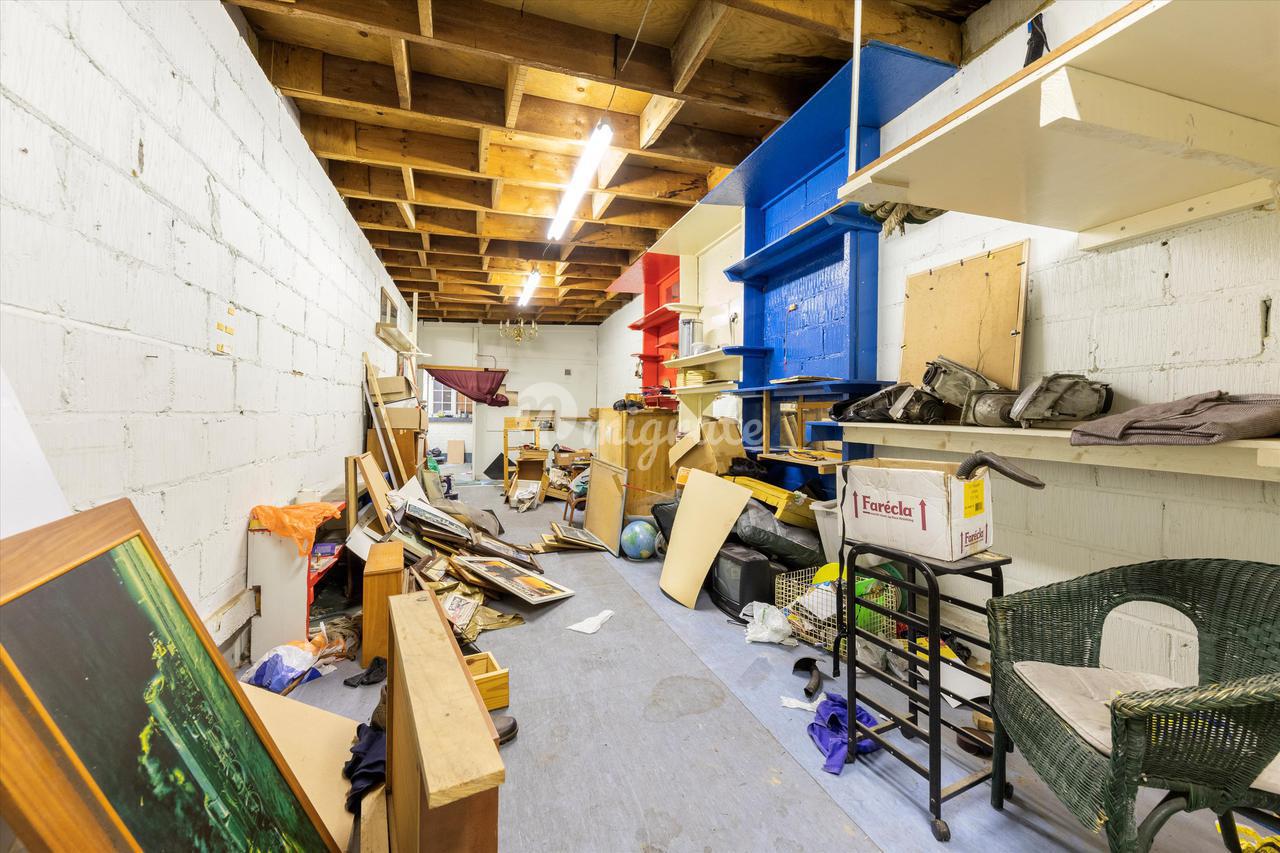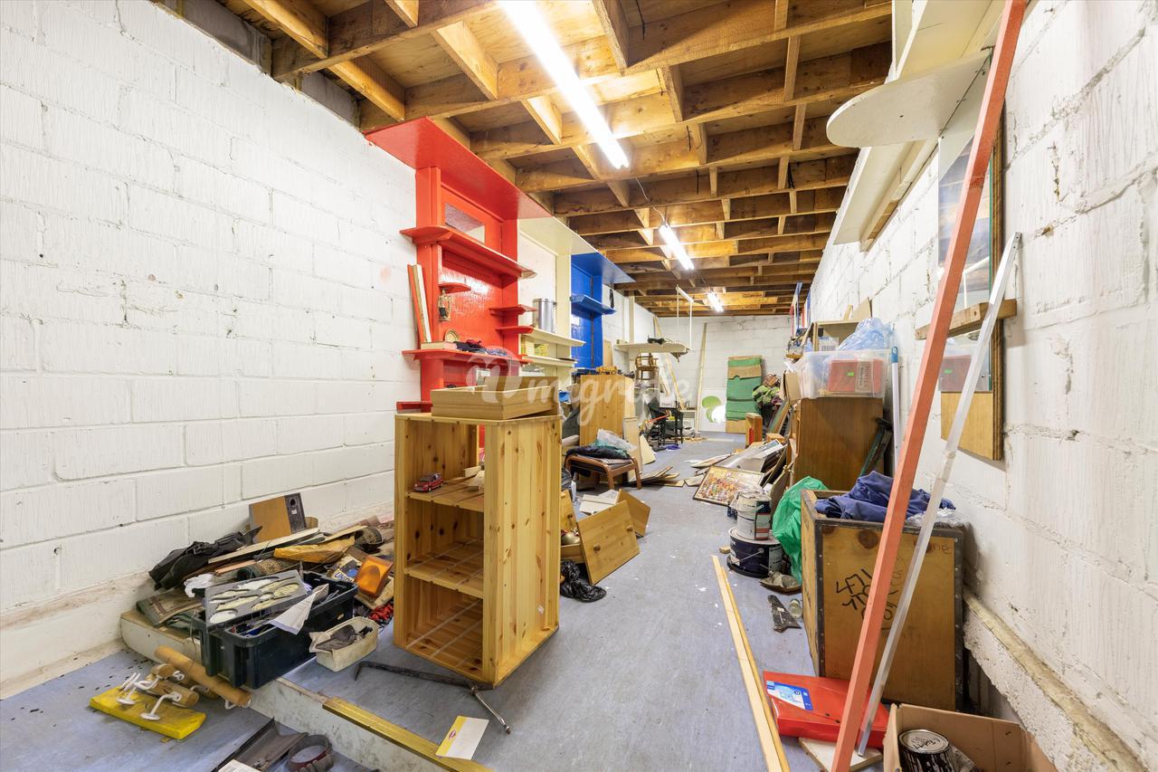 На первом этаже расположены складские помещения с офисными помещениями, разделенными на 3 комнаты, мини-кухню и туалет на втором этаже. В доме есть две двери с рольставнями в виде гармошки. Размещение