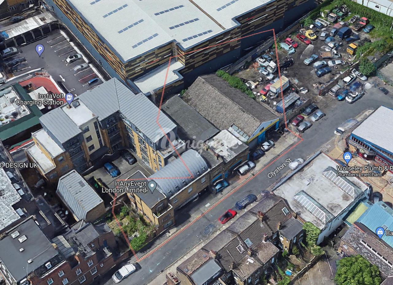 Недвижимость в Найн Элмс представляет собой пустующее коммерческое помещение, расположенное на Клистон-стрит, недалеко от ее пересечения с Уондсворт-роуд (A3036).
