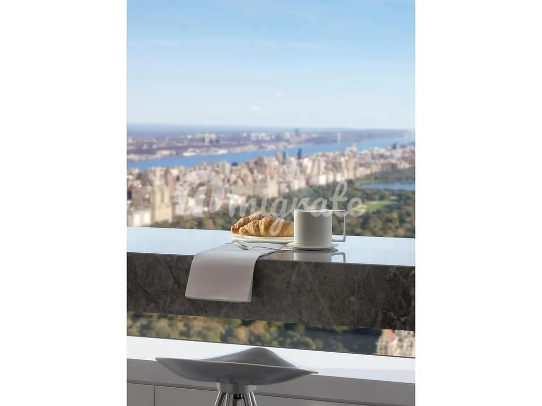 Кухня шеф-повара оборудована бытовой техникой Miele, мебелью из белого лака и дуба, центральным островом из мрамора Bianco Scintillante с глубоким хранилищем, полами и столешницами из голубого савойского мрамора и хромированными светильниками Dornbracht. Из мраморной барной стойки для завтрака открывается вид на Центральный парк. В библиотеку, которая также может служить официальной столовой, можно попасть через карманные двери из фойе с видом на город через Мэдисон-авеню.