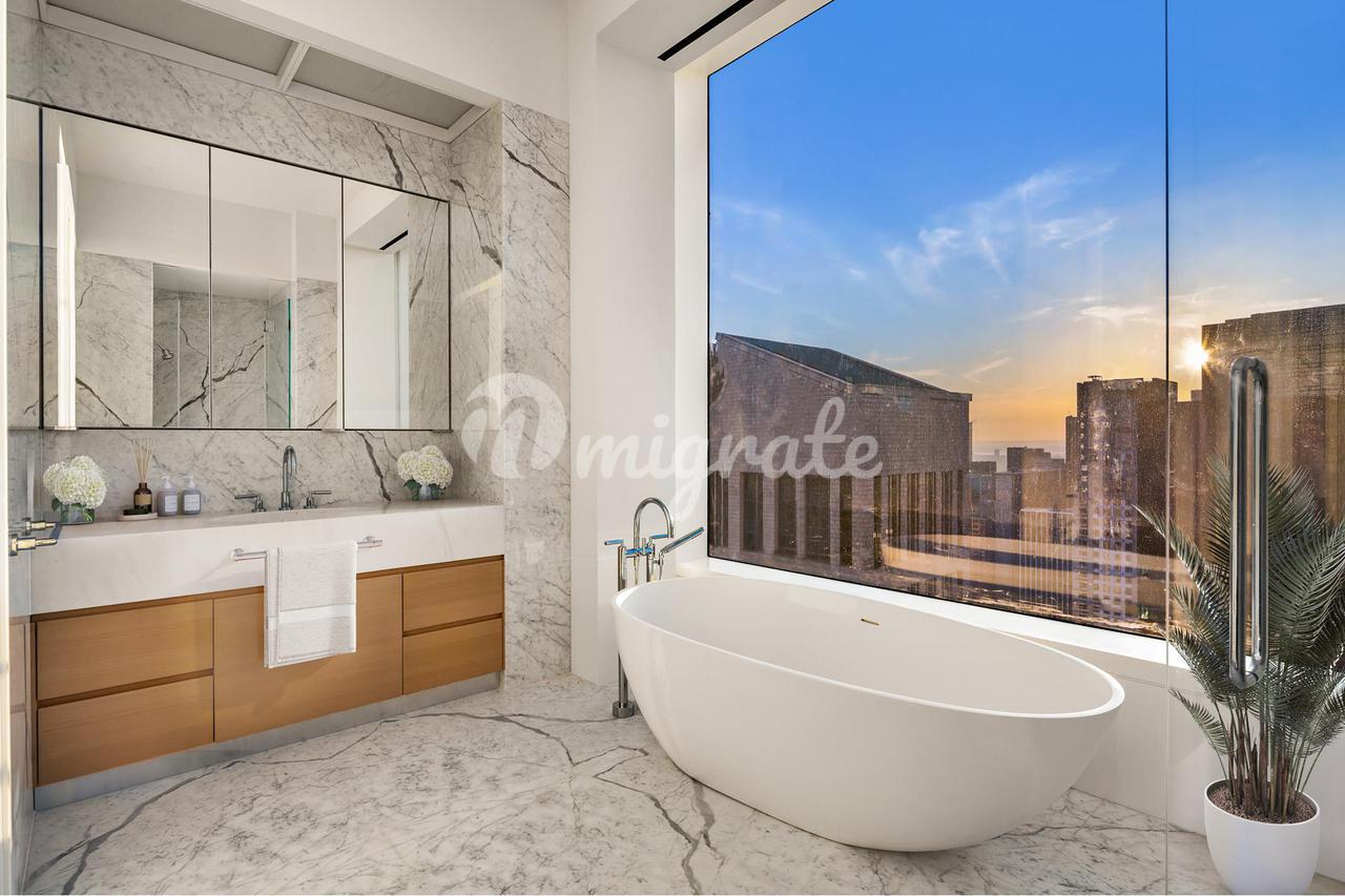 Вторая спальня также имеет ванную комнату, а третья, расположенная рядом с галереей, при желании может удобно служить библиотекой или офисом. Эта современная башня, спроектированная Рафаэлем Виноли, возвышается на 96 этажей над Парк-авеню и изменила горизонт Манхэттена. Превосходное расположение между 56-й и 57-й улицами дает вам доступ к лучшим предложениям города.