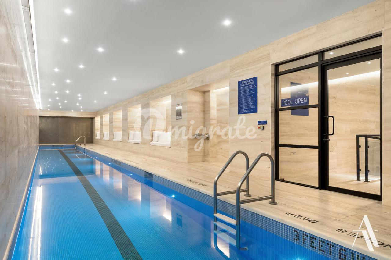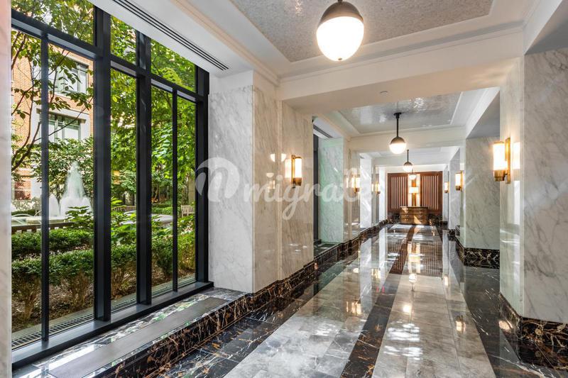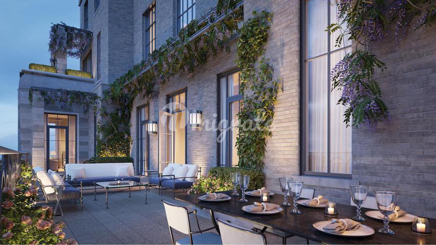Удобства включают крытый бассейн длиной 70 футов с турецкими банями. Кроме того, ультрасовременный фитнес-центр с частными студиями йоги/пилатеса, инфракрасной сауной, детской игровой комнатой, винным погребом, ландшафтной крышей площадью 5000 квадратных футов и центральным внутренним двором. Жители также могут использовать частный гараж здания, доступ в который возможен только через двойные ворота для дополнительной конфиденциальности.