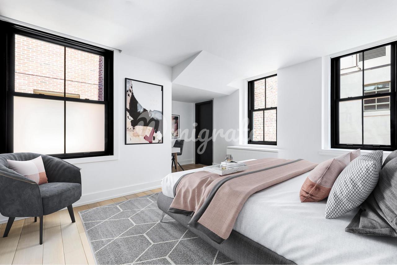 Главная спальня на втором этаже триплекса, выходящая на южную сторону, залита естественным светом, имеет несколько встроенных шкафов и ванную комнату, выходящую на восток, которая украшена итальянскими мраморными плитами Calacatta. Также имеется отдельно стоящая ванна для яиц, застекленный паровой душ с верхним дождевым куполом, опрыскиватель для тела, расслабляющая каменная скамья, теплые полы с подогревом, два комплекта бронзовых смесителей и отдельный туалет с биде. На этом этаже также есть еще одна большая спальня с ванной комнатой, кабинет, который может быть преобразован в четвертую спальню, восточные экспозиции и ванная комната.