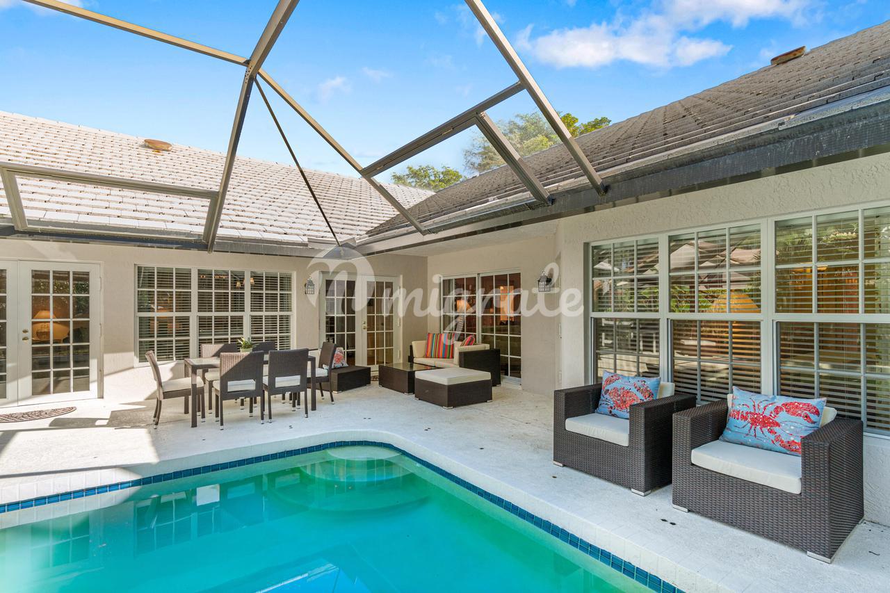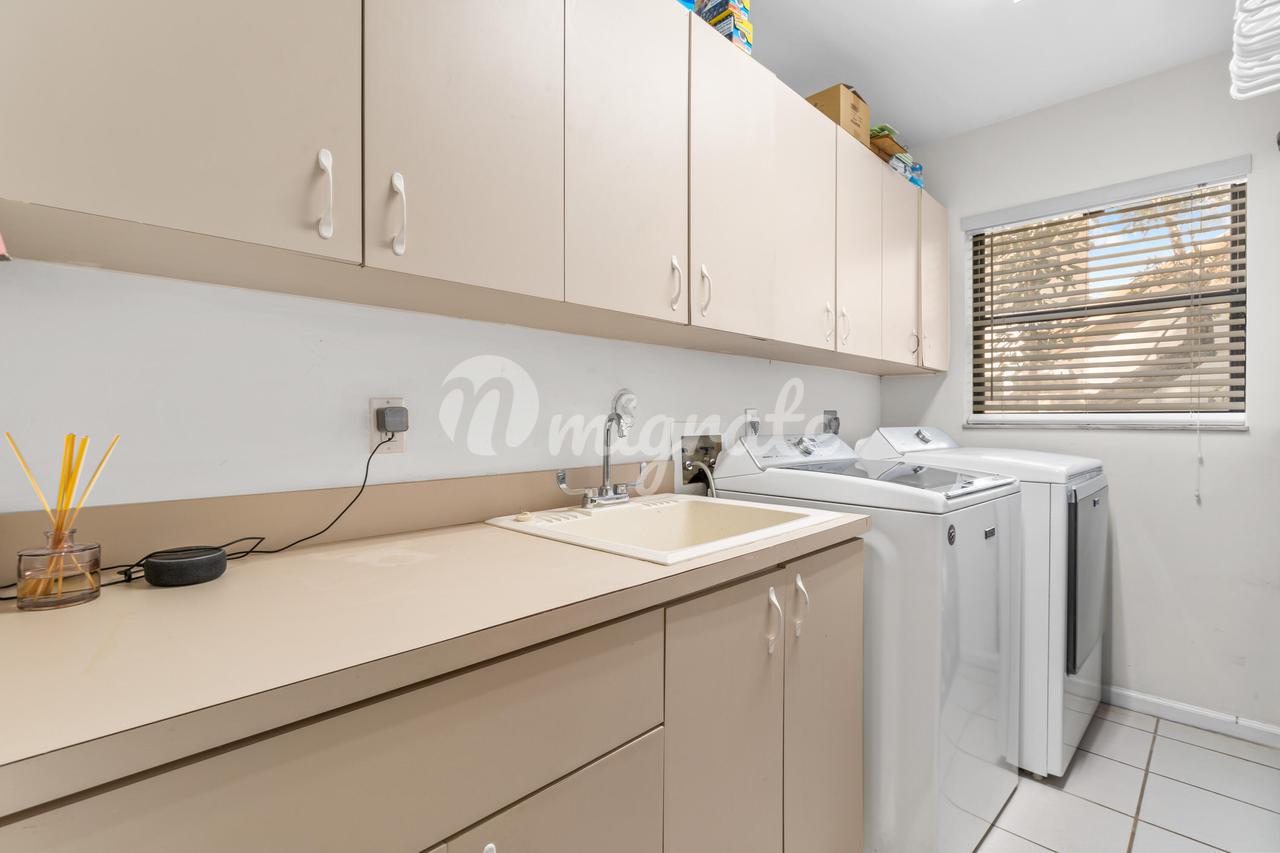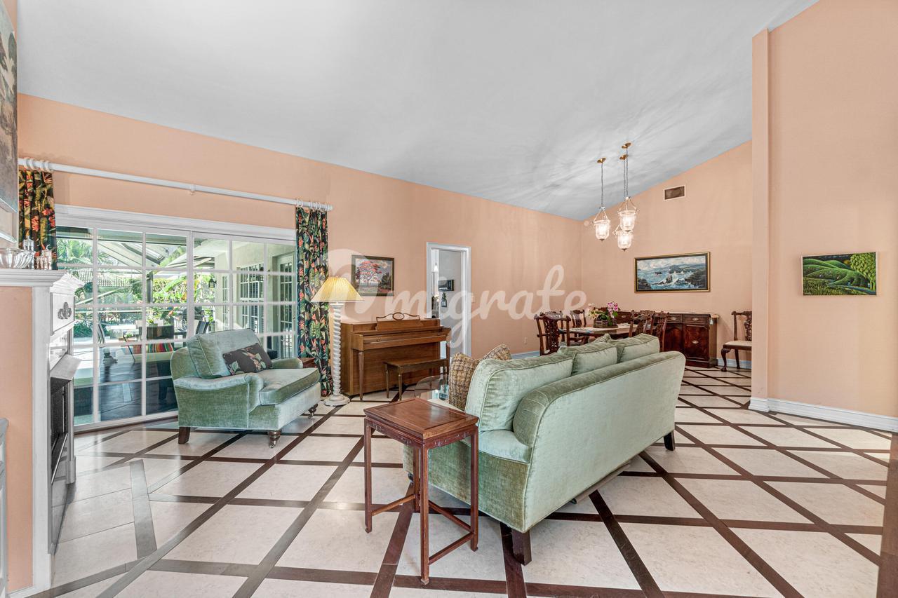 В желанном районе Колоннада вас ждет этот одноэтажный дом с бассейном, построенный компанией CBS, расположенный в центре города. Этот просторный, хорошо оборудованный дом с 4 спальнями и 3 ванными комнатами может похвастаться прихожей с кессонным потолком, гостиной с газовым камином и столовой с высокими потолками. На открытой планировке расположены зал для завтрака, семейная комната и кухня с большим количеством гранитной столешницы для приготовления пищи и развлечений, барной зоной, шкафами из деревянного профиля и модернизированной бытовой техникой. Из гостиной и семейных комнат через французские двери всего один шаг к потрясающему внутреннему дворику, огороженному сеткой, бассейну и заднему двору. Отдельная прачечная с раковиной, раздельная планировка спальни и гараж на 2 машины (с гаражной дверью, защищенной от урагана) дополняют этот дом.