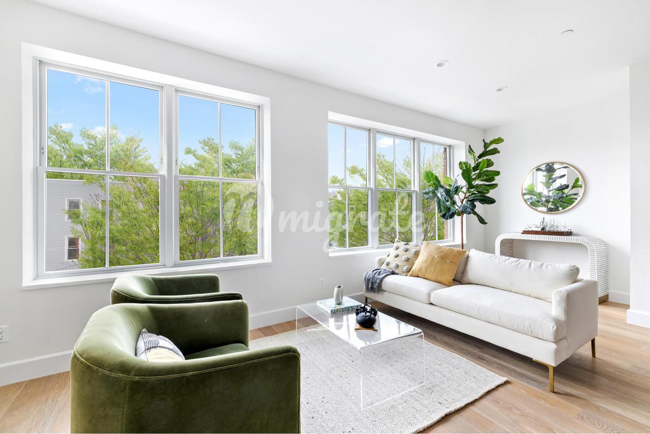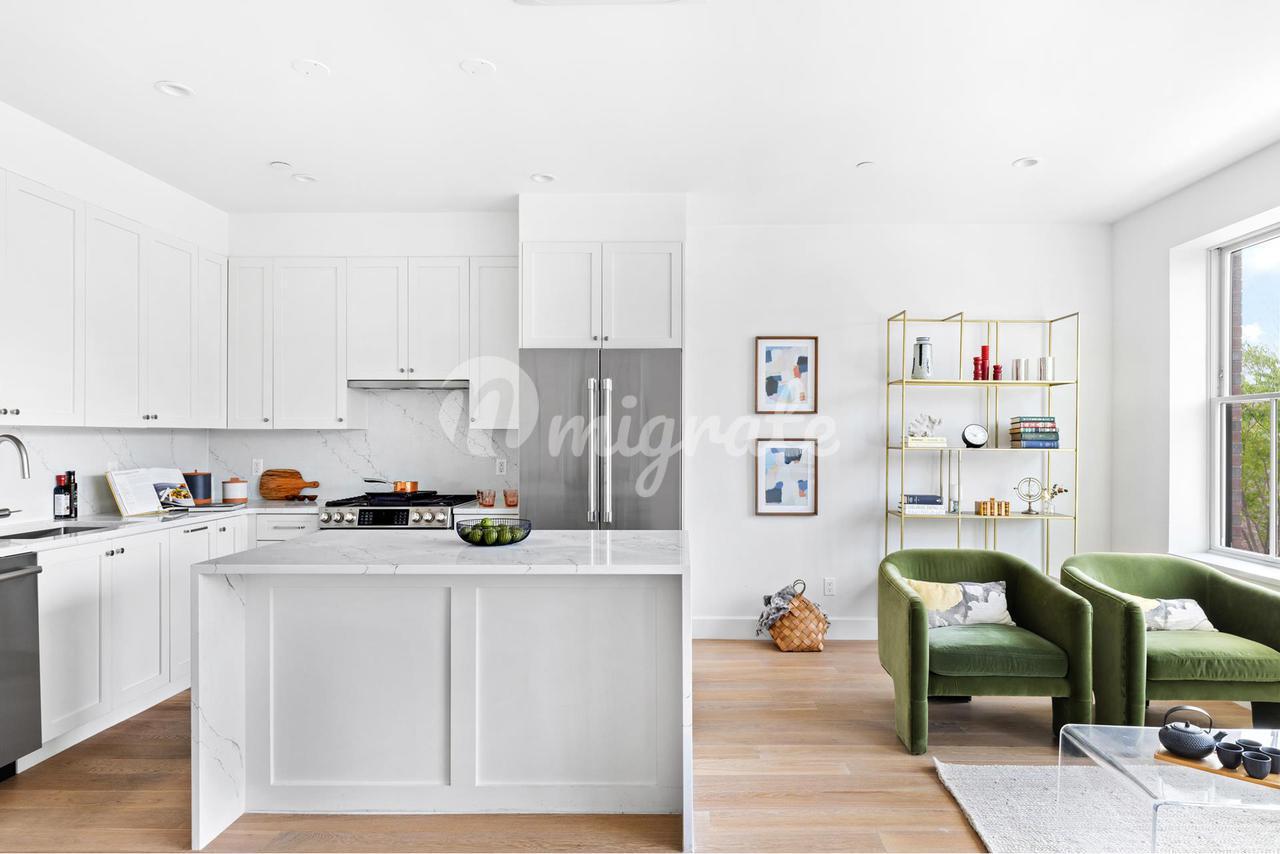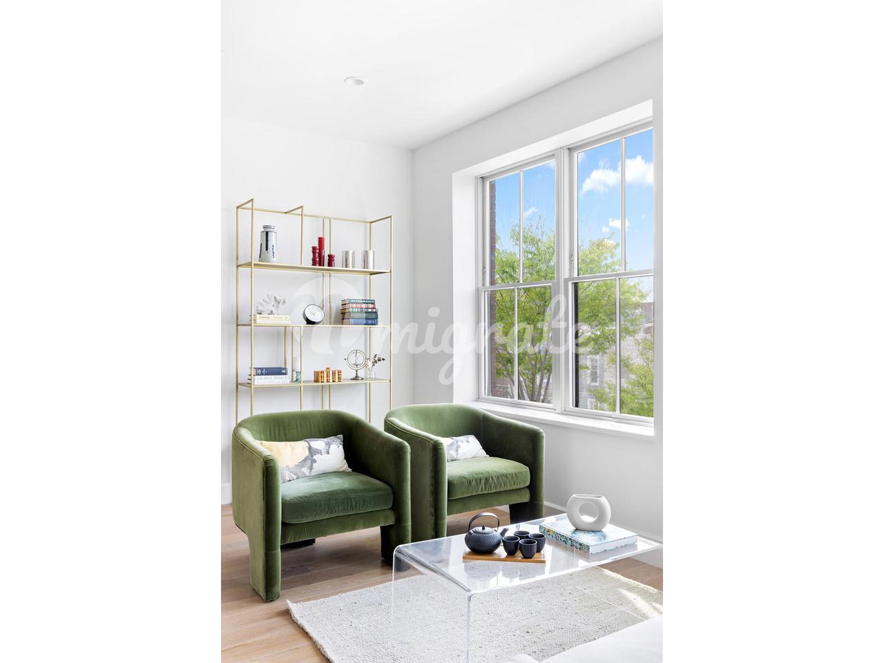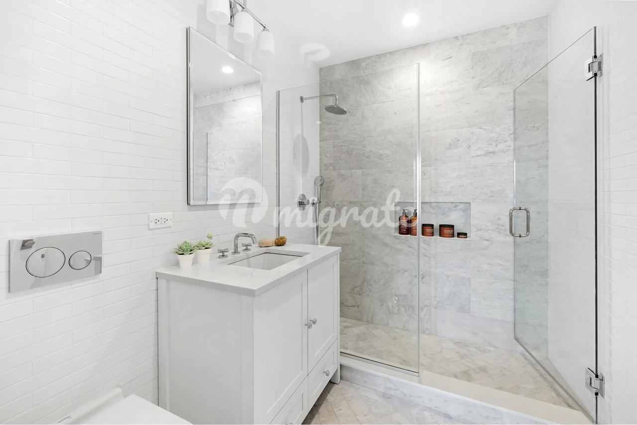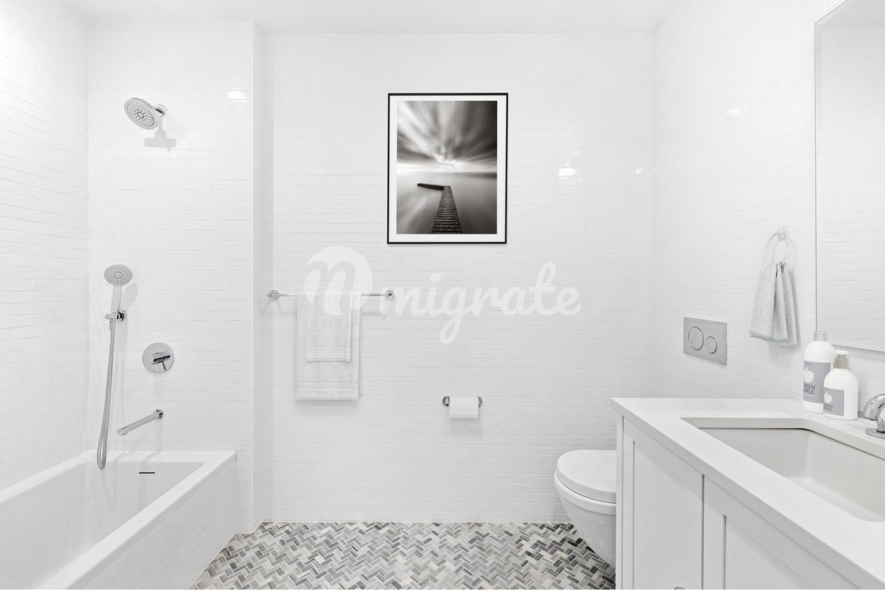 Продуманный дизайн с использованием тщательно подобранных материалов класса люкс, в том числе экологически чистых тонированных 5,5-дюймовых напольных покрытий из сибирского белого дуба, кухонных столешниц из кварцита Pental Quartz и задней панели, которые дополняют внешний вид белого мрамора с широкими темно-серыми прожилками. Кухонная сантехника от Riobel, кухня включает 24-дюймовую посудомоечную машину серии GE Cafe и 30-дюймовую газовую плиту, а также вместительный 36-дюймовый холодильник Bosch и 30-дюймовую выдвижную вытяжку. Высокие потолки и огромные окна на трех экспозициях пропускают великолепный сияющий свет в течение всего дня. Ванные комнаты отделаны белой фарфоровой плиткой с акцентом на напольную плитку из серого мрамора Ice Cap Mist & Asher. В устройстве удобно установлена стиральная машина стандартного размера с фронтальной загрузкой 110 В и вентилируемая электрическая сушилка.
