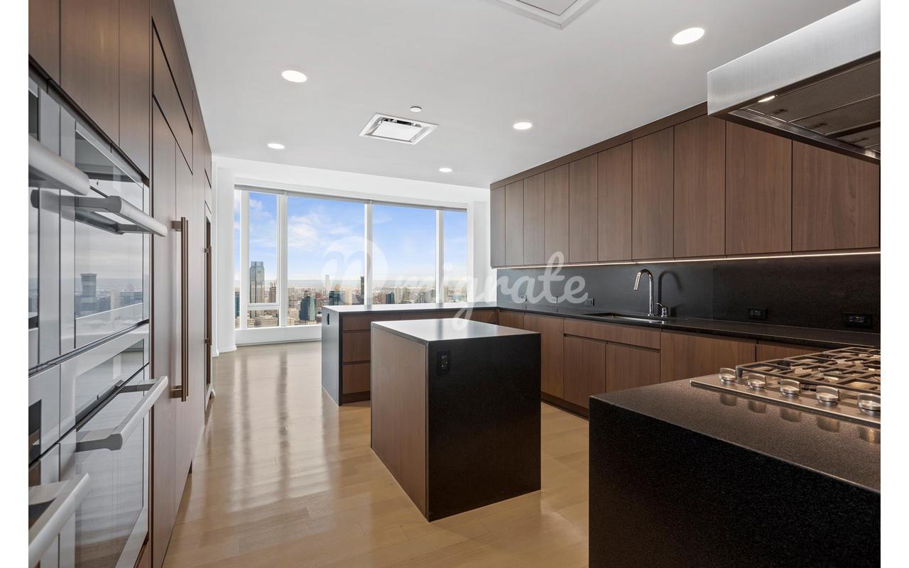 Изысканный пентхаус 4BR/4BA. Расположенный на 58-м этаже, этот апартамент располагает окнами от пола до потолка, которые обеспечивают яркое естественное освещение и захватывающий вид на север, Запад и юг. Открытая планировка гостиной и столовой отлично подходит для приема гостей. Квартира включает в себя отдельный зал для завтрака, расположенный рядом с кухней, который оснащен изготовленными на заказ шкафами с витражами, гранитными столешницами и островом с водопадом с бытовой техникой от Miele и Sub-Zero. В главной спальне есть несколько шкафов и ванная комната в стиле спа с двойным мраморным туалетным столиком, полом с подогревом, стеклянным тропическим душем и отдельной ванной для купания, а также высококачественная отделка, такая как Toto и Hansgrohe. Эта квартира также включает в себя смежные ванные комнаты для двух дополнительных спален и встроенную стиральную машину и сушилку.