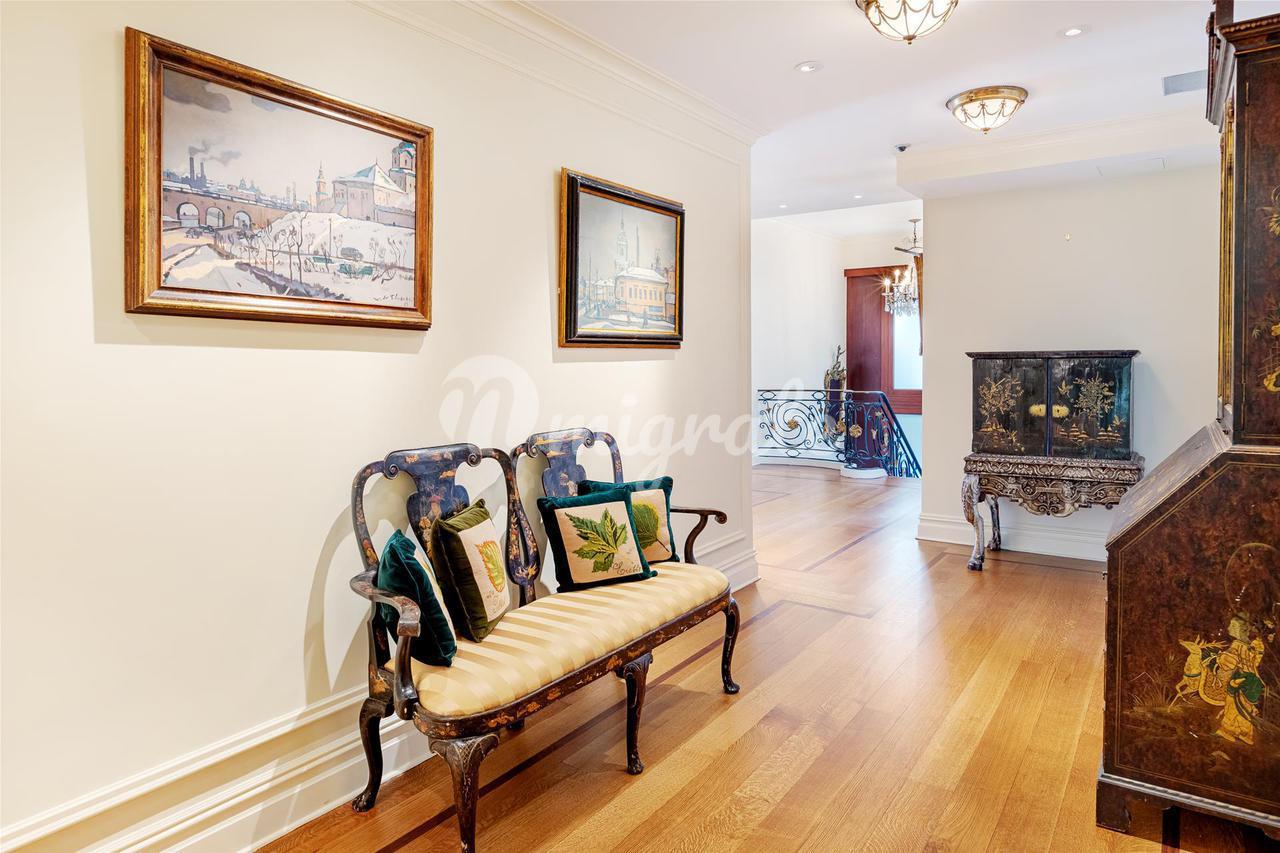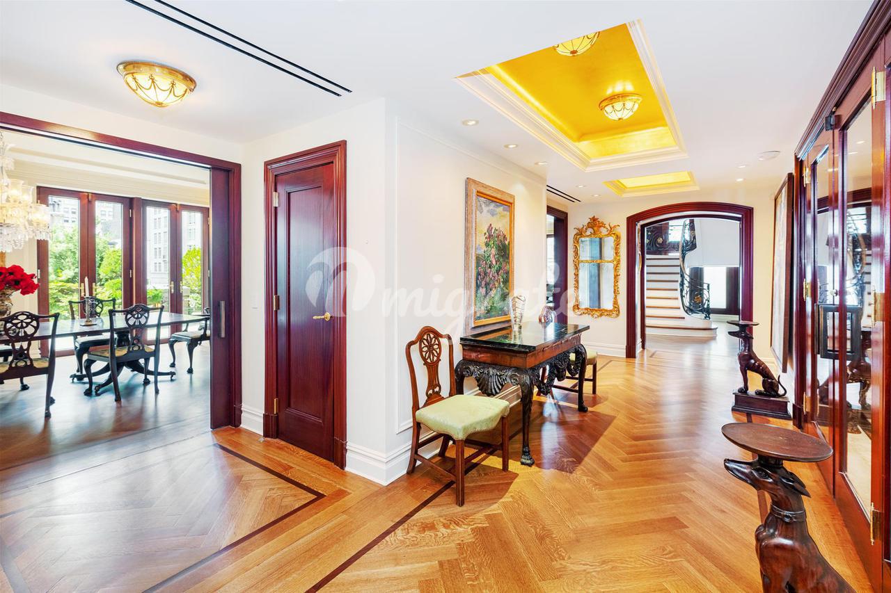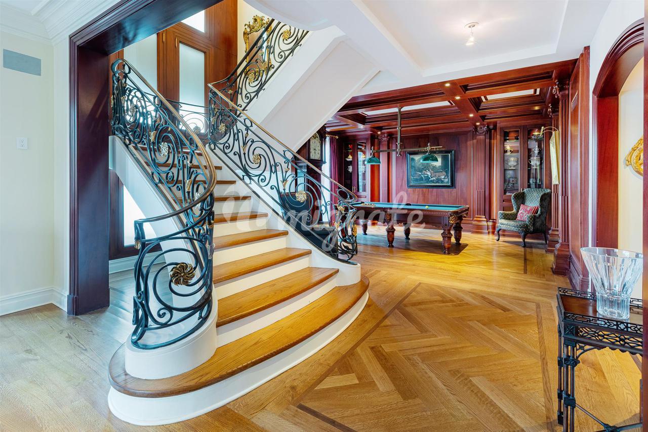 Изящная планировка этажа отличается большой и уютной галереей для входа на площадку частного лифта с широкой лестницей. Каждая комната на этом роскошном этаже имеет двойную экспозицию с выходом на захватывающую дух террасу через красивые стеклянные французские двери от пола до потолка, наполняющие дом необыкновенным светом. Роскошная угловая гостиная с большим размахом располагает газовым камином, изысканной библиотекой / бильярдной комнатой с изготовленными на заказ деревянными панелями и элегантной столовой, идеально подходящей для проведения самых запоминающихся как интимных, так и больших собраний. Прямой выход на террасу также позволяет прекрасно пообедать на открытом воздухе. Современная кухня с великолепным залом для завтраков, который также выходит на сказочную террасу, дополнена сухим баром и винным погребом. На этом этаже также есть полноценная спальня с ванной комнатой, удобно расположенная дамская комната и отдельная прачечная. 2 этажа соединены изысканной лестницей с замысловатым дизайном и импортными перилами из кованого железа. В квартире также есть собственный внутренний лифт. На втором этаже находятся частные апартаменты с 5 спальнями и потрясающе красивым домашним кинотеатром. Массивный основной люкс состоит из большой гостиной, отделанной мрамором ванной с окнами, а также просторной гардеробной. Одна из спален в настоящее время используется в качестве гламурного домашнего офиса. Во всех дополнительных спальнях есть собственные ванные комнаты. Этот эксклюзивный дом воплощает в себе максимум изысканной, грандиозной роскоши для тех, кто ищет только лучшую недвижимость в мире.