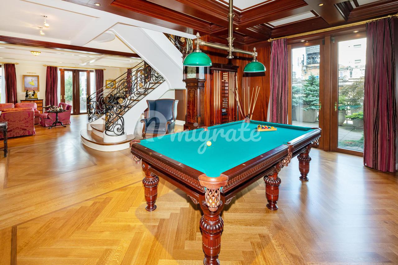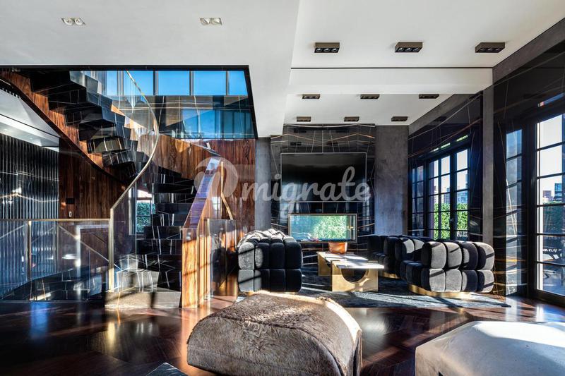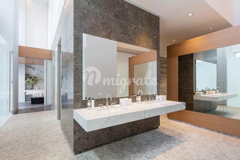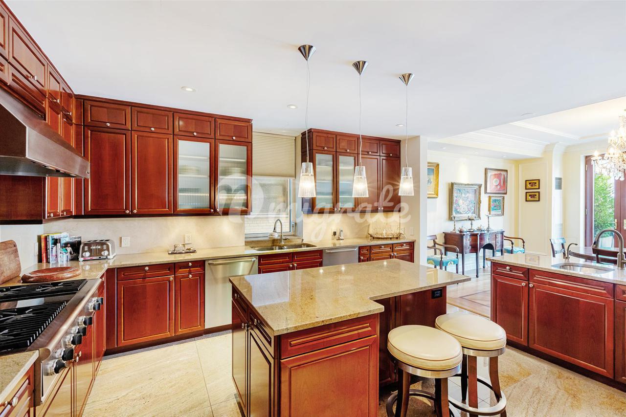 Изящная планировка этажа отличается большой и уютной галереей для входа на площадку частного лифта с широкой лестницей. Каждая комната на этом роскошном этаже имеет двойную экспозицию с выходом на захватывающую дух террасу через красивые стеклянные французские двери от пола до потолка, наполняющие дом необыкновенным светом. Роскошная угловая гостиная с большим размахом располагает газовым камином, изысканной библиотекой / бильярдной комнатой с изготовленными на заказ деревянными панелями и элегантной столовой, идеально подходящей для проведения самых запоминающихся как интимных, так и больших собраний. Прямой выход на террасу также позволяет прекрасно пообедать на открытом воздухе. Современная кухня с великолепным залом для завтраков, который также выходит на сказочную террасу, дополнена сухим баром и винным погребом. На этом этаже также есть полноценная спальня с ванной комнатой, удобно расположенная дамская комната и отдельная прачечная. 2 этажа соединены изысканной лестницей с замысловатым дизайном и импортными перилами из кованого железа. В квартире также есть собственный внутренний лифт. На втором этаже находятся частные апартаменты с 5 спальнями и потрясающе красивым домашним кинотеатром. Массивный основной люкс состоит из большой гостиной, отделанной мрамором ванной с окнами, а также просторной гардеробной. Одна из спален в настоящее время используется в качестве гламурного домашнего офиса. Во всех дополнительных спальнях есть собственные ванные комнаты. Этот эксклюзивный дом воплощает в себе максимум изысканной, грандиозной роскоши для тех, кто ищет только лучшую недвижимость в мире.