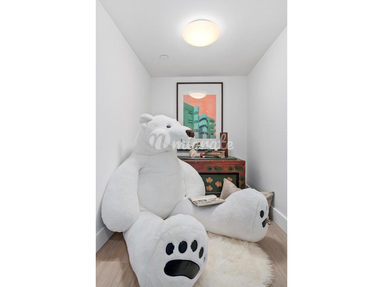 Резиденция 1B является воплощением альтернативной жизни в таунхаусе. Садовый триплекс площадью 1953 кв.м с отдельным входом располагает тремя спальнями, двумя с половиной ванными комнатами, комнатой отдыха площадью 658 кв.м и частной террасой площадью 351 кв. м с потрясающим видом на нижний Манхэттен. На главном уровне вас встречает великолепная комната с потолками двойной высоты, светлыми, спокойными окнами на север и Юг и камином, работающим на этаноле.