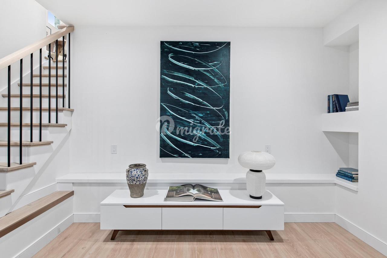 Наслаждайтесь приготовлением пищи и развлечениями на кухне с открытыми окнами и кварцевыми столешницами с отточенными прожилками, высококачественной встроенной техникой серии Fisher & Paykel professional и изготовленной на заказ мебелью. Основная спальня на этом уровне включает в себя вместительный шкаф и ванную комнату с изготовленной на заказ мебелью, двойным туалетным столиком, душевой кабиной и полом с подогревом. Во второй спальне есть большой шкаф и большие двойные окна, в то время как третья спальня при желании также может служить домашним офисом. В этом хорошо продуманном доме имеется множество дополнительных шкафов-купе. Поднимитесь на один пролет на свою собственную террасу, откуда открывается потрясающий вид на таунхаус и нижний Манхэттен и центр Бруклина. Это место идеально подходит для обедов и развлечений на открытом воздухе круглый год. Спустившись по элегантной лестнице, вы попадете в огромную дополнительную гостиную, идеально подходящую для гостевой комнаты, комнаты развлечений, игровой комнаты или выделенного домашнего офиса. Этот уровень дома также включает в себя дамскую комнату, огромную гардеробную для дополнительного хранения вещей и прачечную с вентиляционными отверстиями для белья.