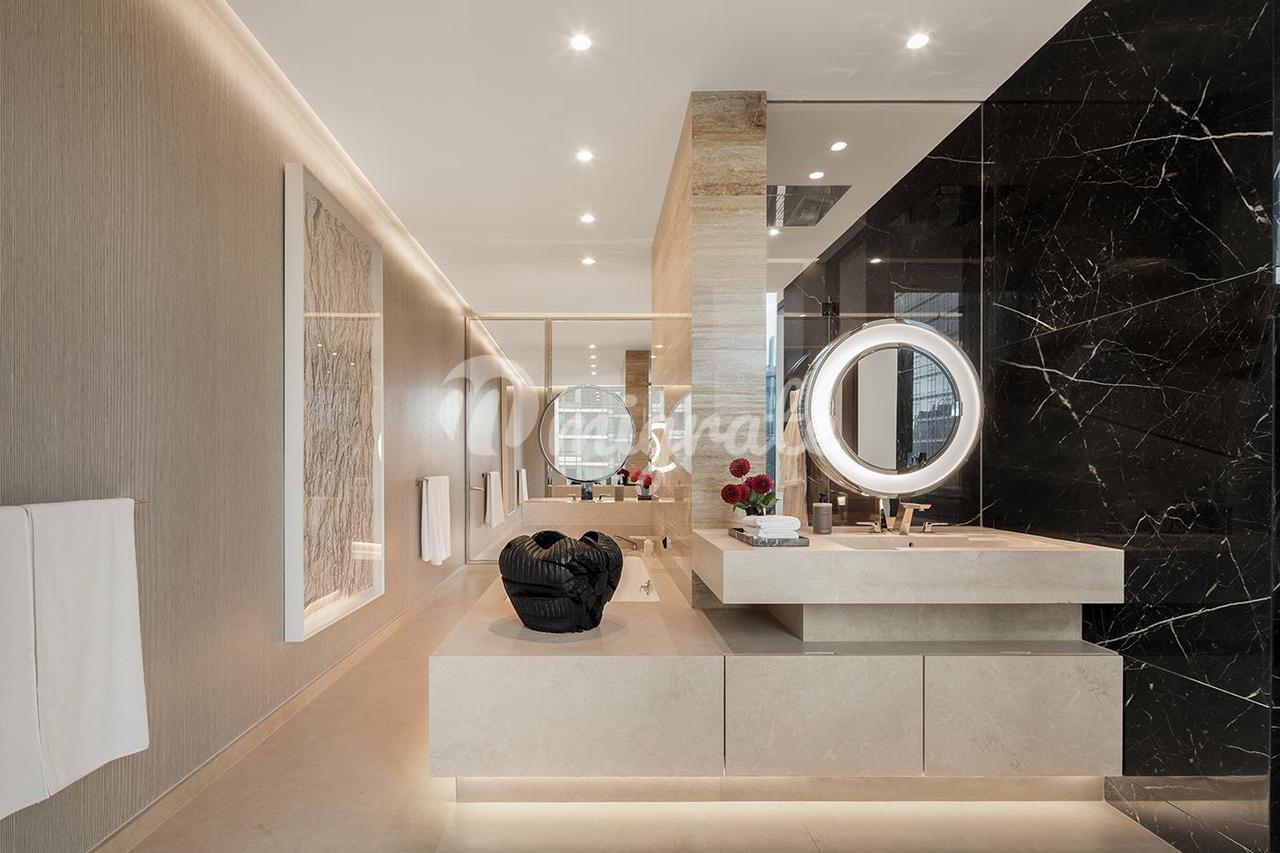 Резиденция 17B, расположенная по адресу: 53 West 53, сочетает в себе масштабную жизнь и уютную домашнюю обстановку, включает в себя 4220 квадратных футов внутренней и 800 квадратных футов внешней площади, предлагая четыре спальни и кабинет с окнами, три с половиной ванные комнаты, а также северную, южную, и экспозиции на восток. Изящные пропорции и потолки высотой примерно до 103 дюймов создают впечатляющую сцену для мастерски продуманных интерьеров всемирно известного дизайнера Тьерри Деспонта. Множество сделанных на заказ деталей, обычно предназначенных для частных домов, в изобилии, в то время как богатая, но мягкая палитра отделки музейного качества пронизывает каждый интерьер. пространство с современным гламуром и вневременной элегантностью.