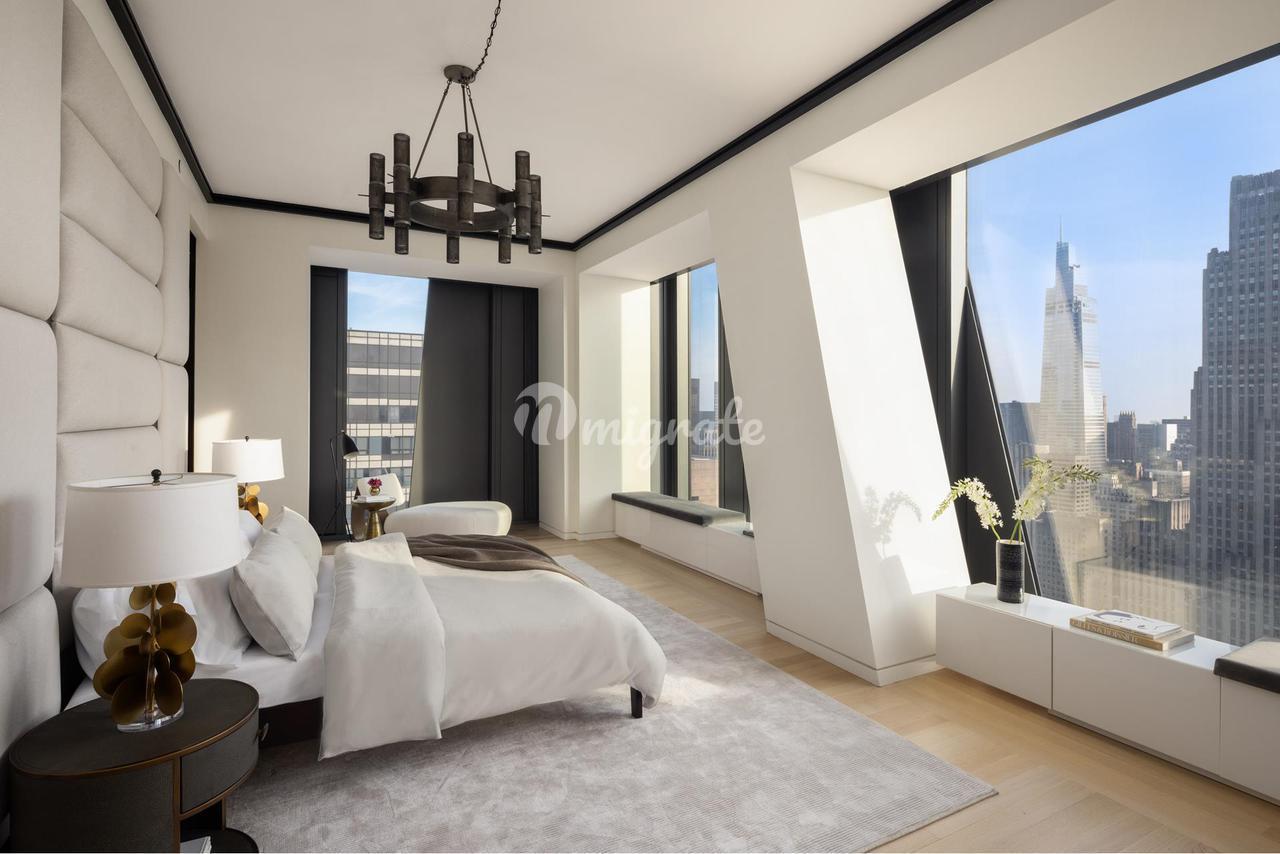 Сочетая грандиозную жизнь с домашним уютом, резиденция 60B по адресу 53 West 53 занимает площадь 3132 квадратных фута и располагает тремя спальнями, тремя с половиной ванными комнатами и окнами на север, юг, восток и запад. Изящные пропорции и потолки высотой примерно 11 футов создают впечатляющую обстановку для мастерски продуманных интерьеров всемирно известного дизайнера Тьерри Деспонта. Детали, выполненные на заказ, обычно характерны для частных домов, в изобилии, в то время как богатая, но мягкая палитра отделки музейного качества придает каждому пространству как современный шик, так и неподвластную времени элегантность.