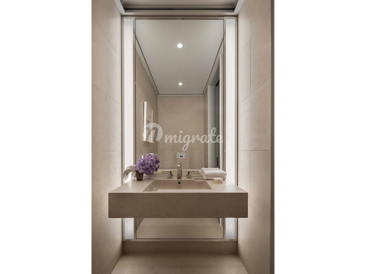 Угловой основной люкс с видом на южную и западную стороны; множеством шкафов, включая одну просторную гардеробную; и просторной ванной комнатой с окном и полом с подогревом. Элегантно отделанная полированным мрамором Noir St. Laurent, высокоточным веронским известняком и полированным персидским золотистым травертином с полированной никелевой сантехникой Dornbracht, основная ванная комната оснащена двумя отдельными резными туалетными столиками с зеркалами из полированного никеля, изготовленными по индивидуальному заказу Тьерри Деспонта, чугунной ванной Lefroy Brooks, отдельно стоящим душем и собственной ванной комнатой с душем без поддона. ватерклозет с комодом и биде. В двух дополнительных спальнях с видом на южную сторону в каждой есть собственная ванная комната, отделанная высококачественным веронским известняком с полированной никелевой сантехникой Dornbracht. Завершает резиденцию прекрасно оборудованная дамская комната с окнами и незаметный подсобный шкаф со стиральной машиной и вентилируемой сушилкой. Ни одна деталь не была упущена из виду: от индивидуального дизайна внутреннего освещения, разработанного Тьерри Деспонтом в сотрудничестве со Schwinghammer, до моторизованных солнечных плафонов Lutron с дополнительными затемняющими шторами в каждой спальне, до подачи увлажненного и отфильтрованного свежего воздуха по всему дому.