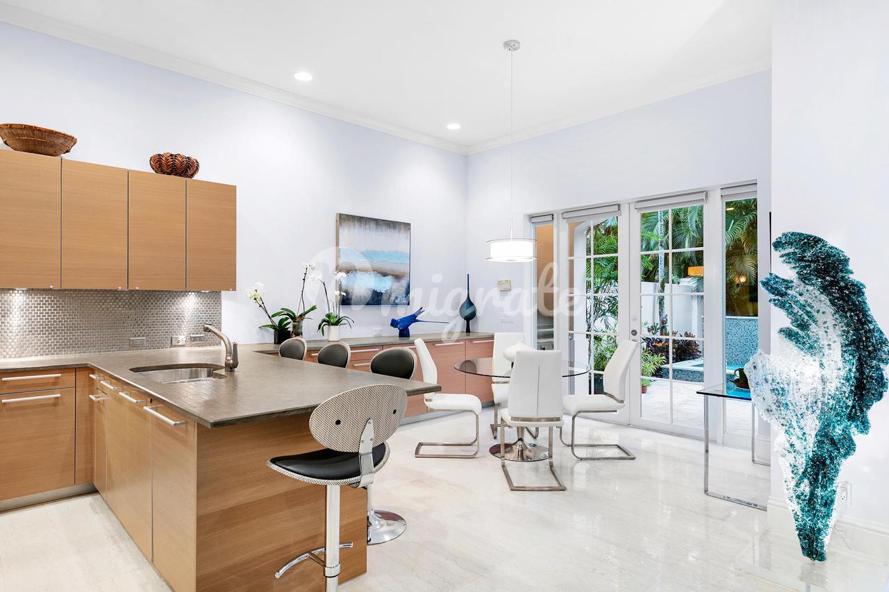 Этот таунхаус в Ист-Делрей-Бич, идеально расположенный в двух кварталах от пляжа и Атлантик-авеню, предлагает простор и уединение дома для одной семьи с удобством проживания в кондоминиуме. Многочисленные жилые и обеденные зоны на первом уровне выходят на два больших внутренних двора, один из которых с пышным ландшафтом, бассейном и спа-салоном. Кухня Poggenpohl оборудована бытовой техникой Wolf и Sub-Zero, а столешница рассчитана на четверых. Гибкая планировка включает в себя пять спален, одну на втором этаже и четыре спальни с ванными комнатами наверху. Центральный открытый чердак отделяет главную спальню от других спален наверху; конфигурация, идеально подходящая для удаленных работников, гостей и развлекательных мероприятий. За двойными дверями находится просторный основной люкс, который включает в себя отдельные хорошо оборудованные ванные комнаты, одна с джакузи; две гардеробные;