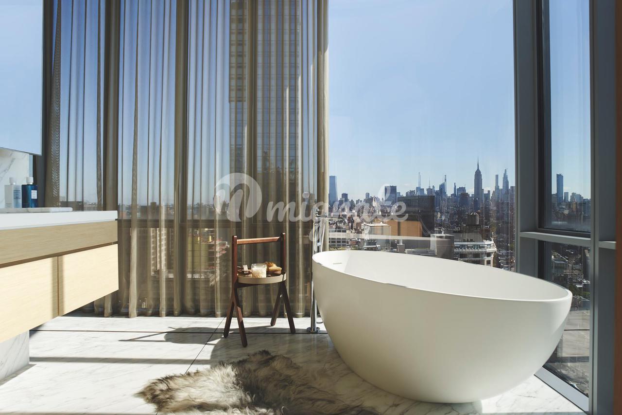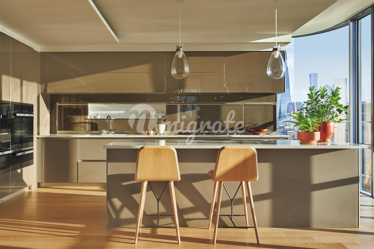Эта единственная в своем роде полноэтажная резиденция площадью 4682 кв.м с потолками высотой 10 футов и полами из белого дуба шириной 6 дюймов располагает 4 спальнями, 5 ванными комнатами и дамской комнатой. Доступ на лифте с ключом и пропорциональное фойе, идеально подходящее для демонстрации произведений искусства, ведут в просторное 40-футовое помещение, исключительно предназначенное как для развлечений, так и для повседневной жизни. Большая угловая комната из стекла от пола до потолка, обеспечивающая обилие естественного света и захватывающий вид на реку Гудзон с запада и юга, демонстрирующий Всемирный торговый центр One. Непосредственно рядом с большой комнатой находится библиотека с окнами, которая может быть закрыта карманными дверями.