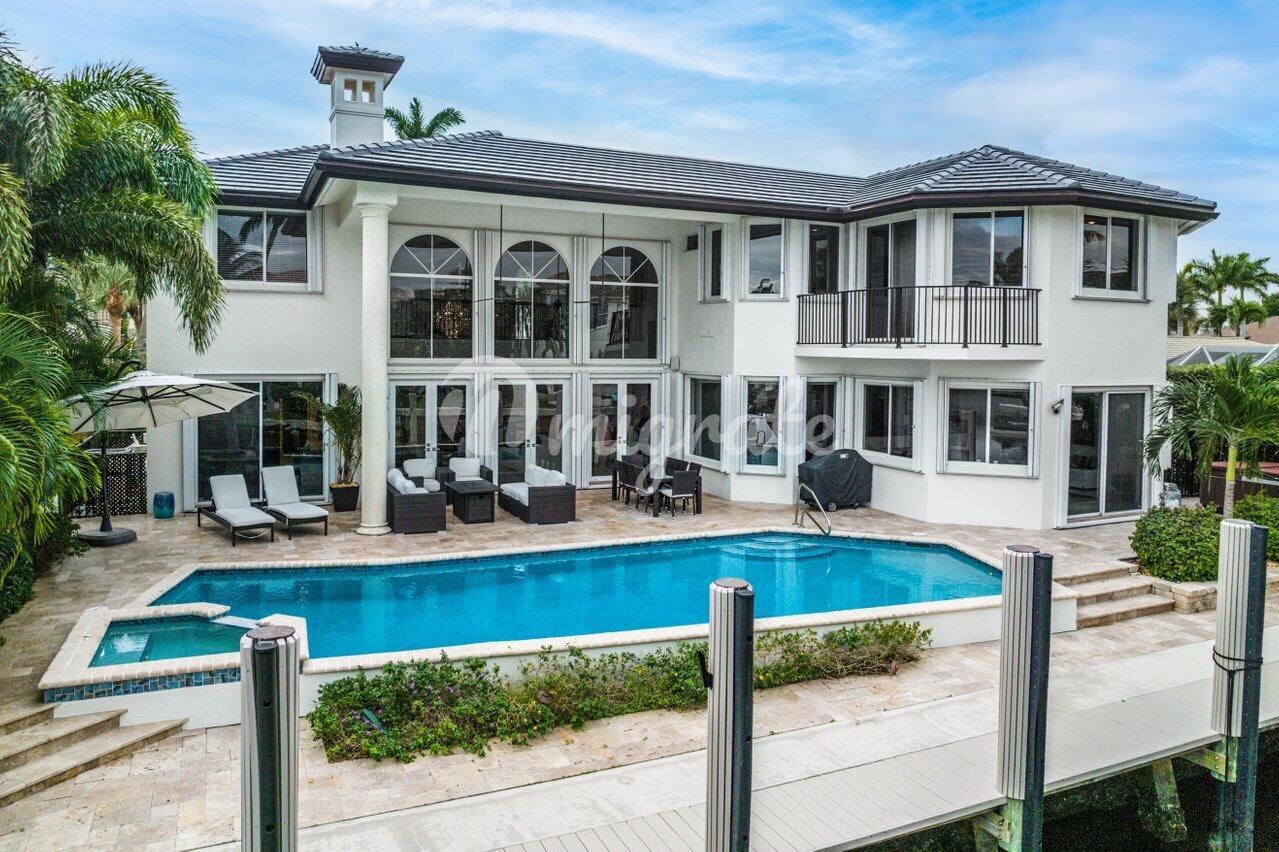 Впечатляющее поместье на набережной, расположенное на одном из самых желанных участков Золотой гавани, с потрясающим видом на воду из всех основных жилых помещений и 85-футовой глубиной воды для мега-яхты !! С 5 спальнями, офисом, лифтом, новой крышей, генератором полного дома и гаражом на 3 машины! Основной этаж представляет собой идеальное пространство для развлечений с официальной гостиной, столовой, кухней, открытой для семейной комнаты, офисом на берегу, гостевым люксом и дополнительной спальней для персонала. The Outside может похвастаться частным бассейном в курортном стиле с невероятным видом на воду и просторным крытым патио. На 2-м этаже находится кинотеатр, 3 дополнительных спальных люкса, в том числе роскошный основной люкс с отдельными ванными комнатами и гардеробными! ОТЛИЧНОЕ ПРЕДЛОЖЕНИЕ в самом популярном районе Бока!