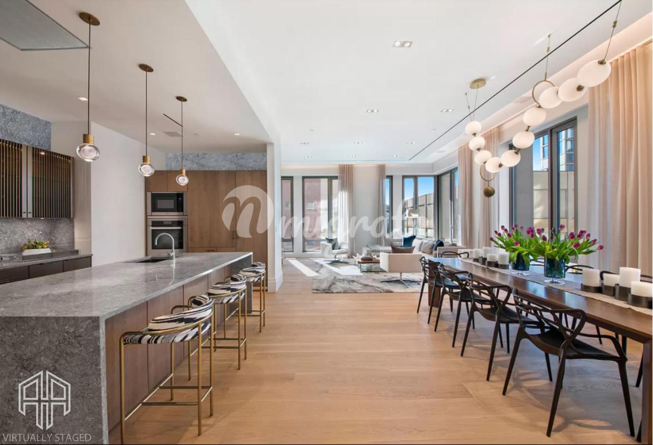 Эта безупречная угловая резиденция на половине этажа с тремя спальнями и тремя с половиной ванными комнатами сочетает в себе современный и современный роскошный дизайн на обширной площади в 2892 кв. фута, захватывая солнечный юг, запад и восток на типичных мощеных улицах Леруа на западе. Деревня. Исключительные особенности Residence 5W включают в себя полный пакет освещения, разработанный дизайнерской студией Дэвида Клинарда, систему управления освещением и шторами Lutron, полы из белого дуба шириной 7 дюймов и полностью вентилируемые стиральные и сушильные машины Double LG. Полы, стены и окна были спроектированы с учетом акустики, чтобы создать рай для тишины и покоя. Когда вы входите, вас приветствует формальная входная галерея с красиво оформленными полами из белого дуба в елочку. Мастерски спроектированный открытый угловой большой зал плавно перетекает в кухню шеф-повара SieMatic, изготовленную по индивидуальному заказу, с коллекцией PURE из золотисто-бронзовых металлических и стеклянных шкафов, выбранных для дополнения уникальной архитектурной эстетики комплекса. Остров-водопад из кварцита, столешница и фартук включают в себя полностью интегрированные бытовые приборы, такие как 36-дюймовая варочная панель Gaggeneau, две духовки Miele, а также специальные встроенные микроволновые печи, винный холодильник Sub-Zero, 36-дюймовый холодильник Sub-Zero, вытяжка с индивидуальной вентиляцией, две посудомоечные машины, и две раковины Whitehaus под креплением. Изящная главная спальня имеет собственный балкон с видом на безмятежный сад, большую гардеробную и элегантную ванную комнату с пятью светильниками, выполненную по индивидуальному заказу. Главная ванная комната облицована полированным мрамором Ariston и включает в себя изготовленный на заказ лакированный туалетный столик, паровой душ, полированные хромированные двойные дождевые насадки Vola, ручной душ, большую ванну для купания и сияющие полы. Две дополнительные спальни очень просторны и включают в себя ванные комнаты, отделанные полированным мрамором Ariston, с блестящими полами. Фирменная туалетная комната с изготовленным на заказ туалетным столиком с полированной никелевой фурнитурой Vola, прихожая и полностью вентилируемая прачечная дополняют эту полуэтажную резиденцию.