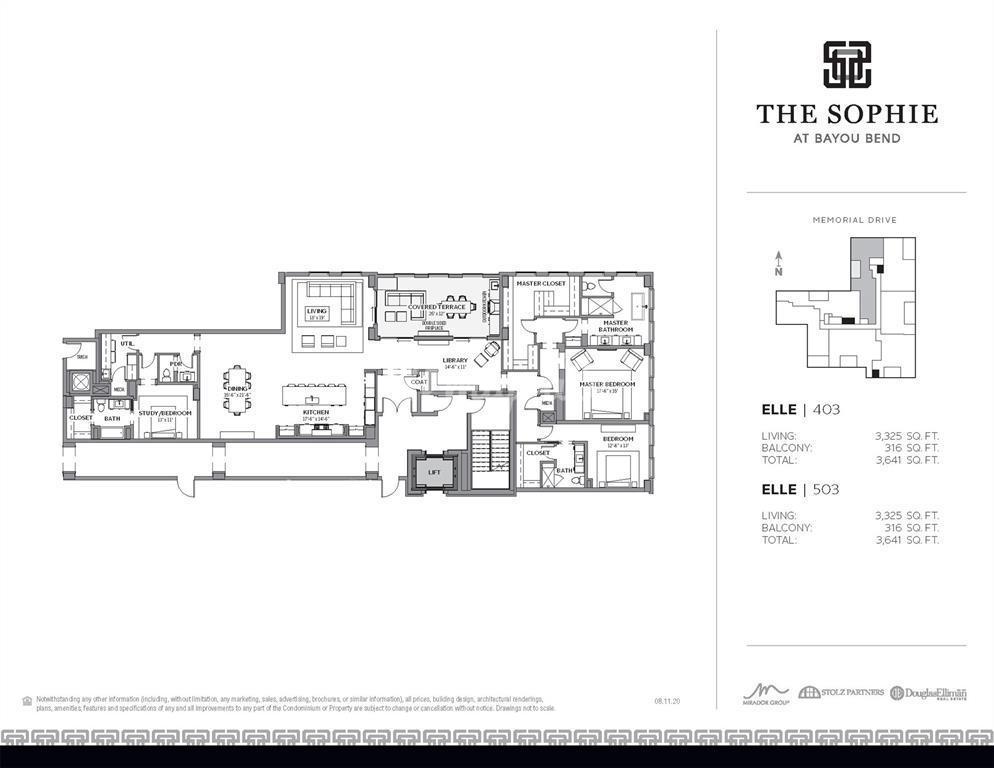 Планировка Elle, расположенная на 4-м этаже, приветствует вас французскими дверями и большим фойе. С этой планировки открывается прекрасный вид на Мемориальный парк площадью 3321 кв. м с террасой площадью 313 кв. м. В этом просторном доме есть жилая площадь, которая ведет на террасу с летней кухней, камином и площадкой для домашних животных. С террасы также открывается вид на круглый фонтан и красивые деревья по соседству. Основная ванная комната включает в себя кофейную стойку, два туалетных столика и большую гардеробную. Квартира включает в себя открытое гибкое пространство, 2 выделенных парковочных места и складское помещение с климат-контролем. В отеле Sophie есть круглосуточная стойка регистрации, фитнес-центр, плавательный бассейн, гидромассажная ванна, тренажерный зал и парк для домашних животных. Действительно, это нужно обязательно увидеть!
