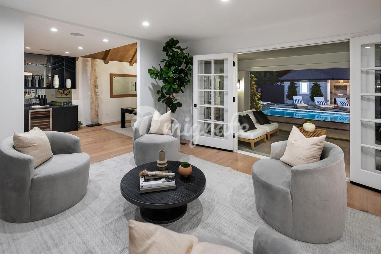 Недавно отремонтированный и "под ключ", современный дом, расположенный на знаменитой Элм Драйв в очень желанном районе Беверли-Хиллз Флэтс. Главная улица, главный квартал. Этот дом не оставляет желать лучшего и идеально подходит для семей и тех, кто хочет развлечься. Широкие паркетные полы из белого дуба приветствуют вас, когда вы входите в поместье. Кухня шеф-повара с изготовленной на заказ мебелью, новой бытовой техникой и большим островом с барной стойкой ведет в большую семейную комнату и столовую с прекрасным естественным освещением. Все это приводит к обширному, недавно засаженному, МАССИВНОМУ фасаду и заднему двору. Это открытое пространство с большим бассейном, спа-салоном, барбекю и печью для пиццы идеально подходит для развлечений. Всего 6 спален - Продолжайте подниматься наверх, чтобы найти 4 большие спальни, включая основную спальню с просторными двойными ванными комнатами и гардеробными. Гостевой дом оснащен мини-кухней, спальней и полностью оборудованной ванной комнатой. Дополнительное помещение для прислуги на первом этаже обеспечивает простую и практичную жизнь. В собственность также входит домик у бассейна с полностью оборудованной ванной комнатой. Прачечная на верхнем этаже, отдельно стоящий гараж на 2 машины, новая крыша, электрика, сантехника и система кондиционирования - все это часть этого более чем 2-летнего ремонта.