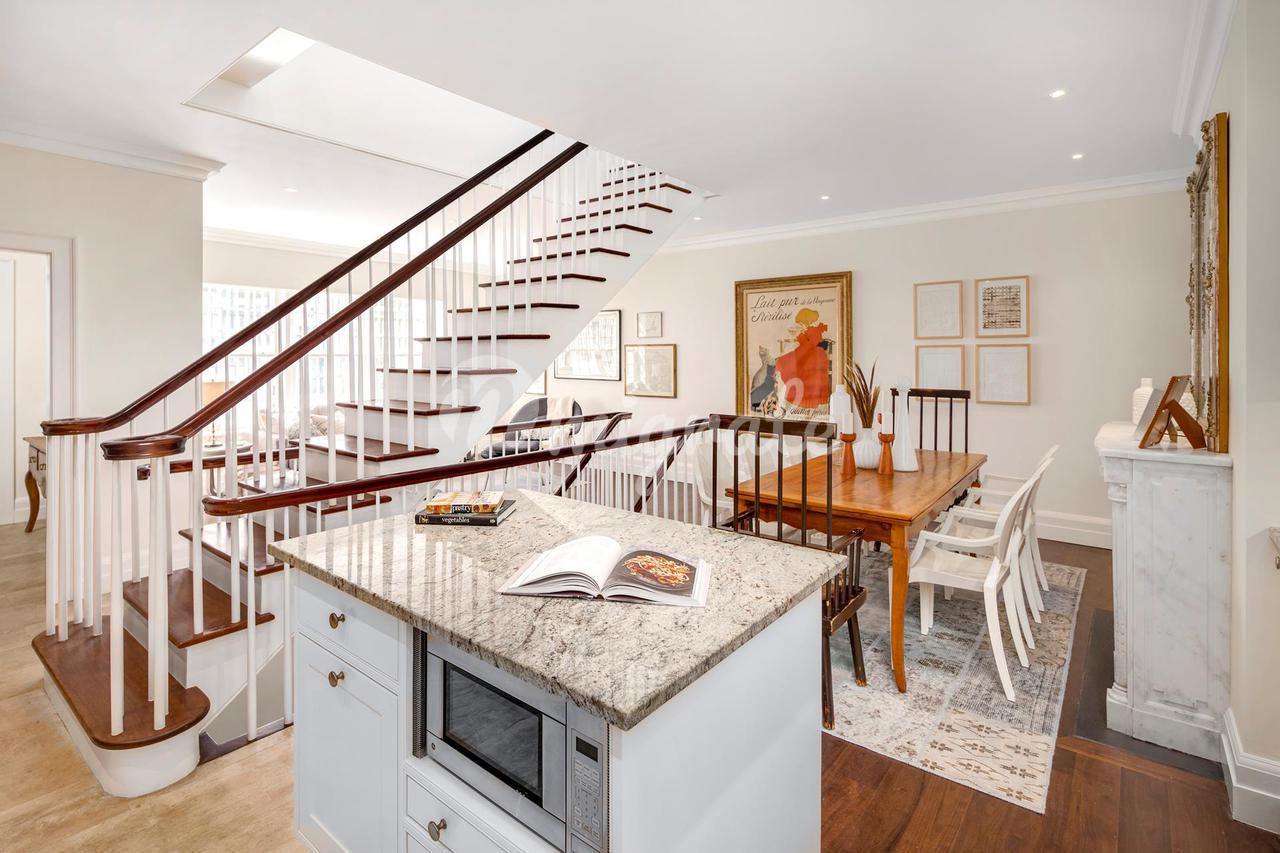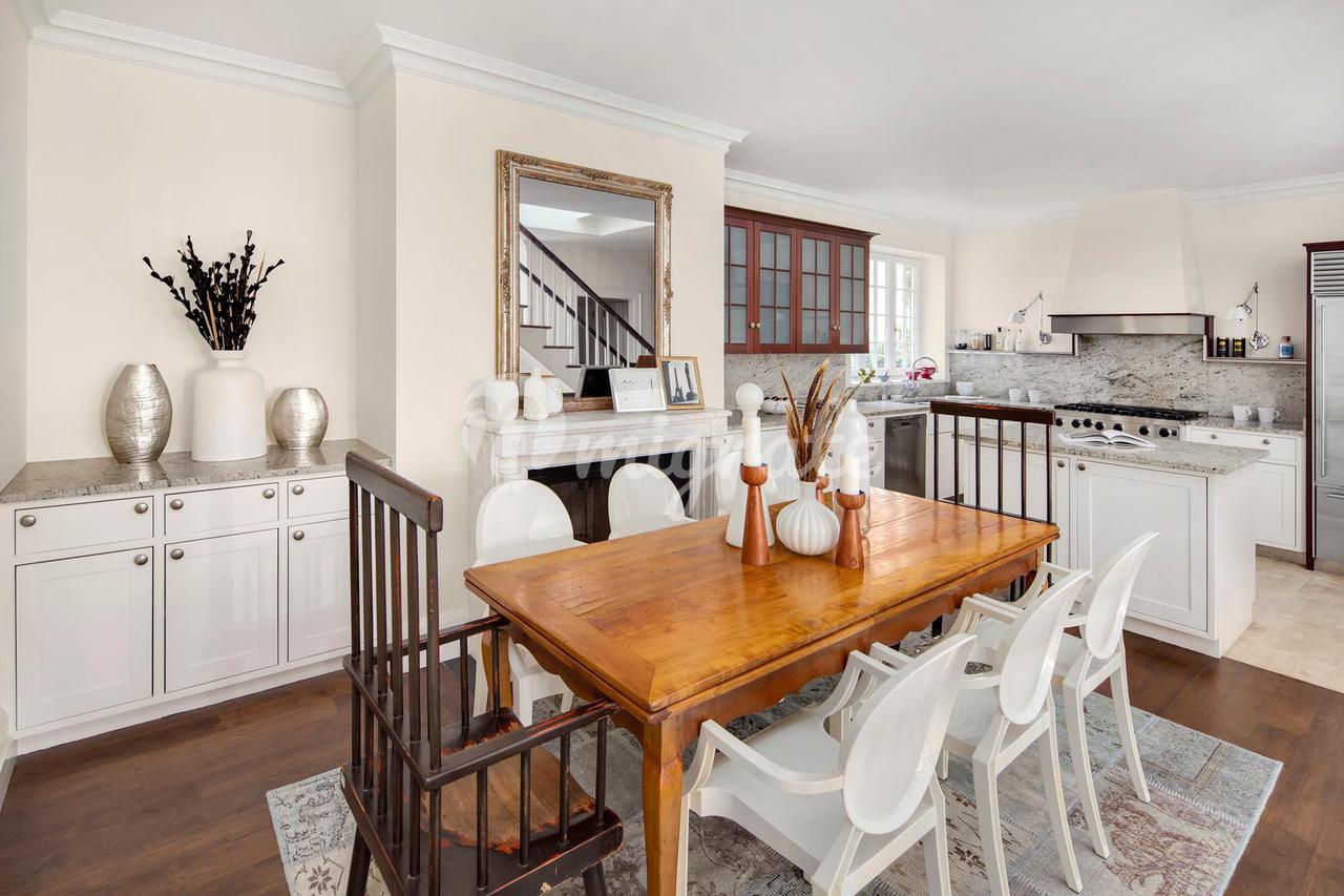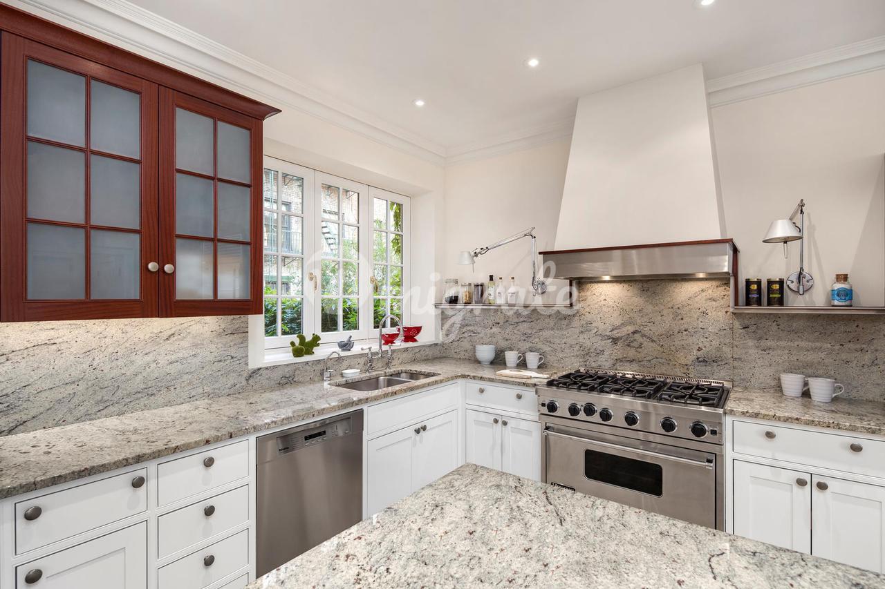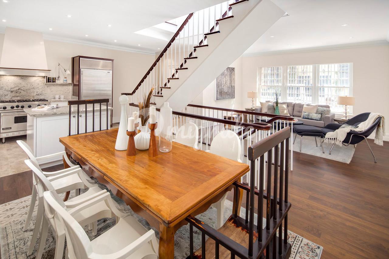 Войдите через формальное фойе, окруженное двумя наборами глубоких шкафов, которое ведет к обширной открытой кухне, столовой и гостиной. Высококлассная кухня оснащена холодильником Sub-Zero, плитой Viking с шестью конфорками, посудомоечной машиной Miele и центральным островом со встроенной микроволновой печью, обеспечивающим дополнительную рабочую поверхность и место для хранения. Над двойной раковиной расположено множество створчатых окон, которые выходят в тихий двор. Обеденное пространство сосредоточено на великолепном газовом камине из французского мрамора, а соседняя гостиная залита светом из трех больших окон, выходящих на юг.