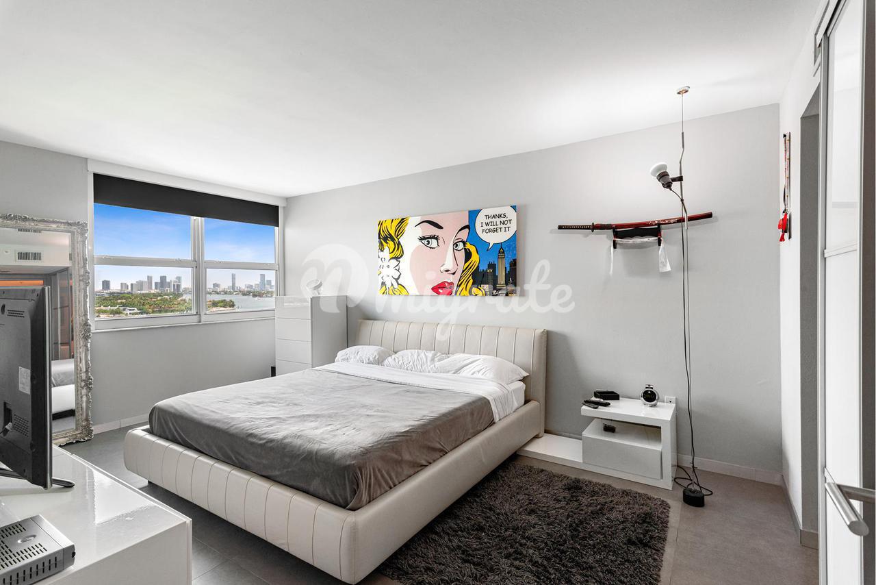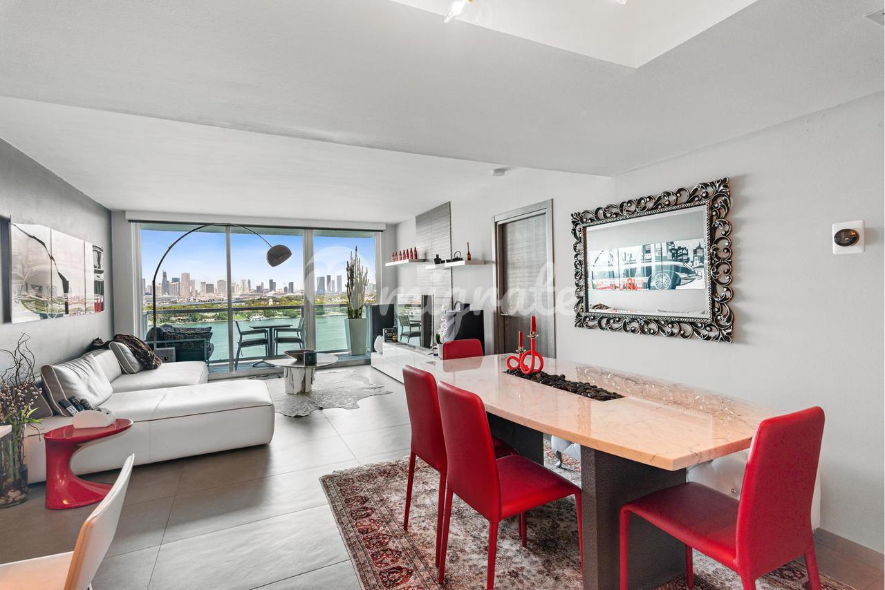 Роскошная центральная квартира во Флоридиане. Потрясающий вид на остров Старт, залив Бискейн и центр города.Высококачественная отделка. Итальянская керамическая плитка от Cesar Ceramiche. Кухня L-образной формы, покрытая глянцевым лаком от Veneta Cucine. Выключатели и диммеры Legrand. Двери европейца. Холодильник LG. Кухонные принадлежности.Квартира доступна без мебели, но владелец принимает предложение о покупке квартиры полностью меблированной.