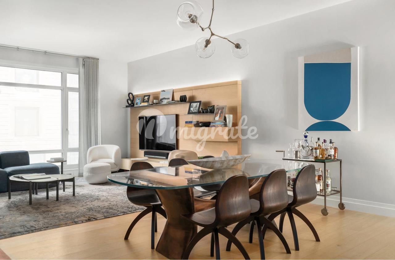 Добро пожаловать домой, в резиденцию 5F по адресу 70 Vestry, бесспорно, главный адрес Tribeca. Спроектированная знаменитым архитектором Робертом А. М. Штерном, эта уютная коллекция, состоящая всего из 46 величественных домов, расположена в сверкающем фасаде из французского известняка, подчеркнутом огромными створчатыми окнами и рустованными металлическими конструкциями, и все это расположено вокруг закрытого портала и частного входа во внутренний двор. Теплый и уютный дом с 3 спальнями и 3,5 ванными комнатами, спроектированный архитектором AD100 Даниэлем Ромуальдесом, начинается с входной галереи, ведущей в гостиную впечатляющих размеров с потолками более 10 футов и широкими дощатыми дубовыми полами ручной распиловки. Южная экспозиция пропускает свет, отбрасываемый на тихие мощеные улочки и знаменитую архитектуру Трайбека на Вестри-стрит. Кухня-столовая с окнами отделана по последнему слову техники на заказ - от изысканной мебели ручной работы до островка с водопадом, облицованного мрамором с тонкими прожилками. Бытовая техника от Sub-Zero и Miele, включая две посудомоечные машины и плиту с шестью конфорками и наполнителем для кастрюль. Просторная главная спальня располагает гостиной зоной и 2 индивидуальными гардеробными. Успокаивающая ванная комната хозяина с двойным туалетным столиком и отдельным туалетом представляет собой свежую интерпретацию классических материалов, таких как мрамор, бронза и рифленое стекло. В обеих дополнительных спальнях есть собственные ванные комнаты. Дамская комната, отделанная травертином, для гостей. Контроль климата и влажности с тройной фильтрацией. Двойная стиральная машина / сушилка. 70 Vestry предлагает непревзойденный пакет оздоровительных услуг, включая 82-футовый бассейн, гидромассажную ванну с холодной водой, фитнес-центр со студиями йоги и пилатеса, а также корт для игры в сквош стандартного размера. Дополнительные помещения включают впечатляющую столовую, бильярдную, гостиную и детскую игровую комнату. Безопасность как в закрытом внутреннем дворе, так и с помощью круглосуточного консьержа имеет первостепенное значение. И все это вместе с чудесами и волшебством Трайбеки, реки Гудзон и акров прибрежных парков у вашего порога. Самое захватывающее предложение в знаковом месте.