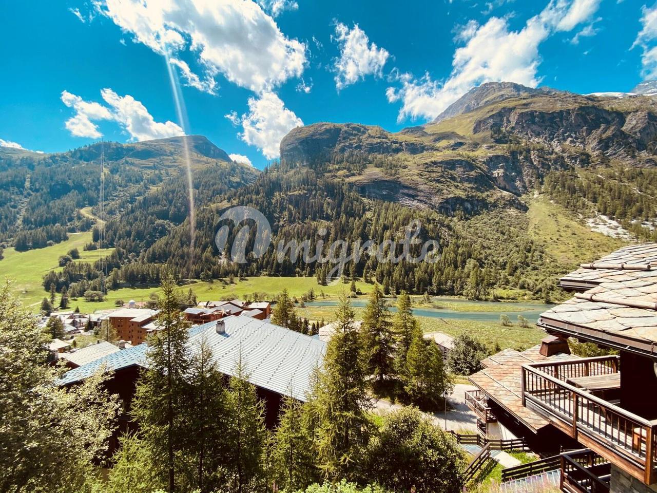 Квартиры, каждая из которых состоит из 5 спален с ванными комнатами, организованы почти одинаково на 4 уровнях. Из гостиной с выходом на балкон открывается великолепный вид на деревню, а также на Валлон-де-ла-Саш, один из самых красивых горнолыжных склонов в районе Валь-д'Изер-Тинь. Джакузи завершает это свойство.