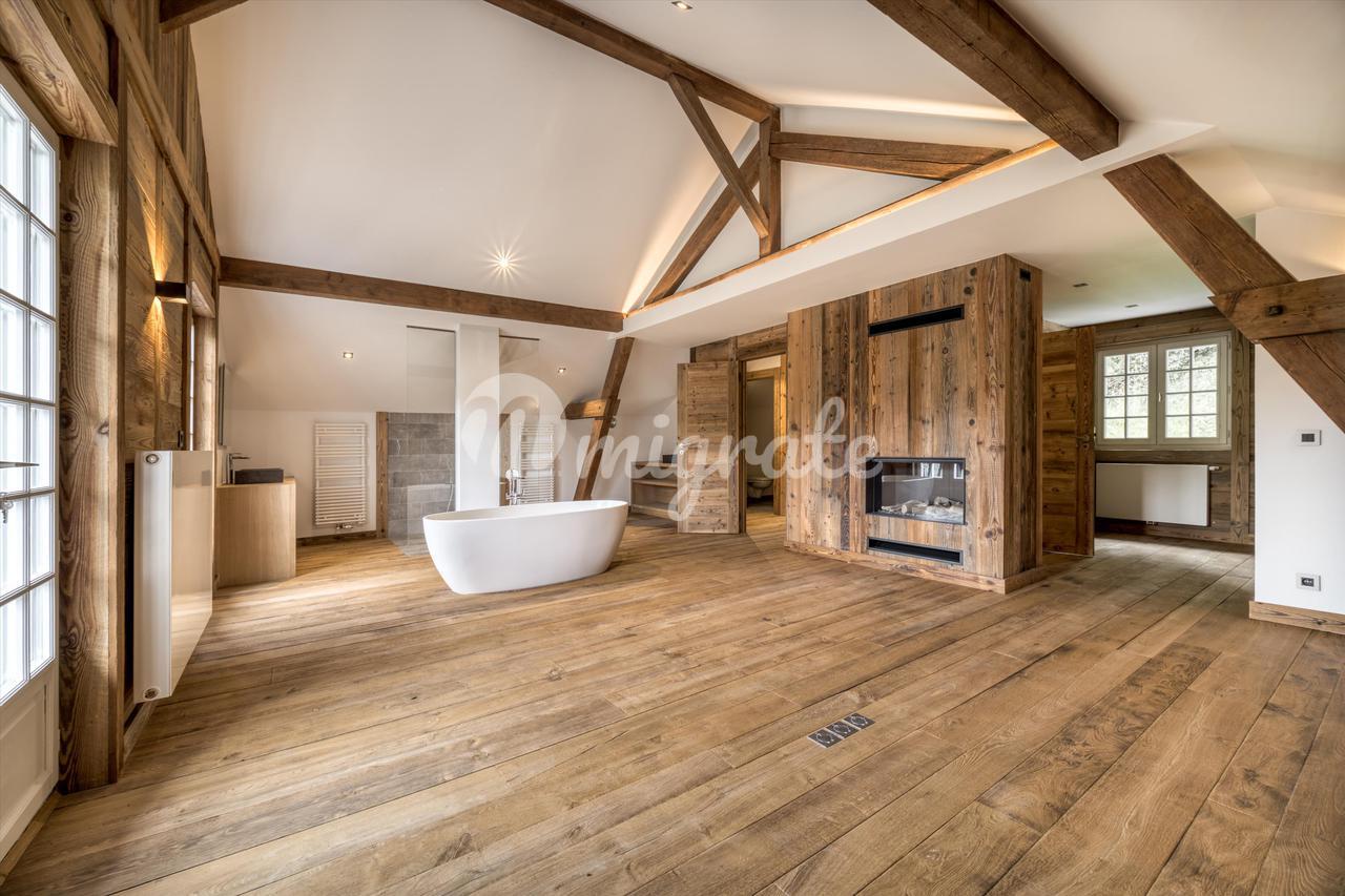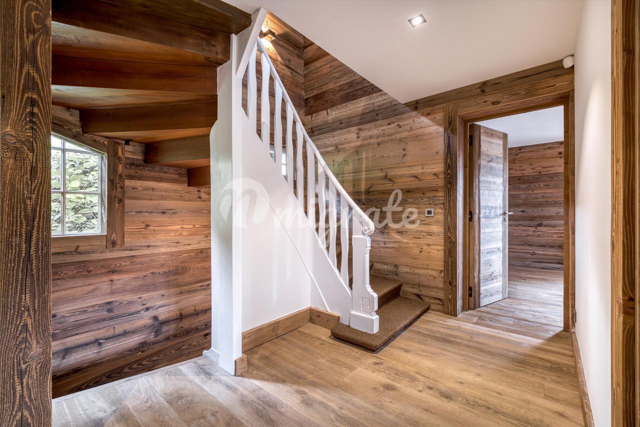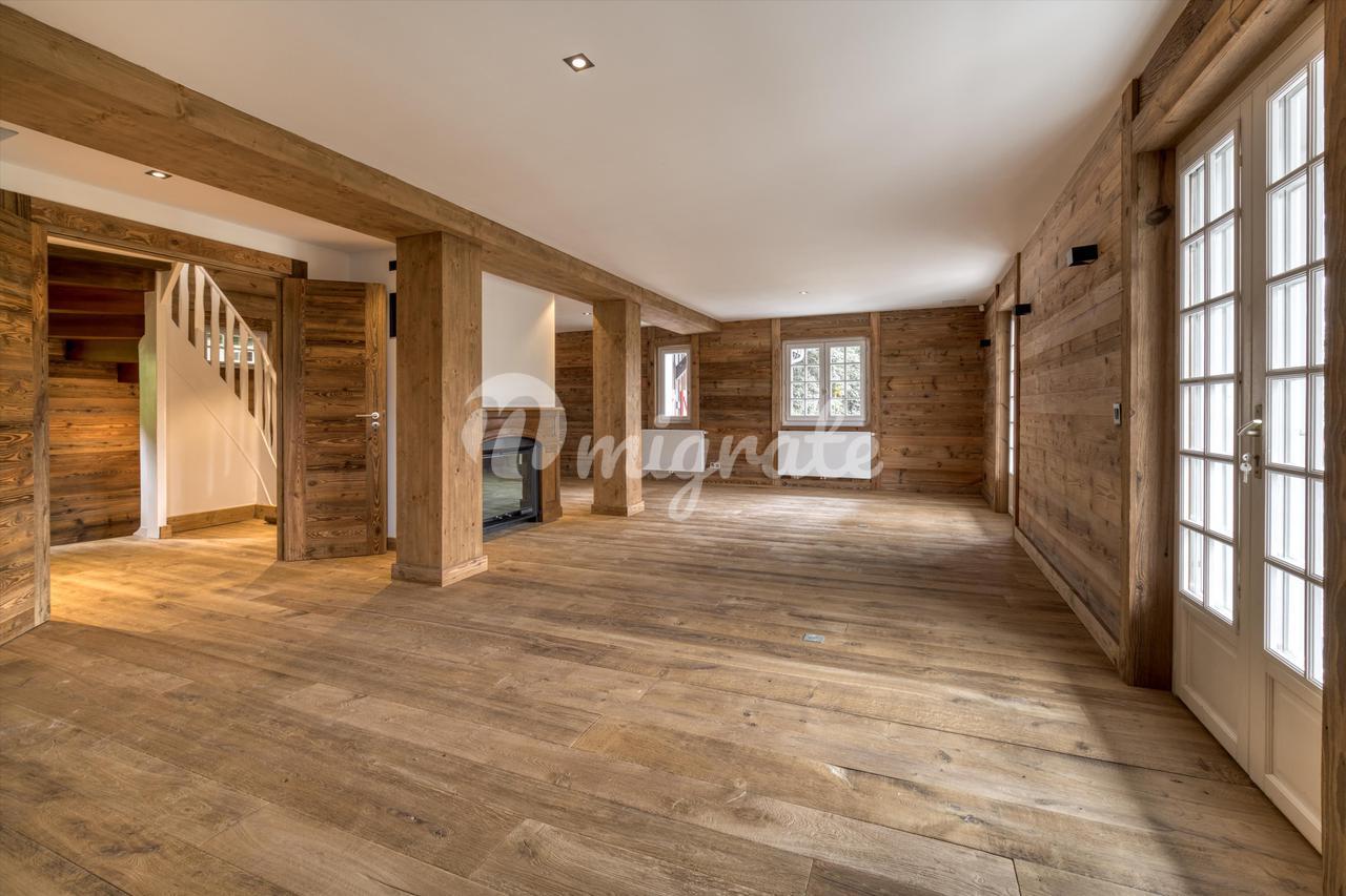 Недвижимость включает в себя L-образную гостиную с камином, открытую оборудованную кухню, две небольшие гостиные, террасу, балконы, шесть спален, семь ванных комнат, семь туалетов и три гаража.