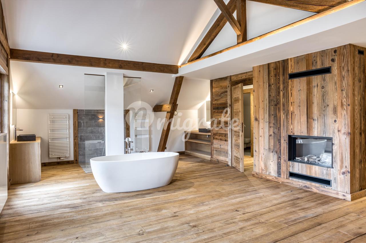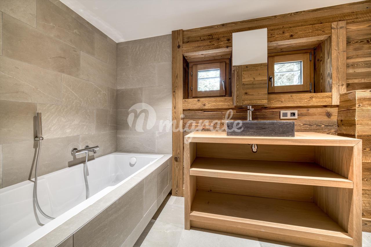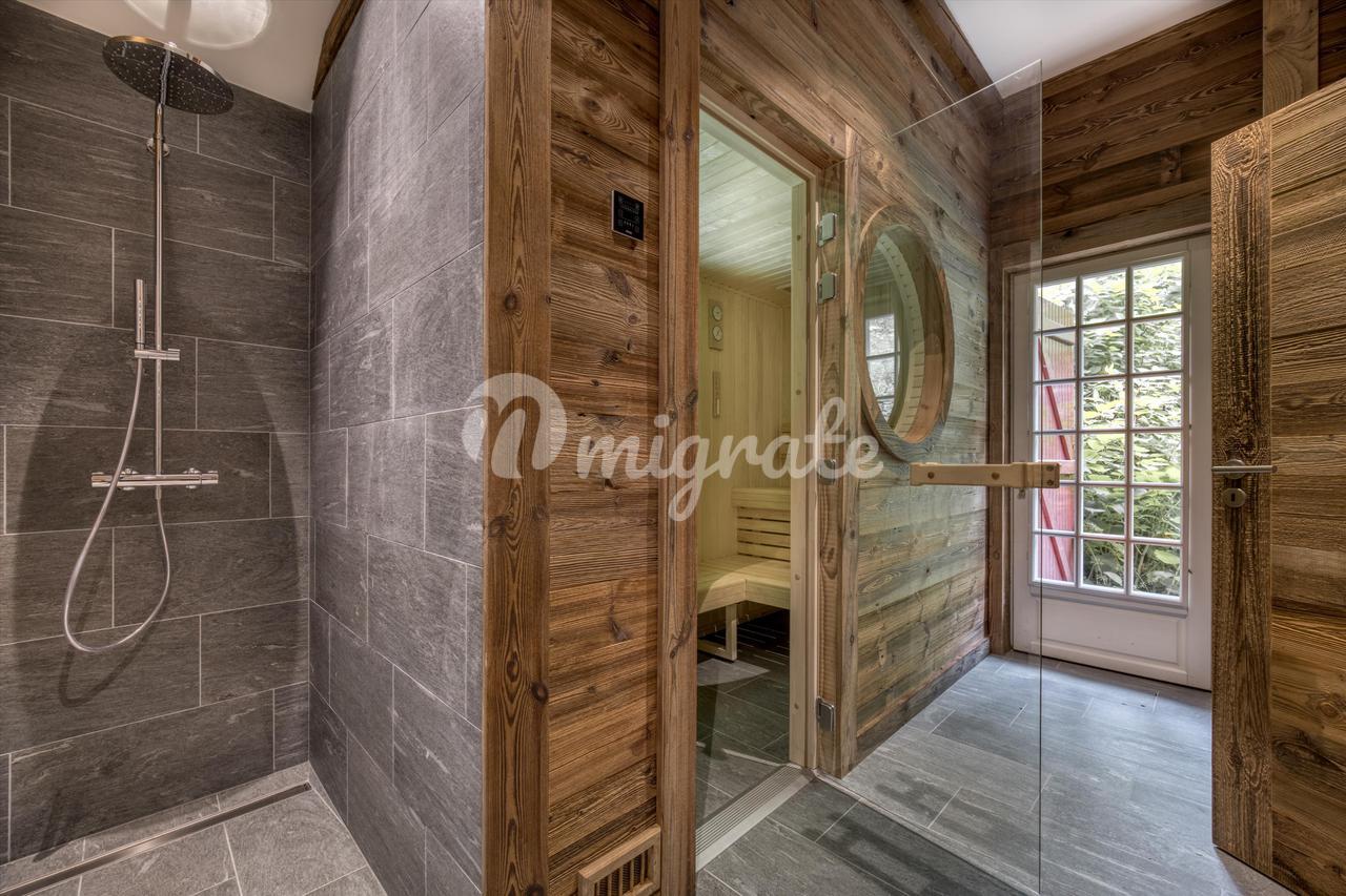 Недвижимость включает в себя L-образную гостиную с камином, открытую оборудованную кухню, две небольшие гостиные, террасу, балконы, шесть спален, семь ванных комнат, семь туалетов и три гаража.