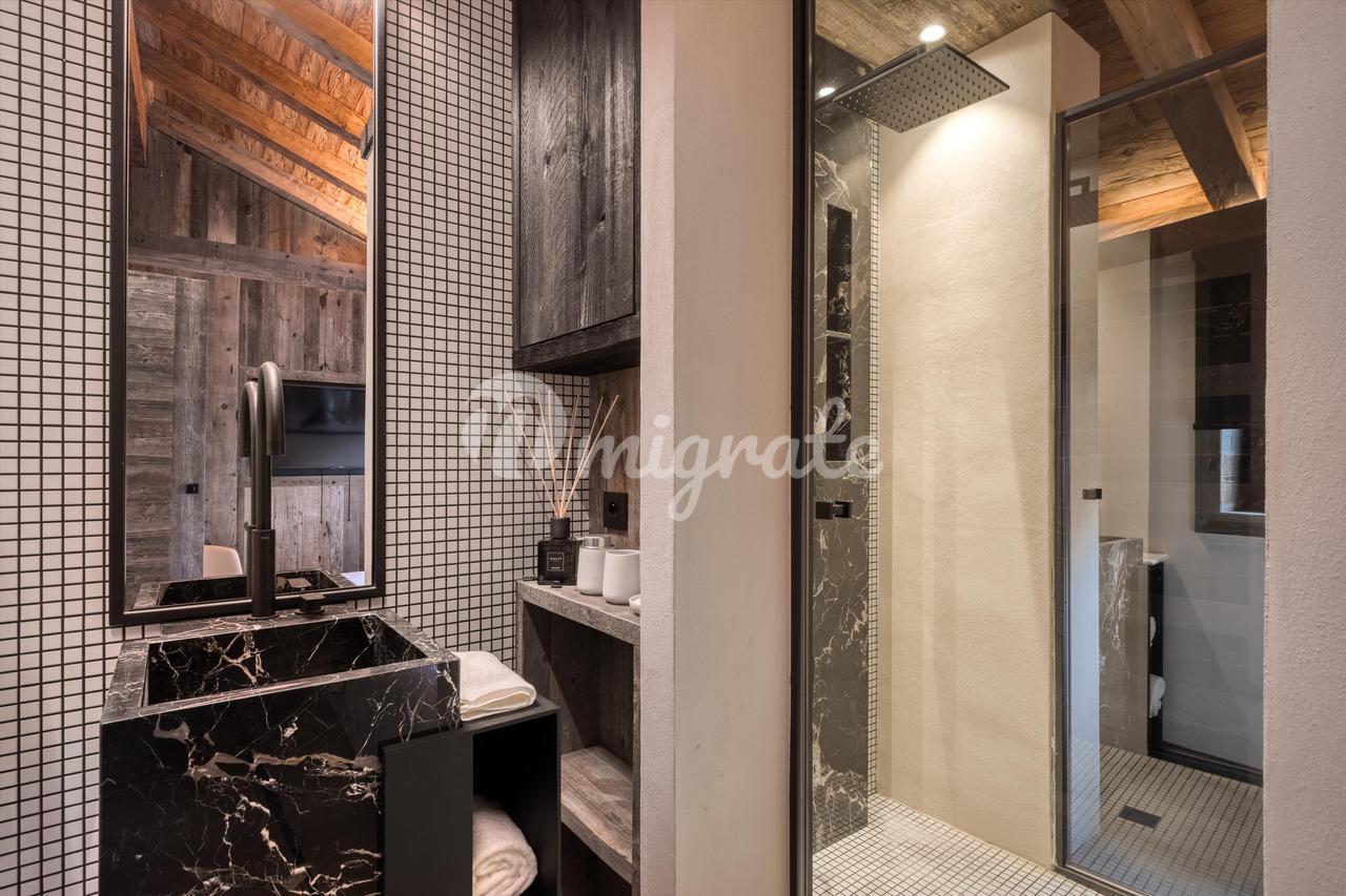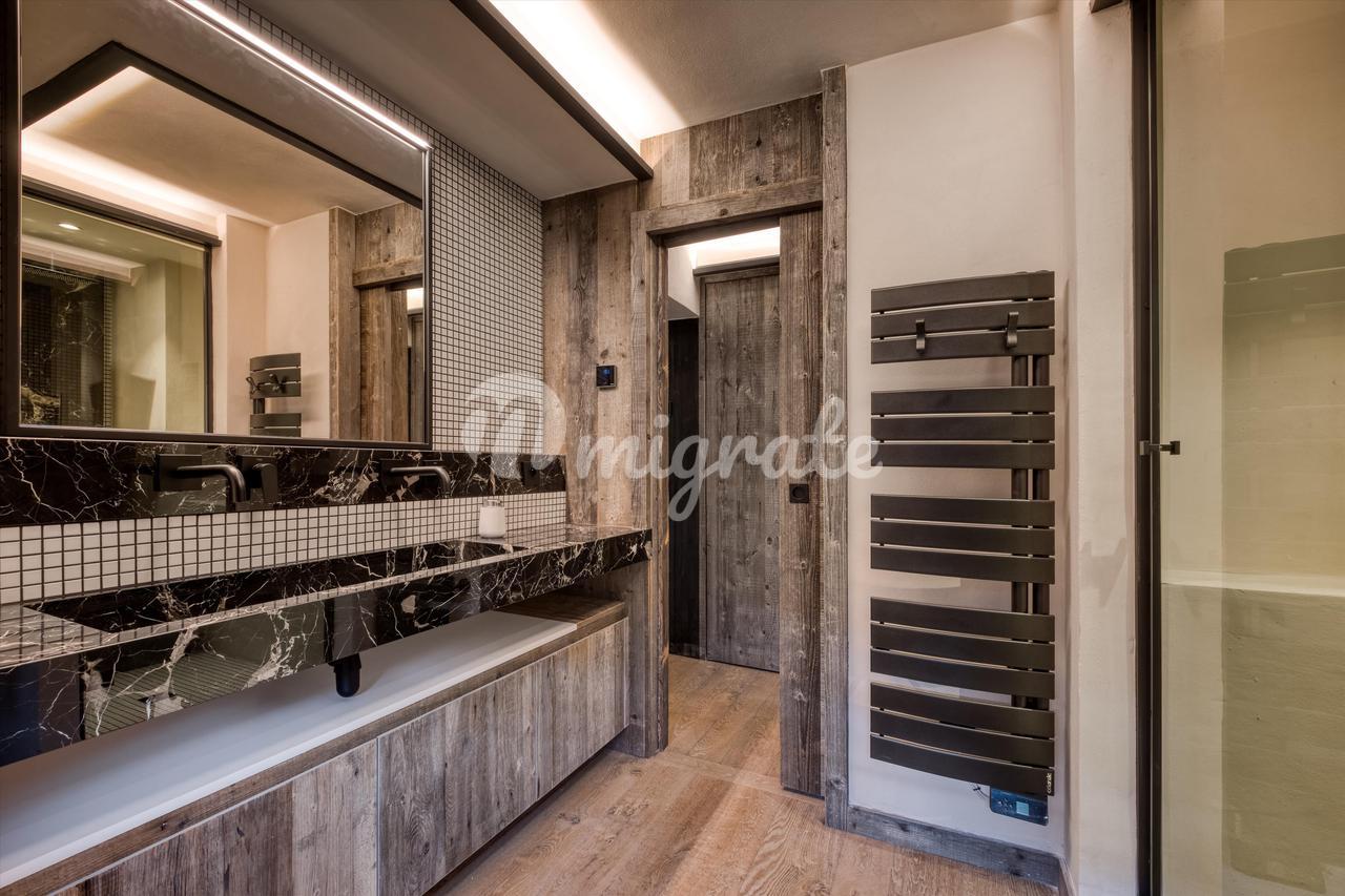 Эти апартаменты расположены на первом этаже и состоят из прихожей, гостевого туалета, гостиной зоны и открытой оборудованной кухни. В доме есть 3 спальни, все с собственными ванными комнатами. Квартира продается с помещением для хранения лыж, крытым парковочным местом и садом площадью 111 кв.м.