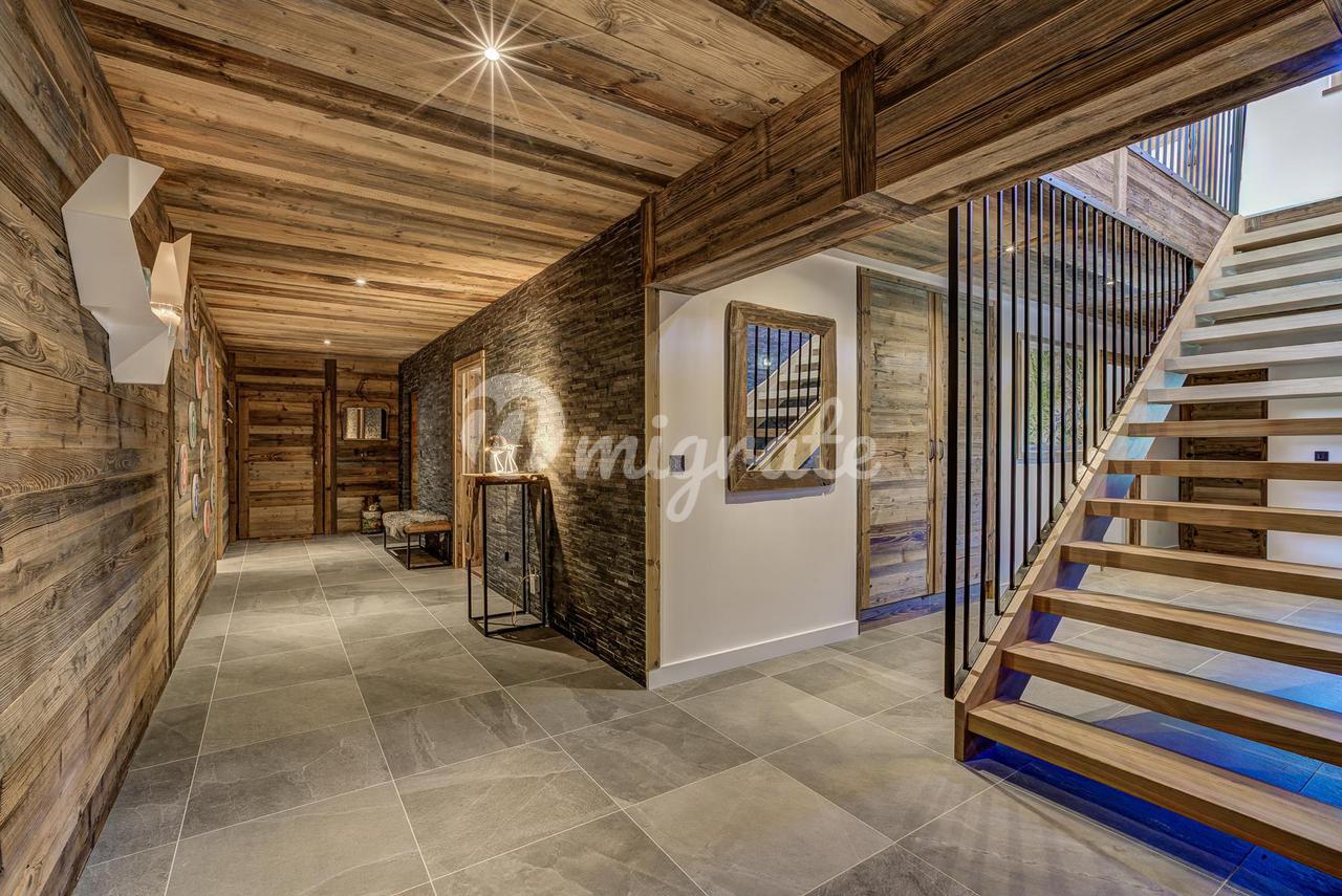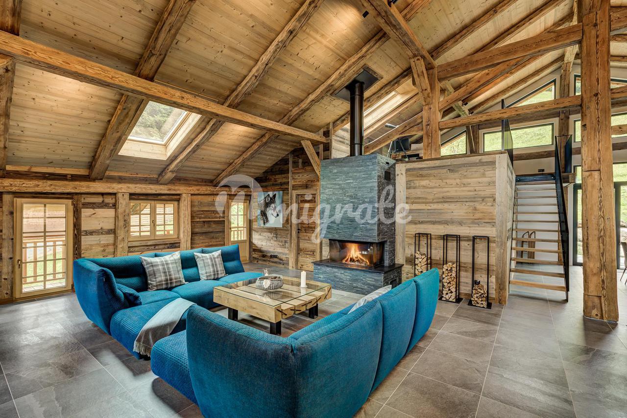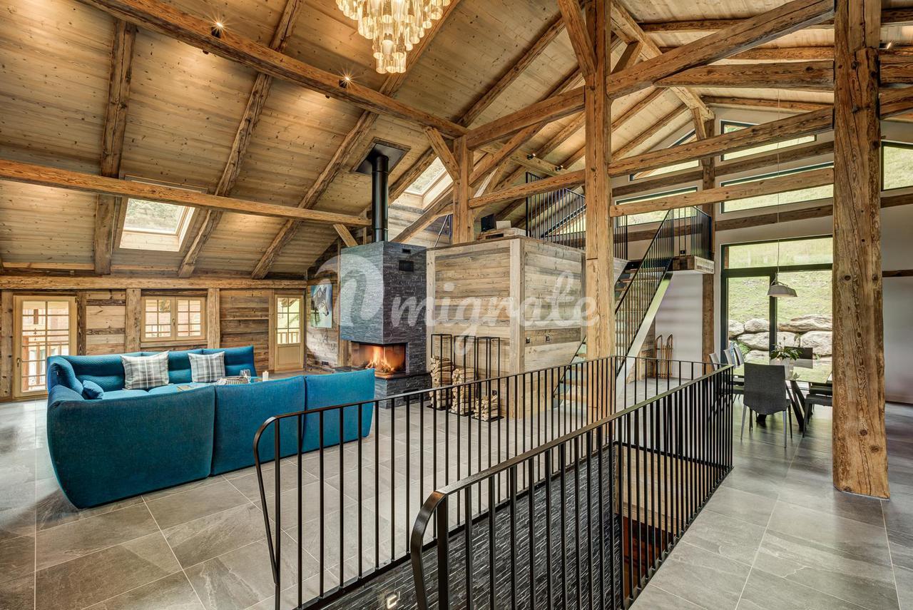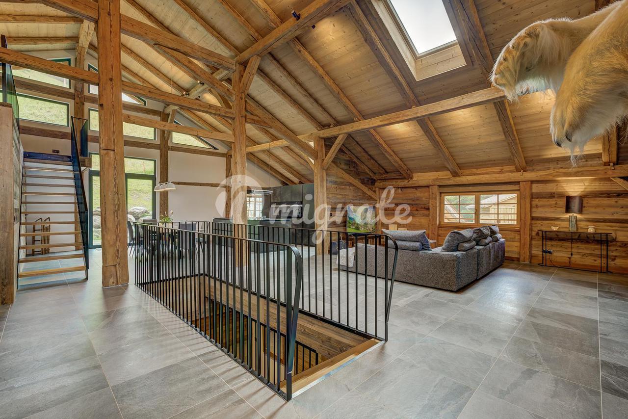 В шале есть главная гостиная на первом этаже с огромной открытой планировкой площадью 166 м², включающая современную кухню, открытый камин и выделенную гостиную, столовую, ТВ и бар. На этом этаже также есть главная спальня с ванной комнатой и офисная зона в мезонине наверху. На первом этаже есть четыре большие спальни с ванными комнатами, кинозал, спа-центр с сауной, отдельная комната для ботинок и лыж, а также доступ к гаражу. - Красиво отделанное шале с 5 спальнями на южном склоне холма Сен-Жерве - Современный дизайн открытой планировки с огромным объемом - Недавно отремонтированный бывший фермерский дом с использованием качественных материалов. - Тихое место с великолепным открытым видом - Сауна, спа-центр и кинозал