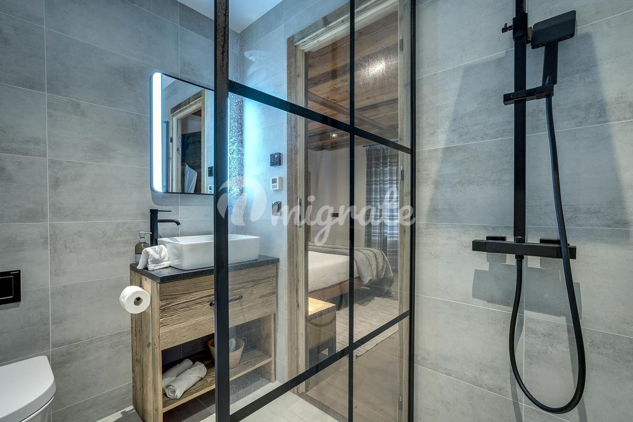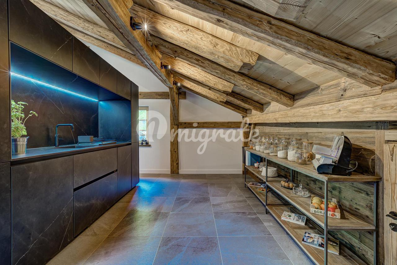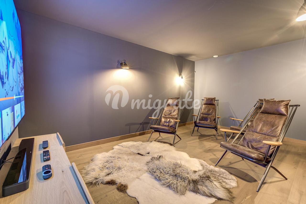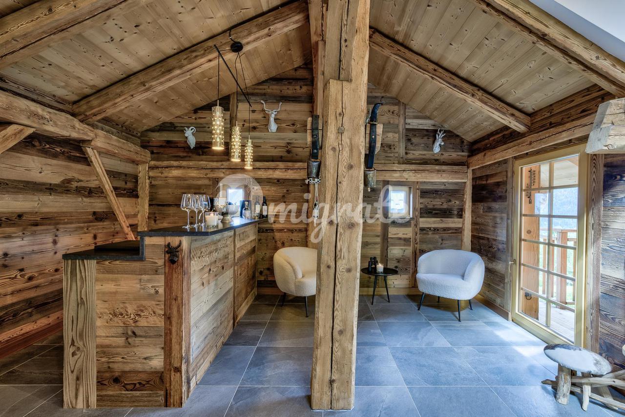 В шале есть главная гостиная на первом этаже с огромной открытой планировкой площадью 166 м², включающая современную кухню, открытый камин и выделенную гостиную, столовую, ТВ и бар. На этом этаже также есть главная спальня с ванной комнатой и офисная зона в мезонине наверху. На первом этаже есть четыре большие спальни с ванными комнатами, кинозал, спа-центр с сауной, отдельная комната для ботинок и лыж, а также доступ к гаражу. - Красиво отделанное шале с 5 спальнями на южном склоне холма Сен-Жерве - Современный дизайн открытой планировки с огромным объемом - Недавно отремонтированный бывший фермерский дом с использованием качественных материалов. - Тихое место с великолепным открытым видом - Сауна, спа-центр и кинозал