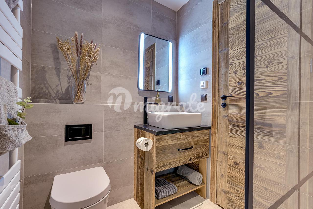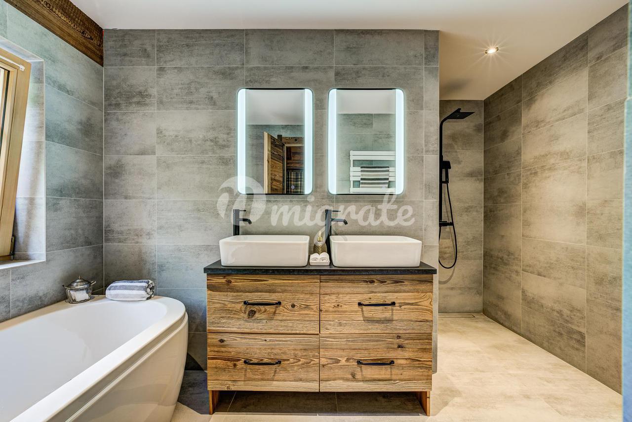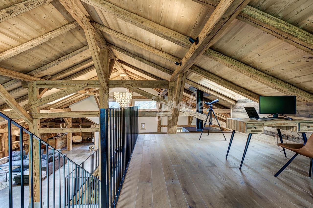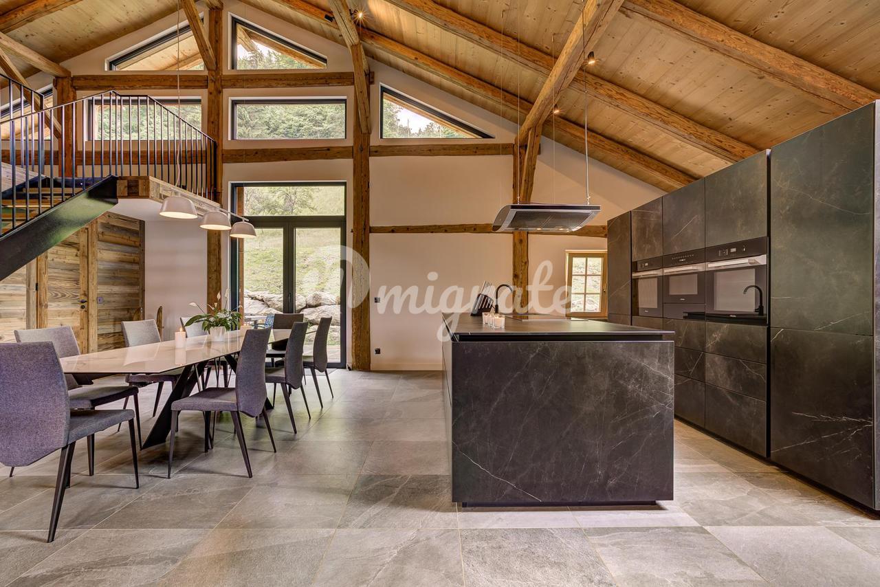 В шале есть главная гостиная на первом этаже с огромной открытой планировкой площадью 166 м², включающая современную кухню, открытый камин и выделенную гостиную, столовую, ТВ и бар. На этом этаже также есть главная спальня с ванной комнатой и офисная зона в мезонине наверху. На первом этаже есть четыре большие спальни с ванными комнатами, кинозал, спа-центр с сауной, отдельная комната для ботинок и лыж, а также доступ к гаражу. - Красиво отделанное шале с 5 спальнями на южном склоне холма Сен-Жерве - Современный дизайн открытой планировки с огромным объемом - Недавно отремонтированный бывший фермерский дом с использованием качественных материалов. - Тихое место с великолепным открытым видом - Сауна, спа-центр и кинозал