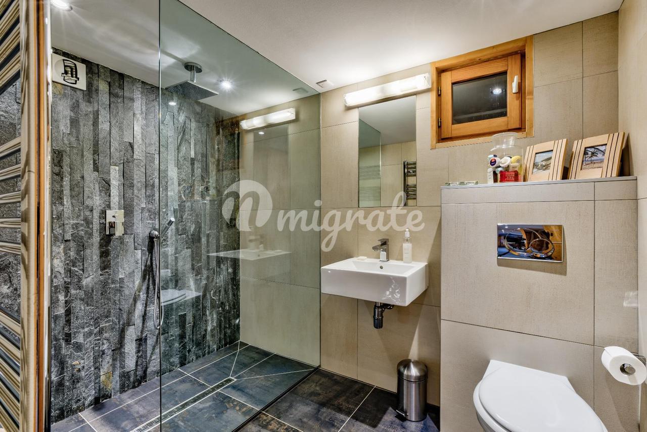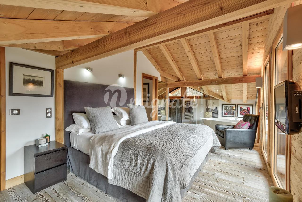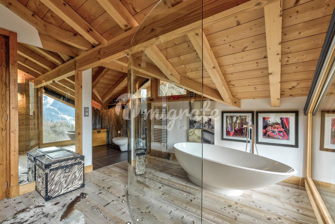 Расположенное на большом участке площадью 1749 м², шале было полностью отремонтировано и расширено в 2009 году, чтобы создать солидное шале с гостиной открытой планировки и большими террасами по обеим сторонам.