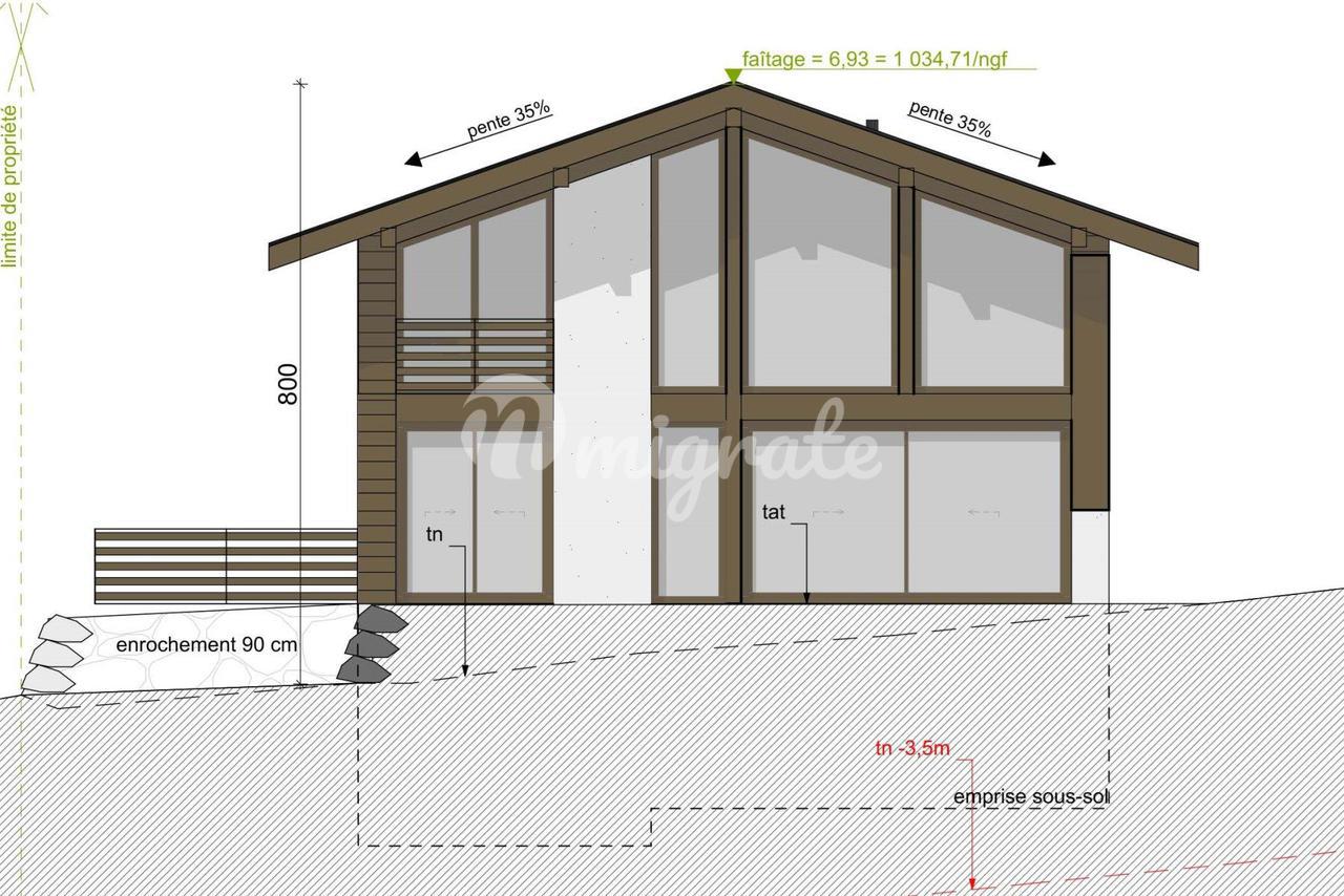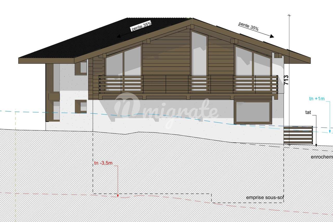 Расположенный на тихом участке с великолепным видом на Монблан, дом будет состоять из 3 этажей, включая жилое пространство двойной высоты, кинотеатр/игровую комнату и сауну на нижнем этаже.